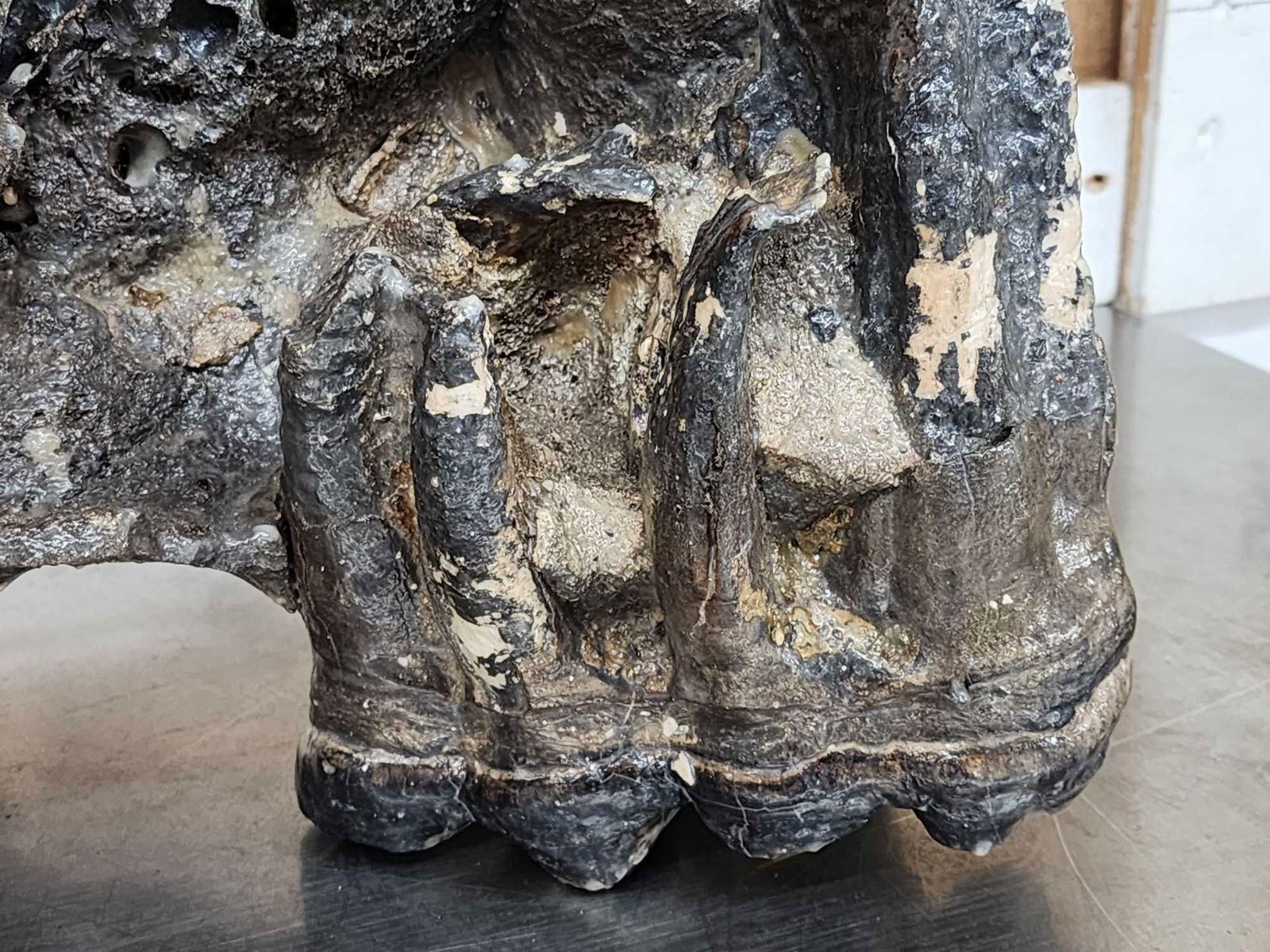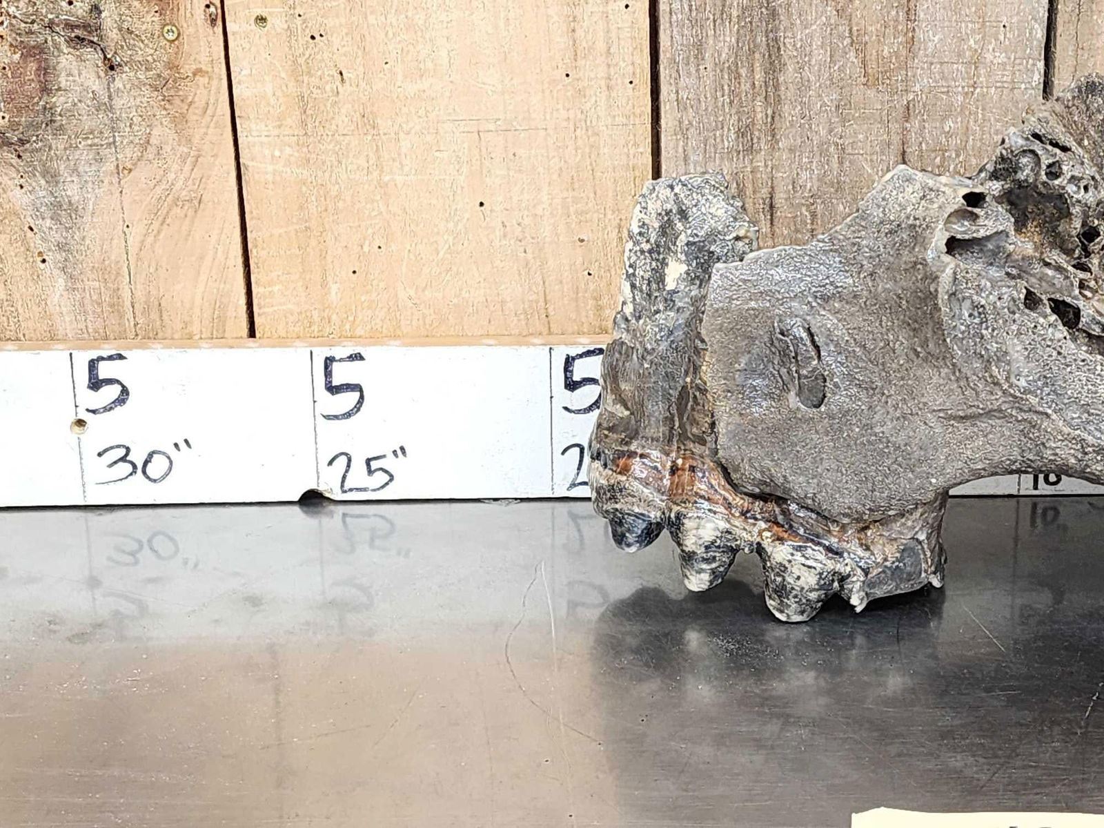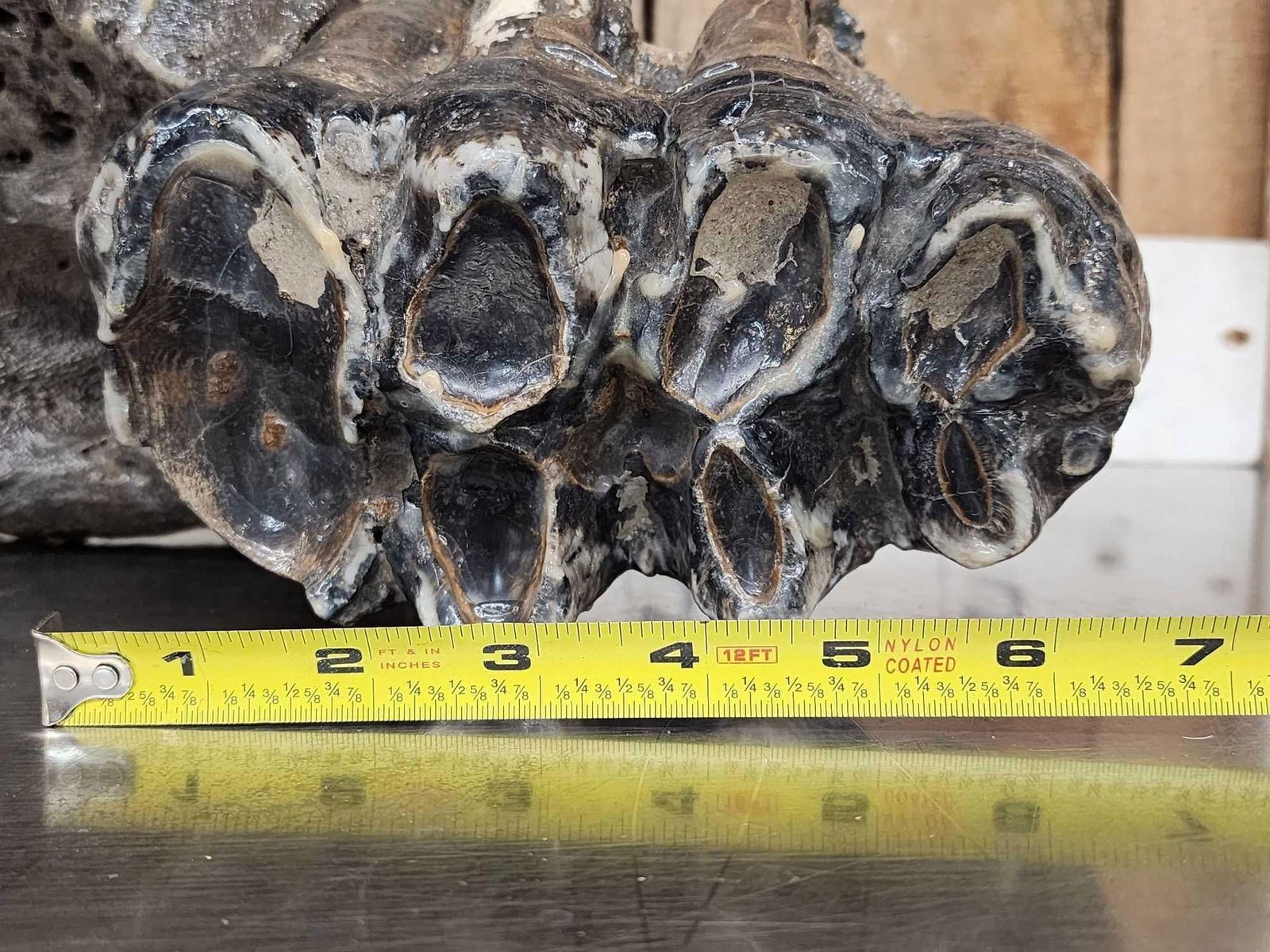 31.49 This specimen is from a big bull note the tusk socket size in the pictures .Large molar great root system this piece has been stableize is an attractive display in several positions 11.8 lbs