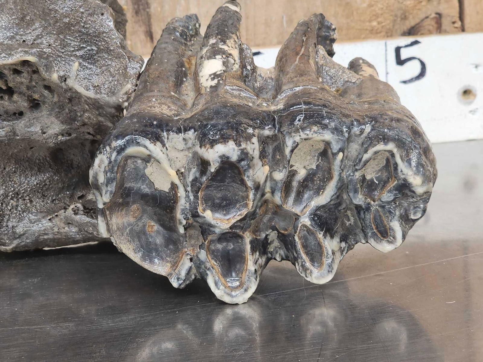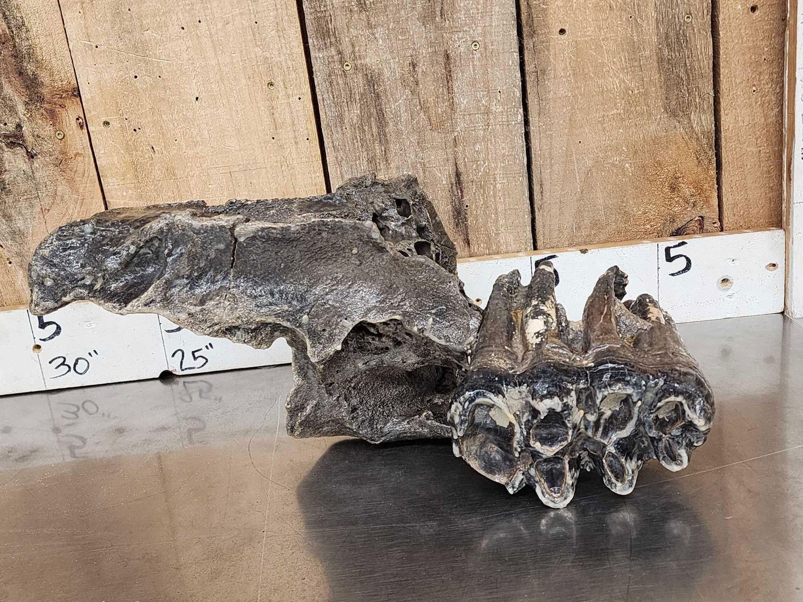 Lot 35N Large Bull Mastodon Skull Section With Molar Ancient Fossil