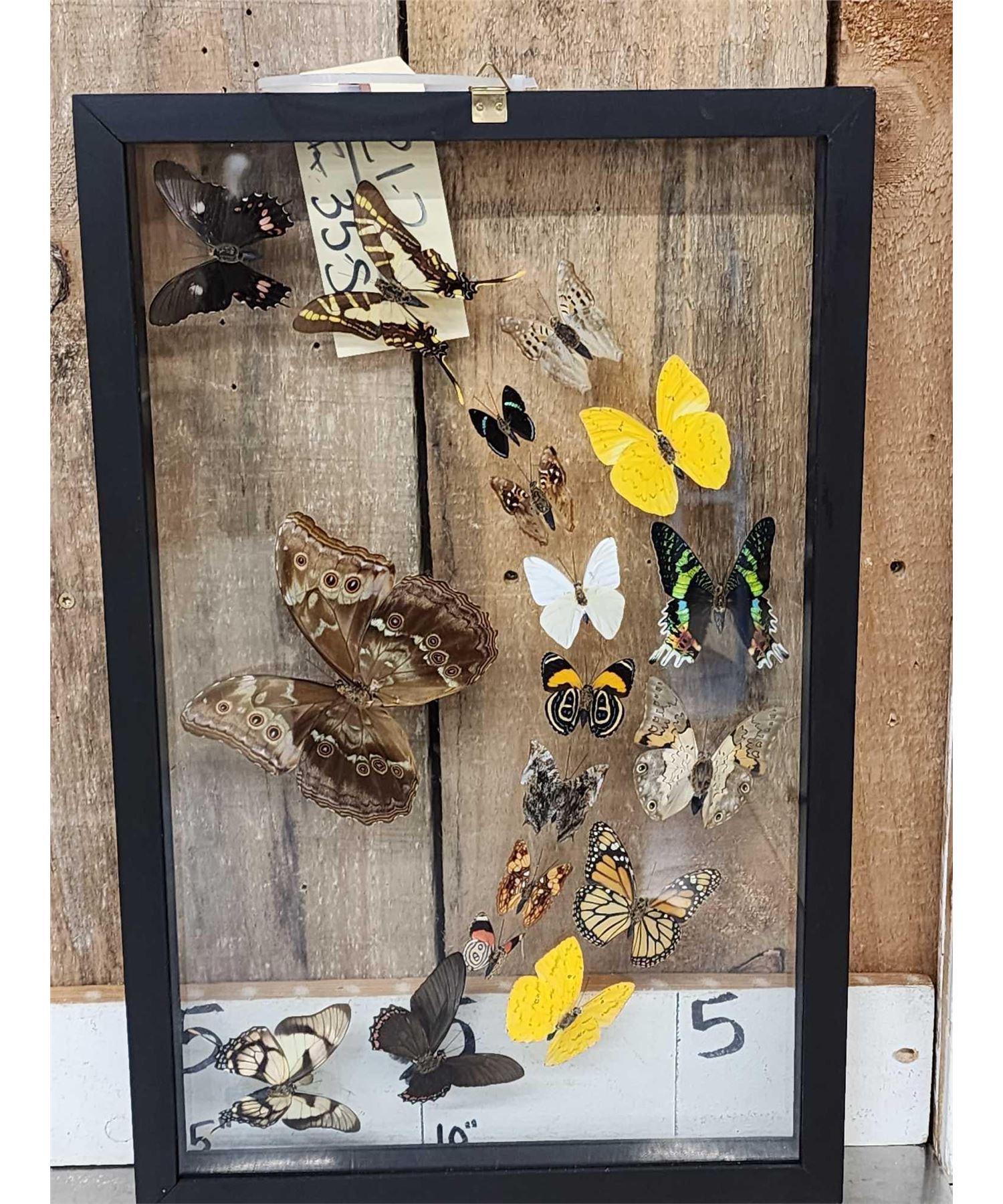 Lot 35S Frame Of 18 Beautiful Butterflies Taxidermy