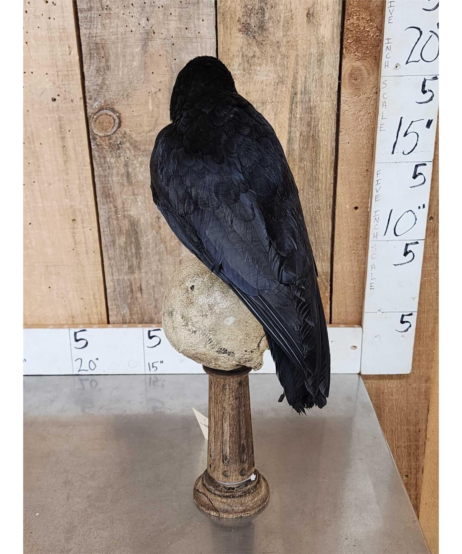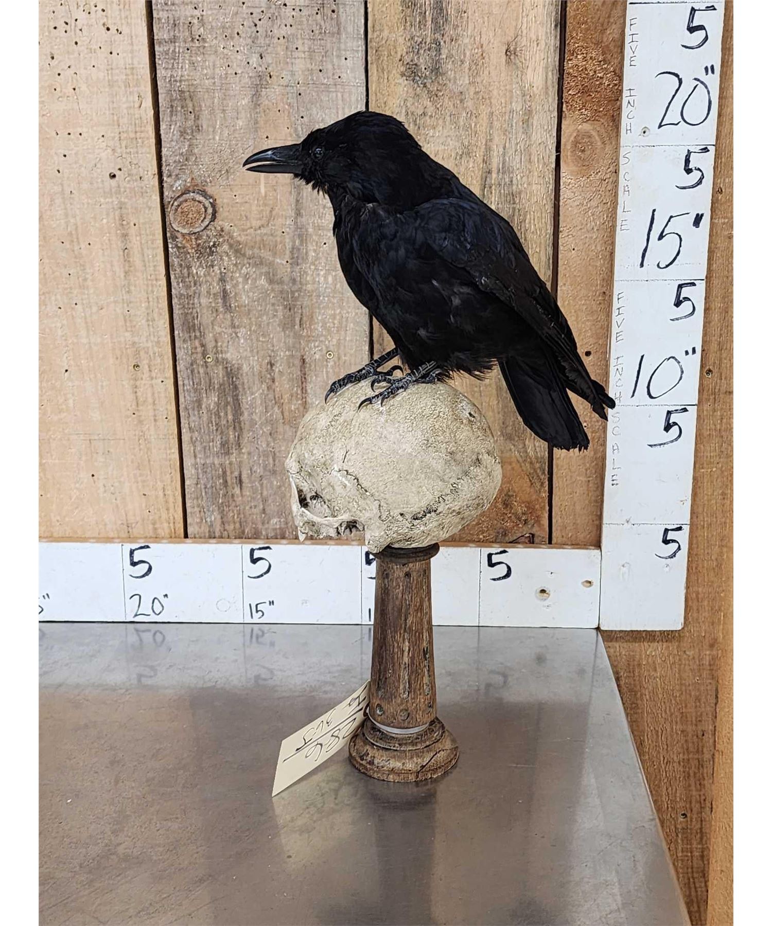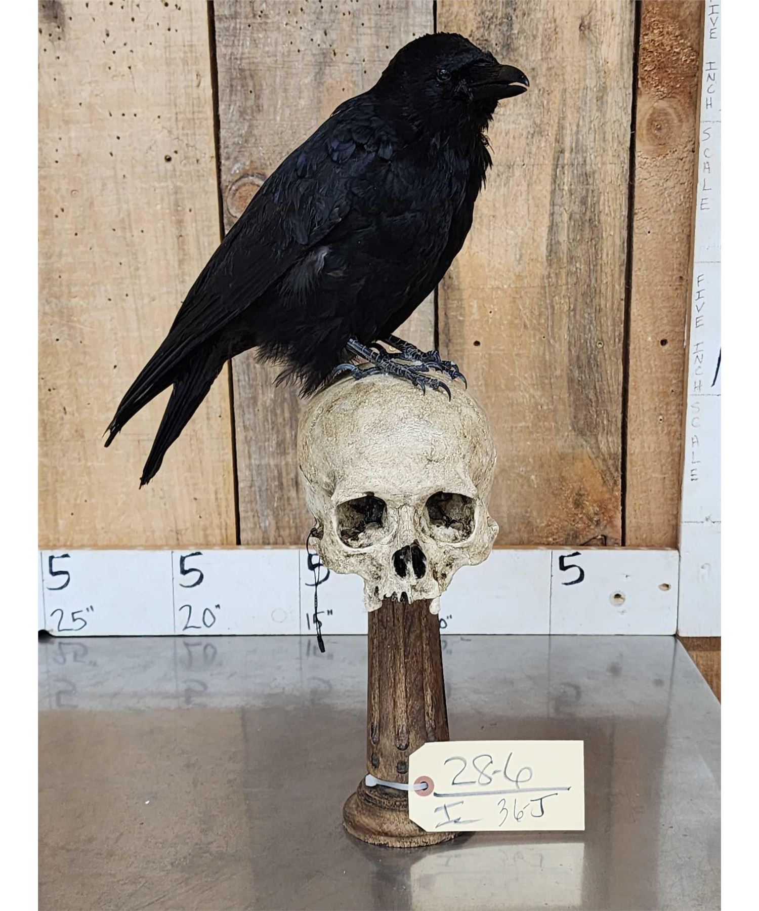 Lot 36J European Carrion Crow On Human Skull Full Body Bird Taxidermy
