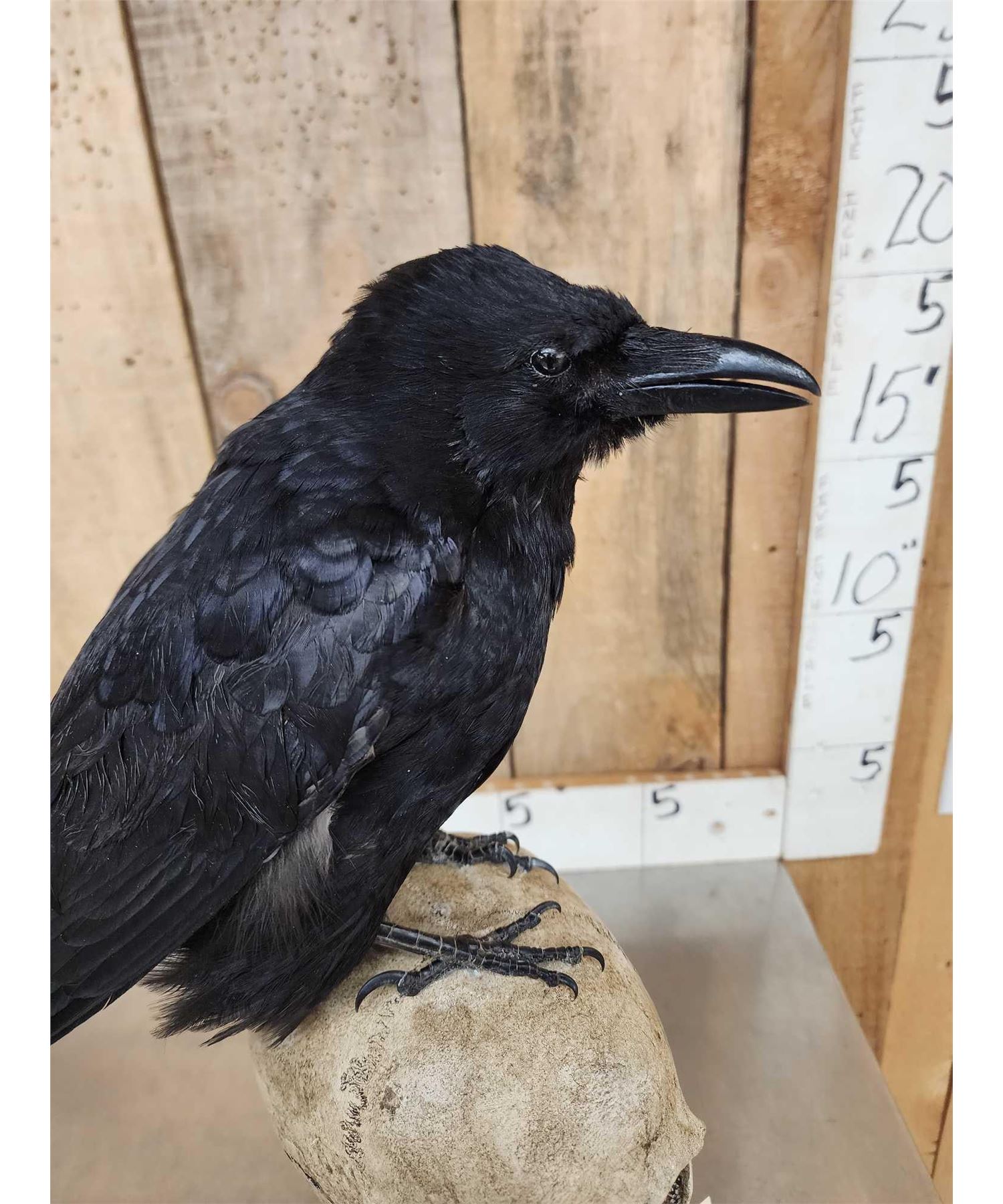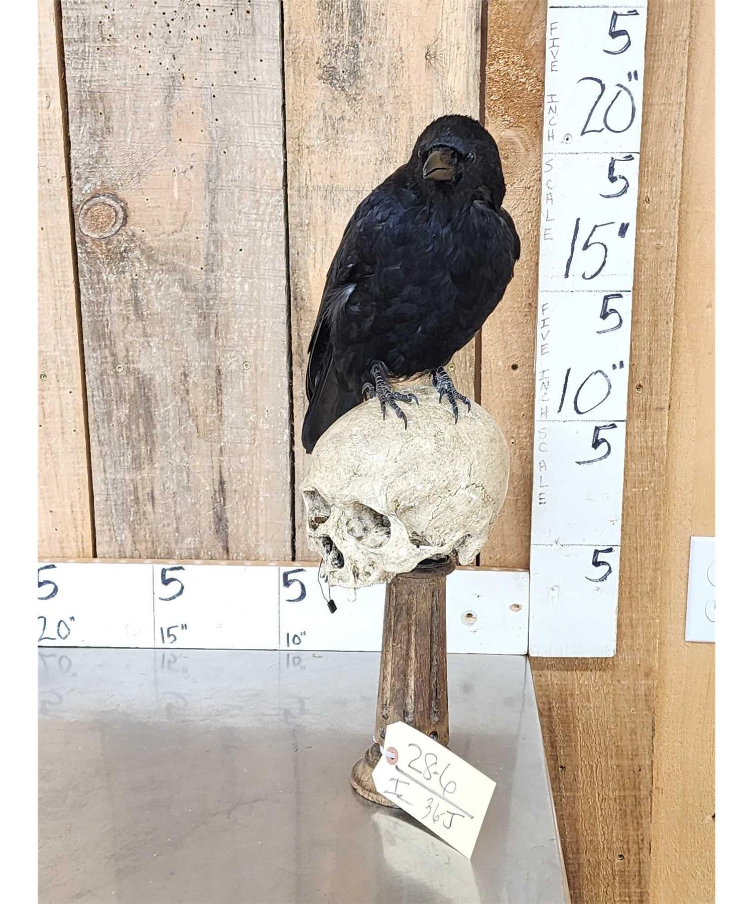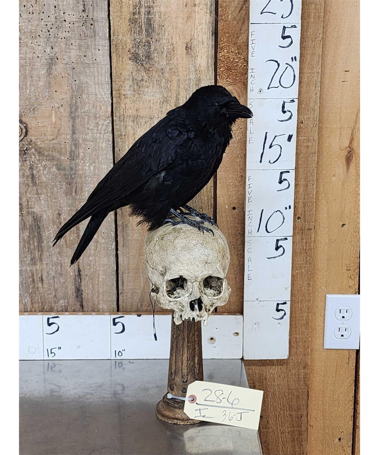 Lot 36J European Carrion Crow On Human Skull Full Body Bird Taxidermy