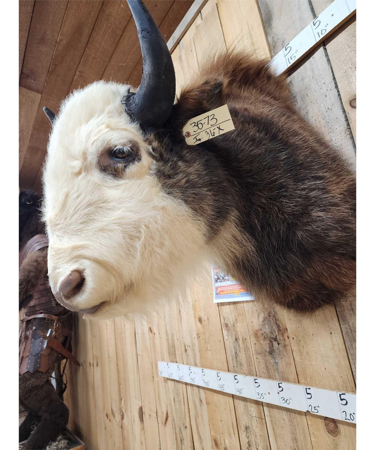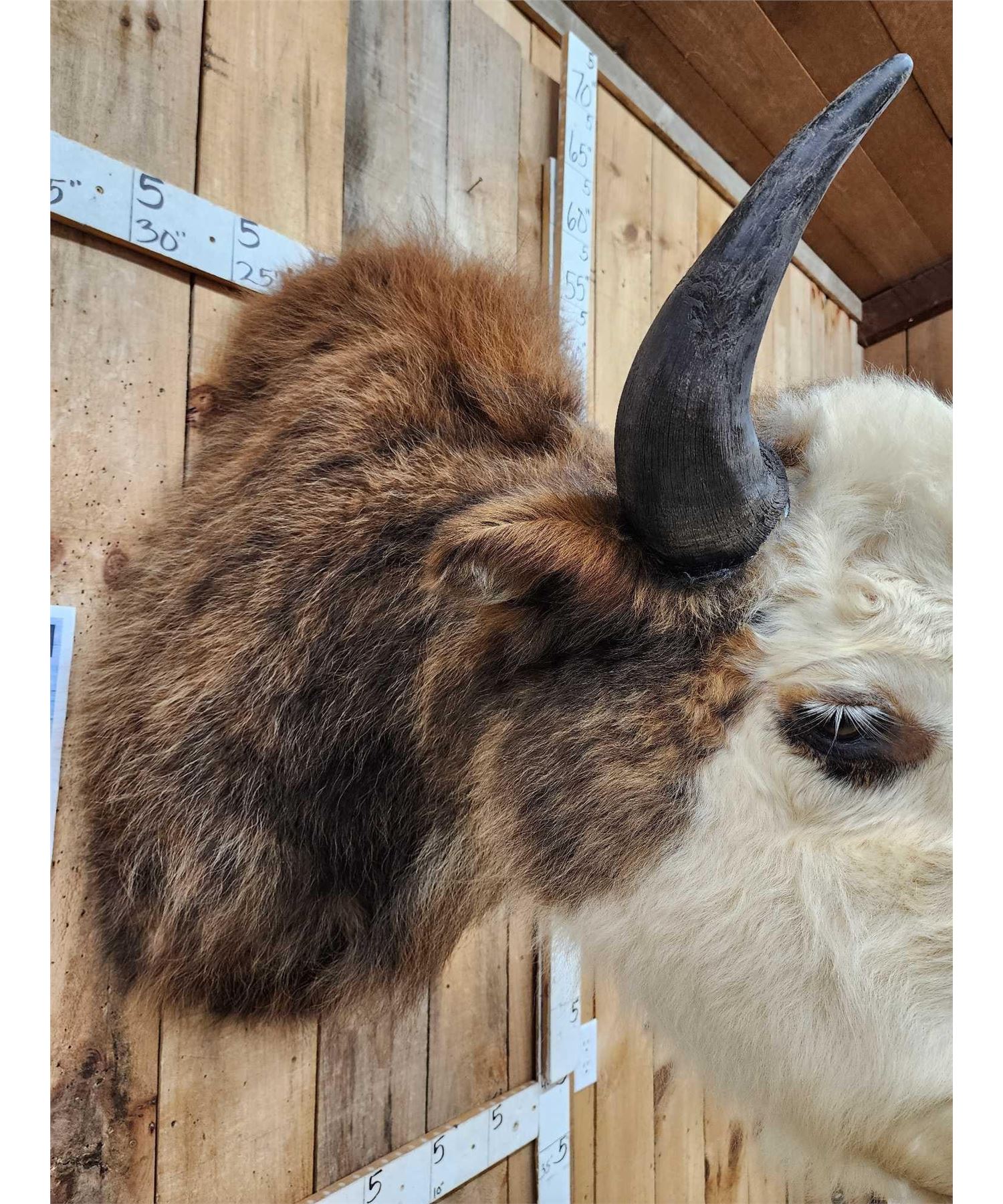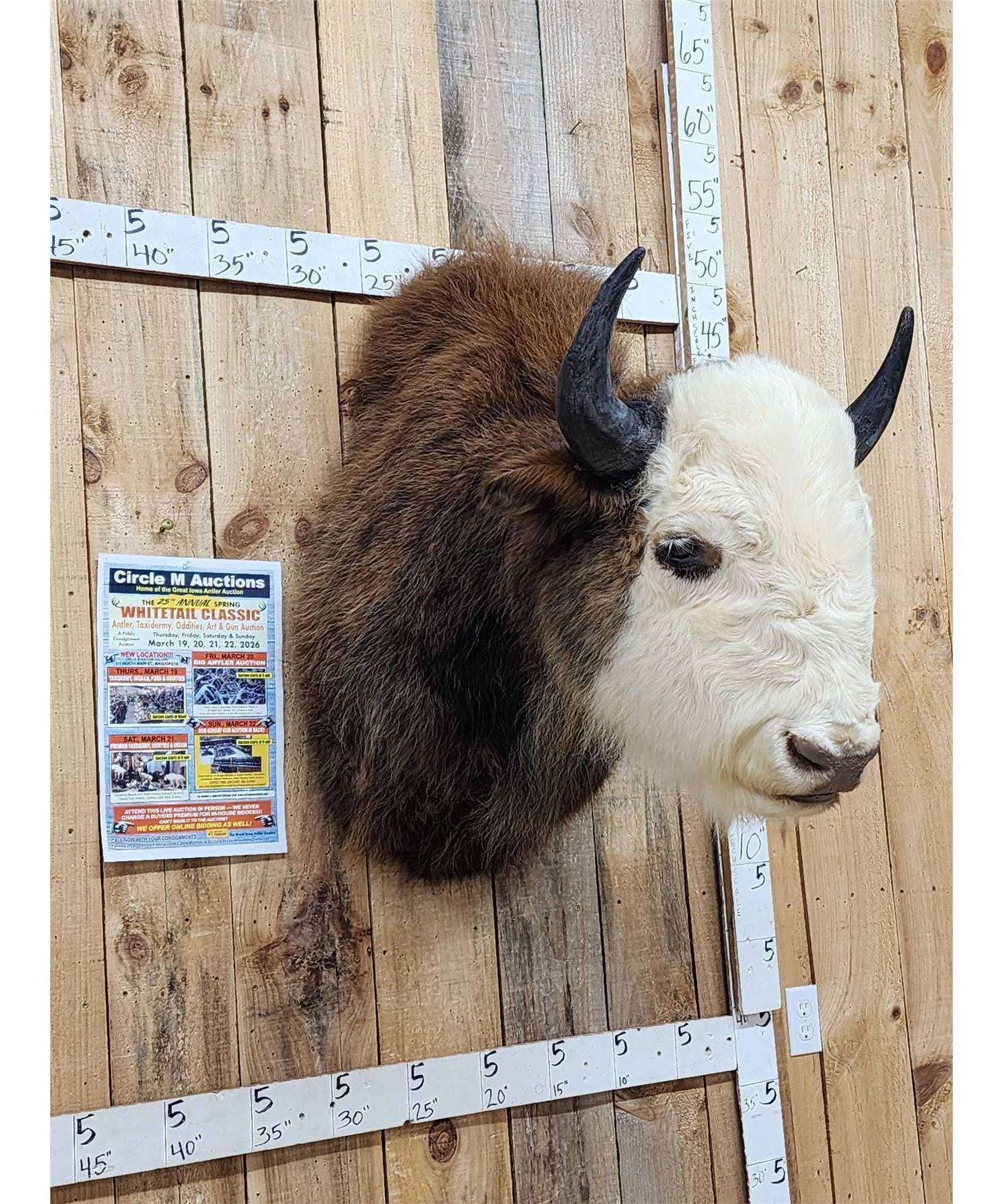 35.73 Brand new mount the very FIRST one we have ever laid eyes on in the past 25 years of selling Taxidermy at auction! The hair colors are original to this animal have NOT been altered in any way . If you are looking for something COMPLETELY different look no further !There is only a small handful of its kind known to be in existence. We have no idea about the details behind the breeding of this specimen but someone definitely came up with the right combination! About 36" out from the wall