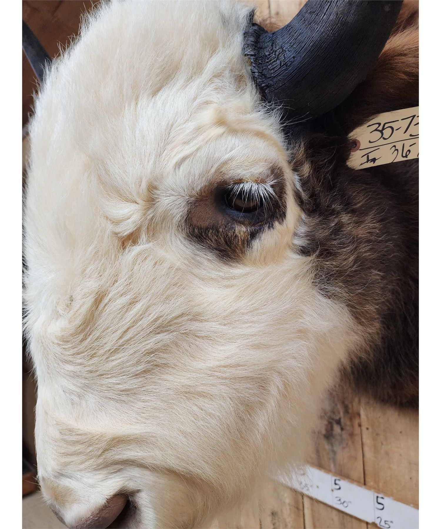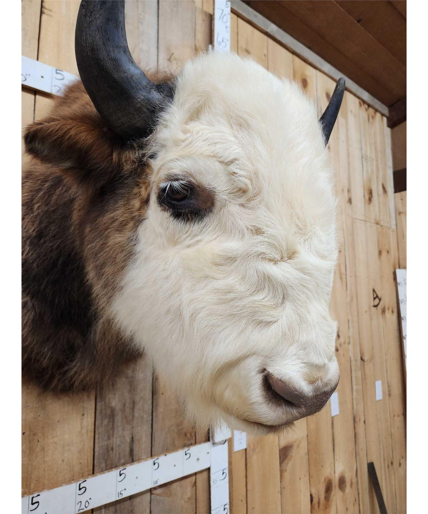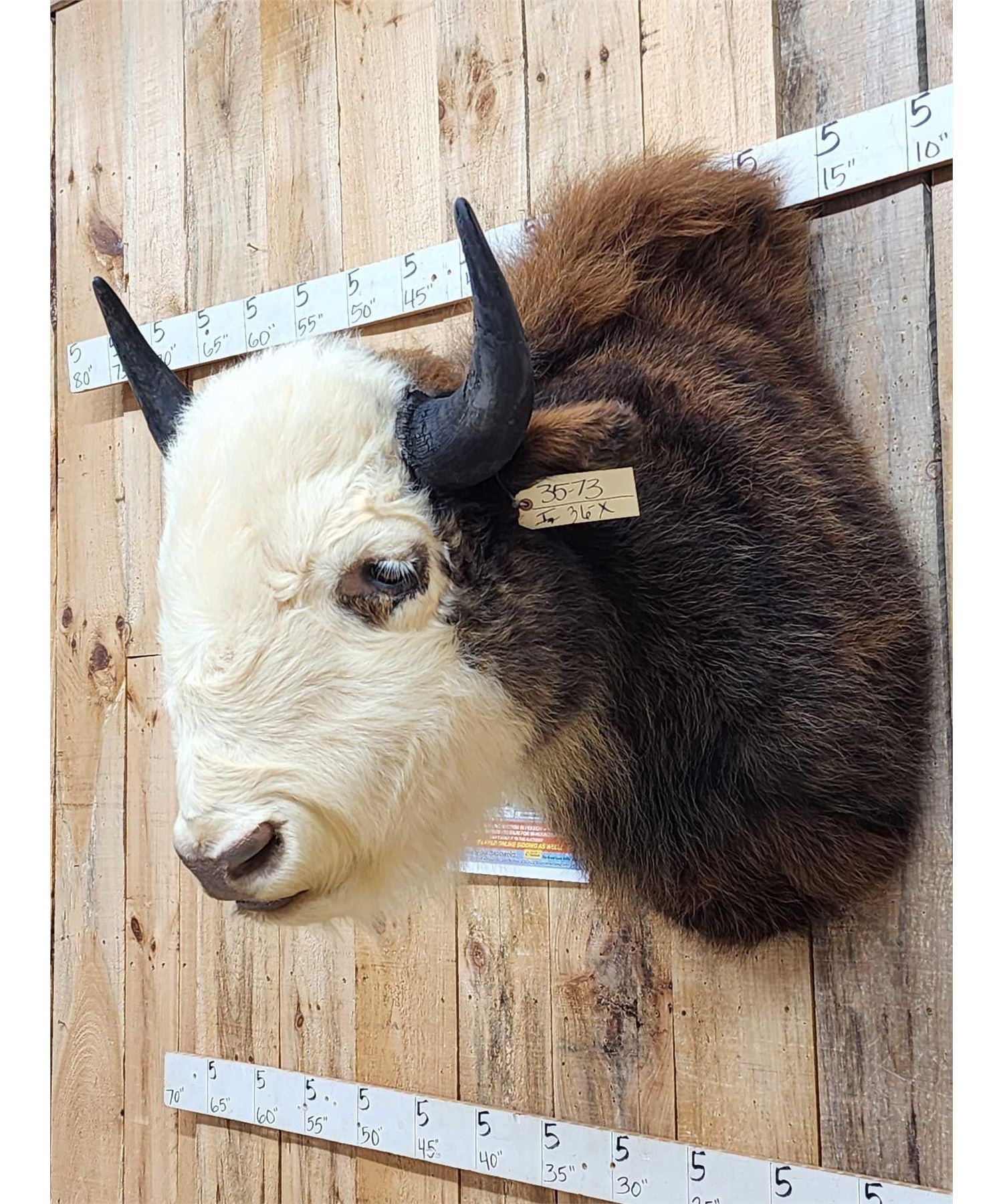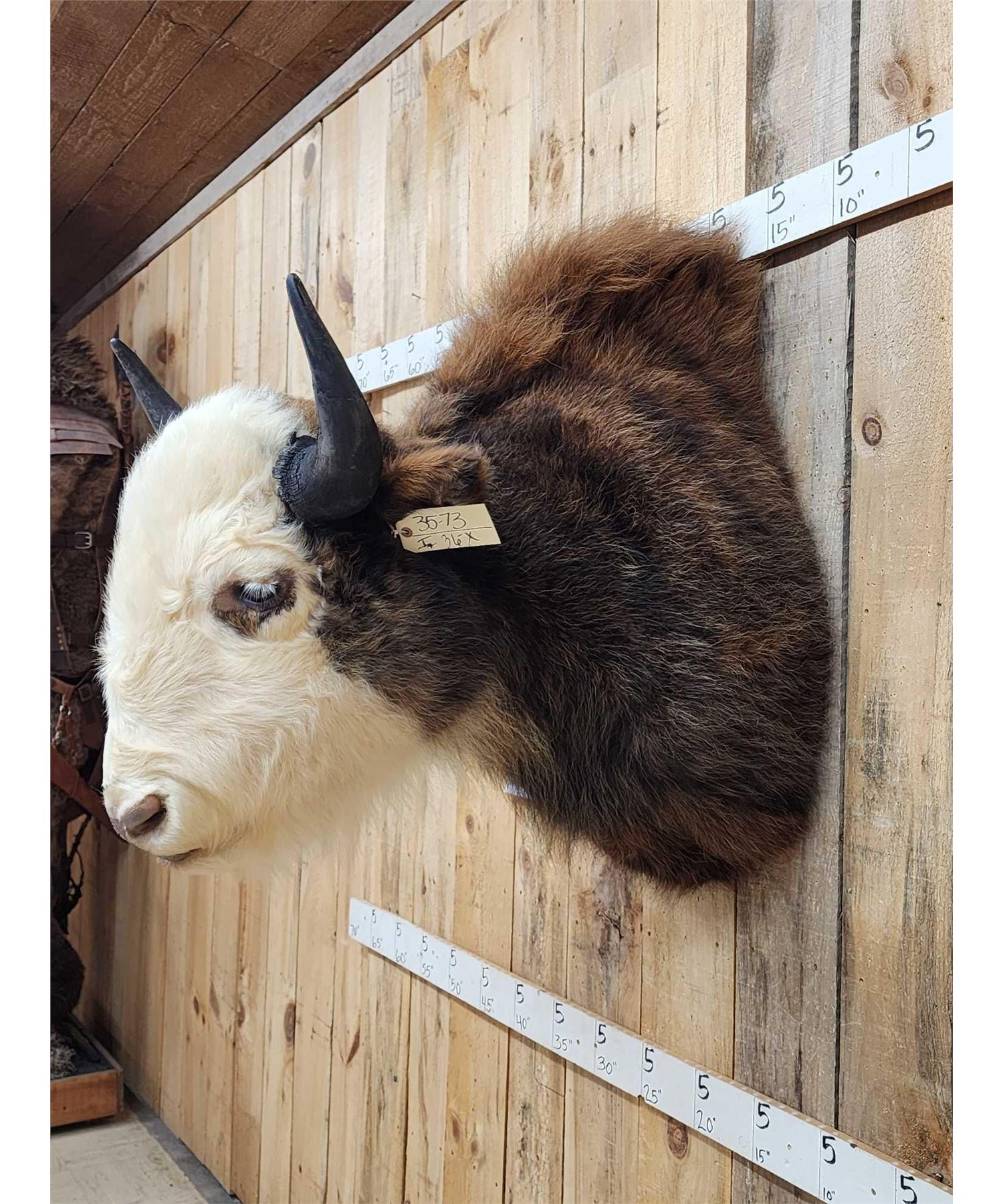35.73 Brand new mount the very FIRST one we have ever laid eyes on in the past 25 years of selling Taxidermy at auction! The hair colors are original to this animal have NOT been altered in any way . If you are looking for something COMPLETELY different look no further !There is only a small handful of its kind known to be in existence. We have no idea about the details behind the breeding of this specimen but someone definitely came up with the right combination! About 36" out from the wall