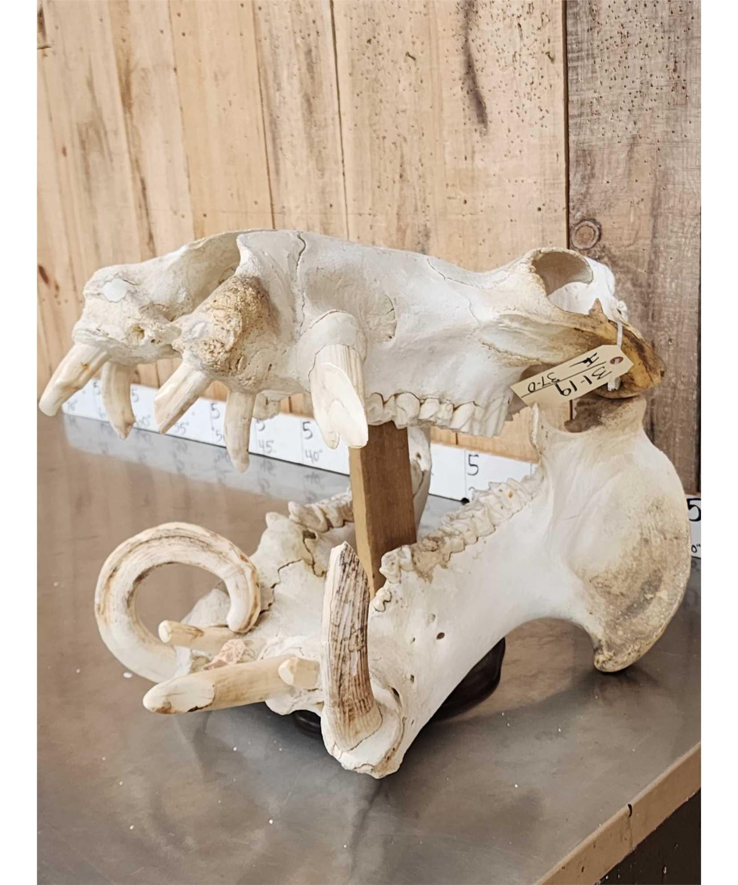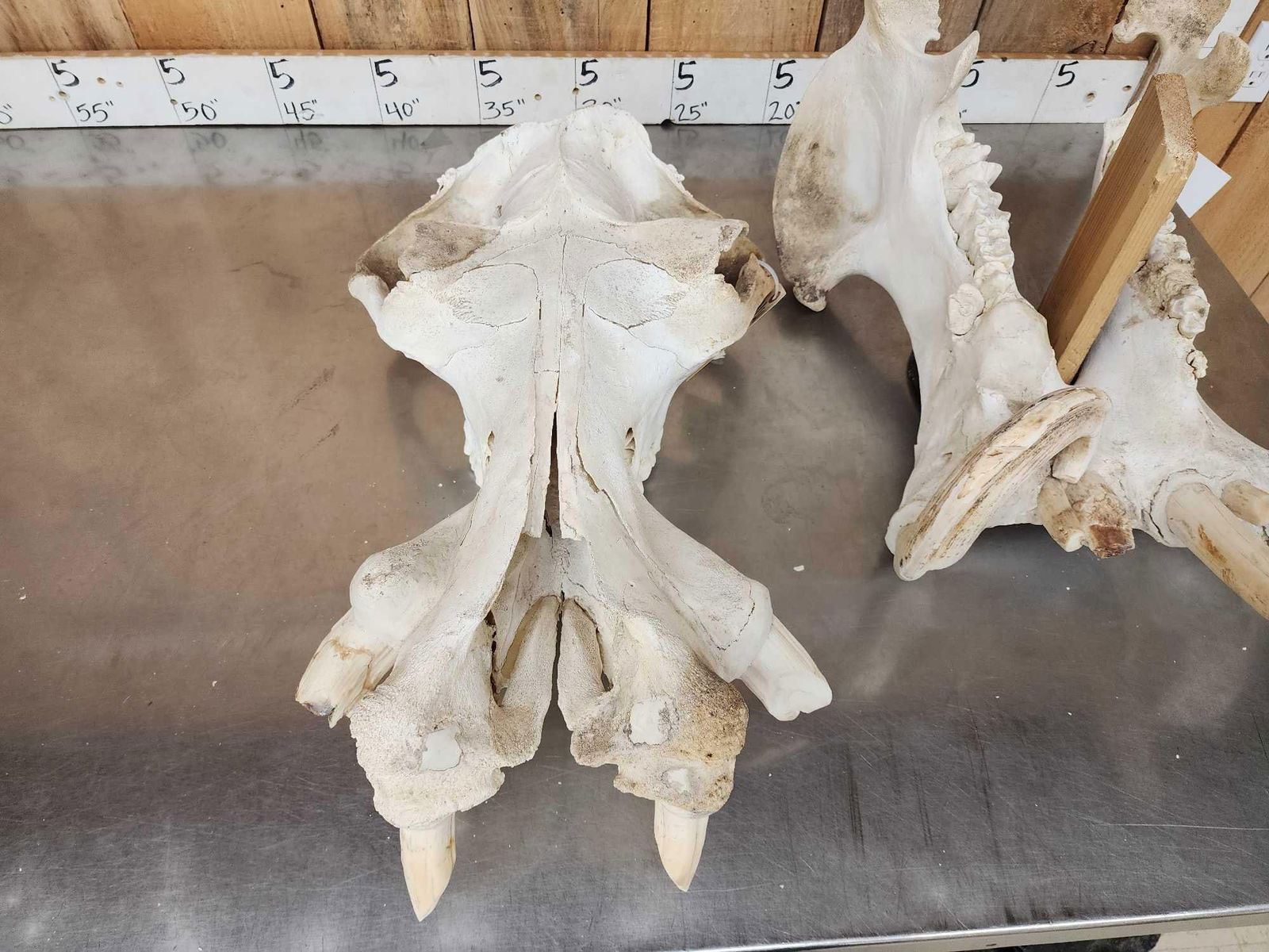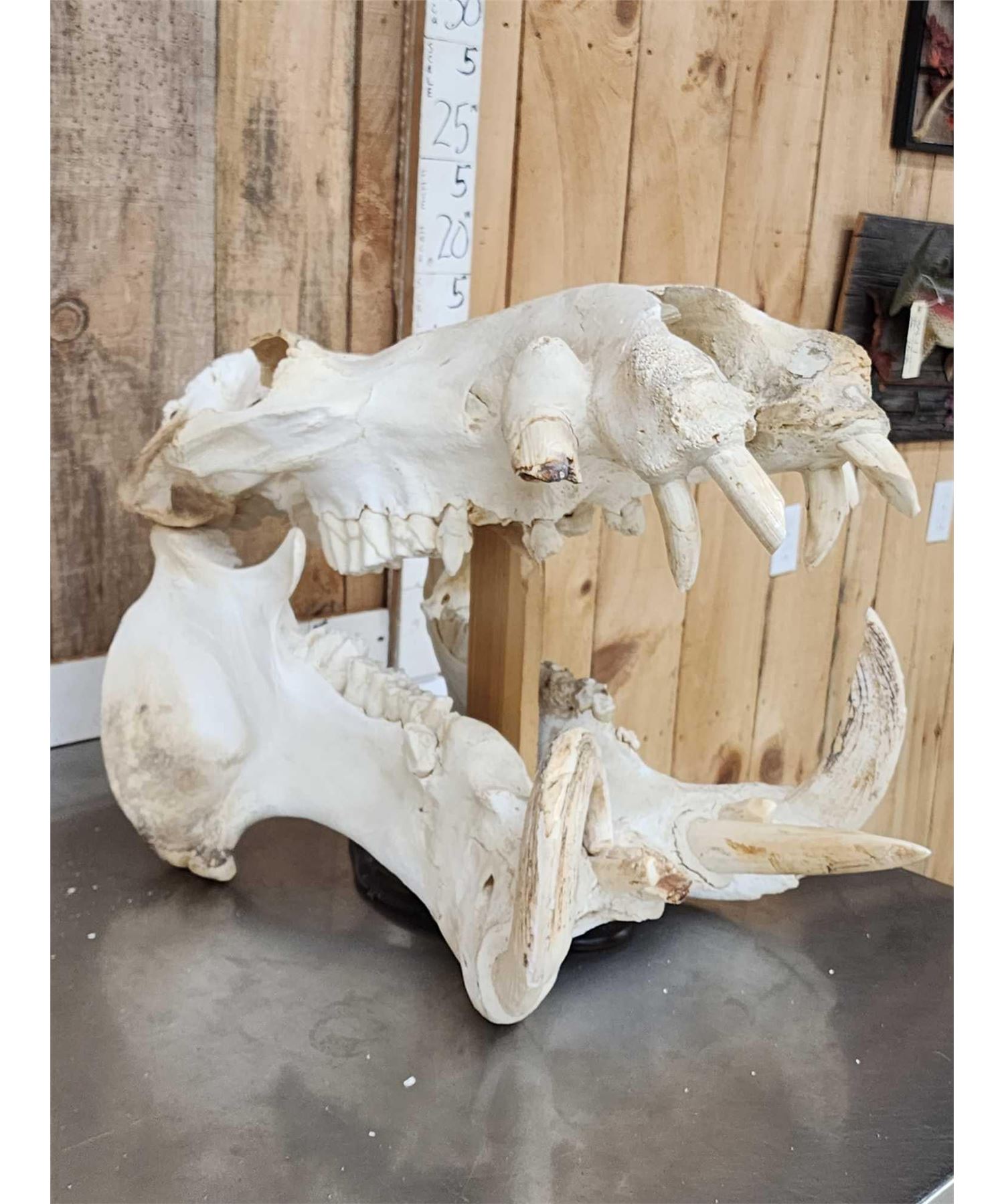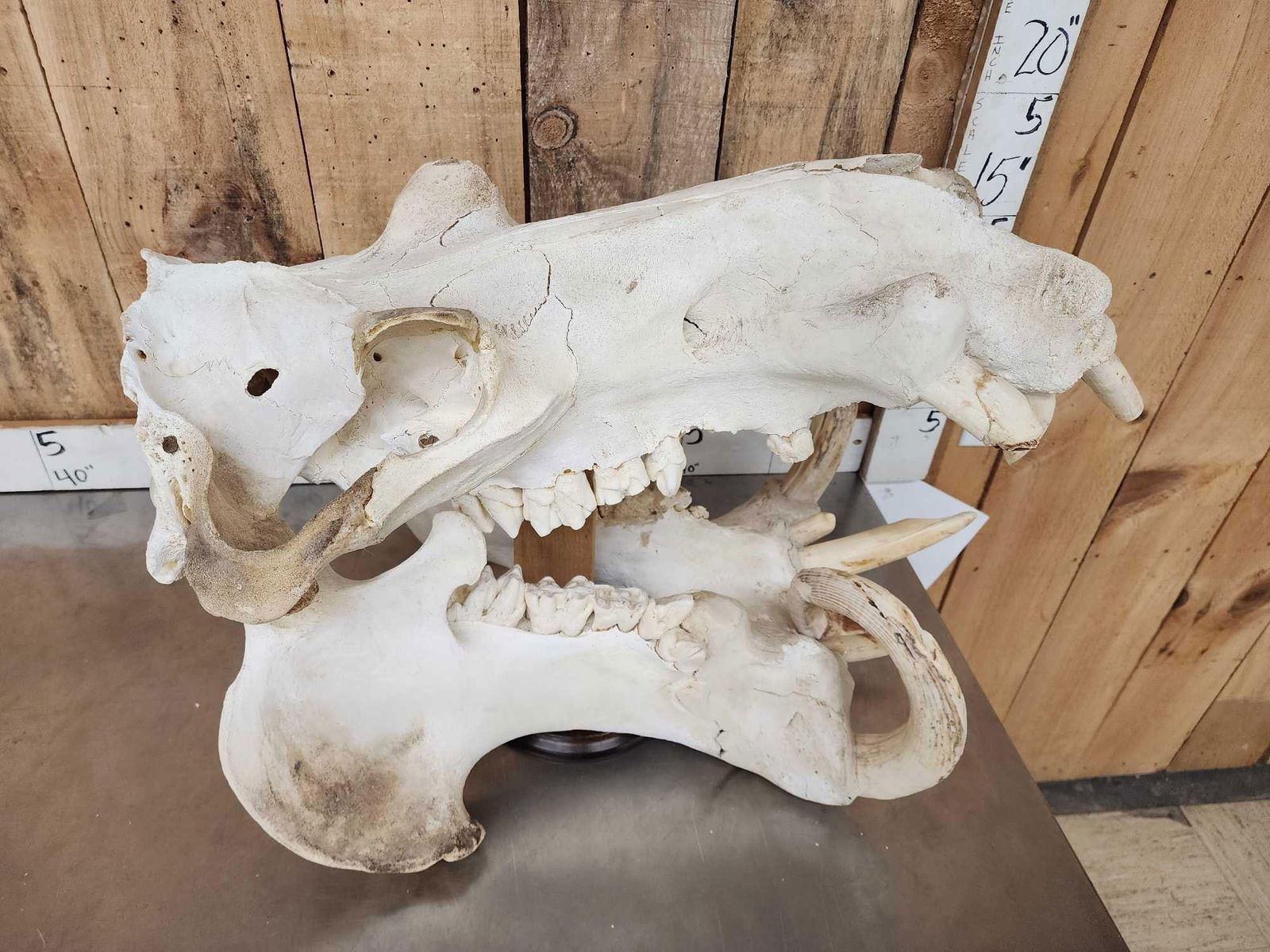 31.19 Huge tusks note its right front tusk curved inward abscessed molar. Lower jaw repaired awesome look great Oddities Curiosity piece