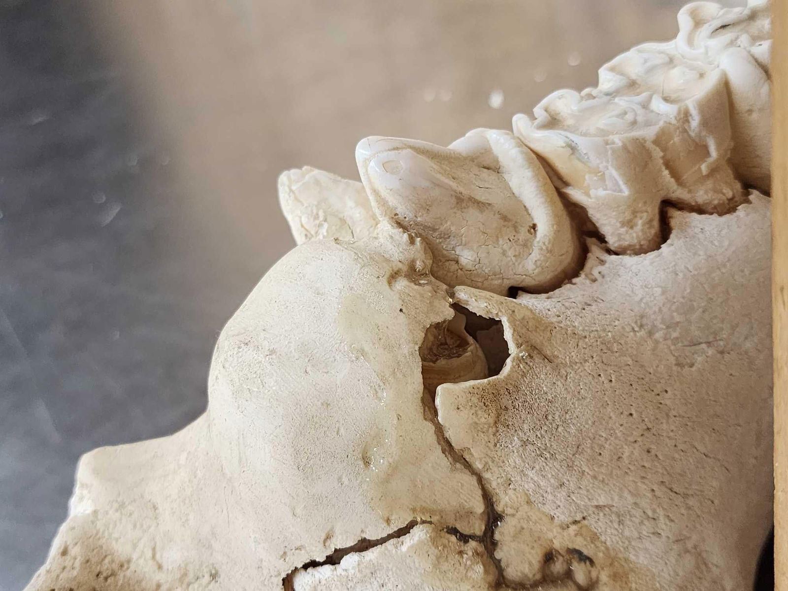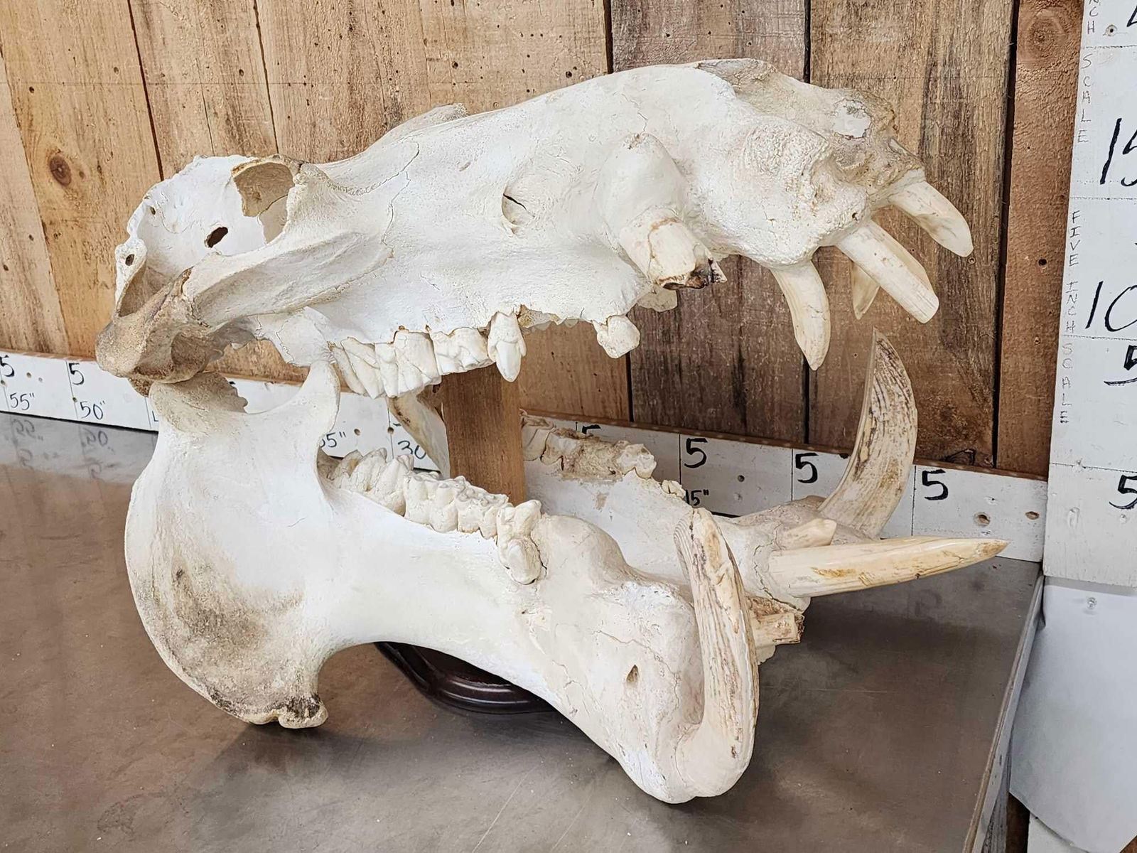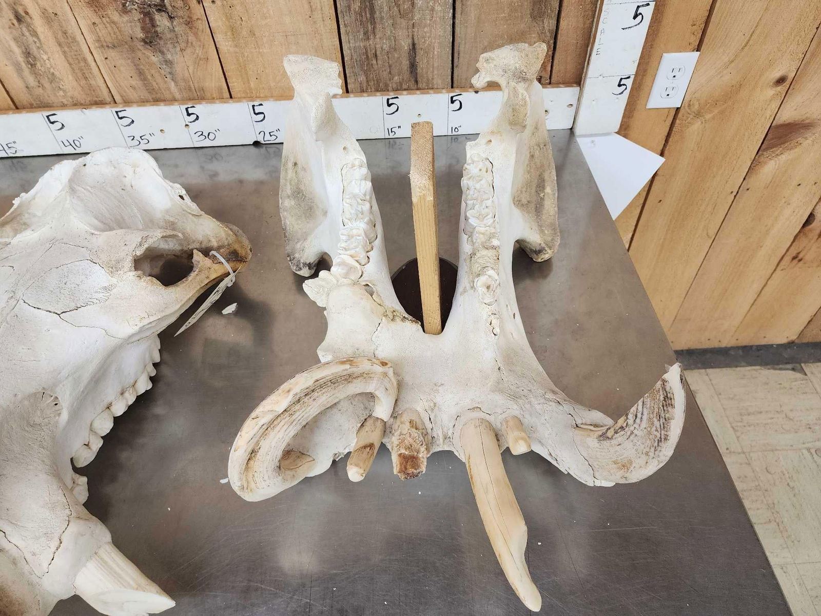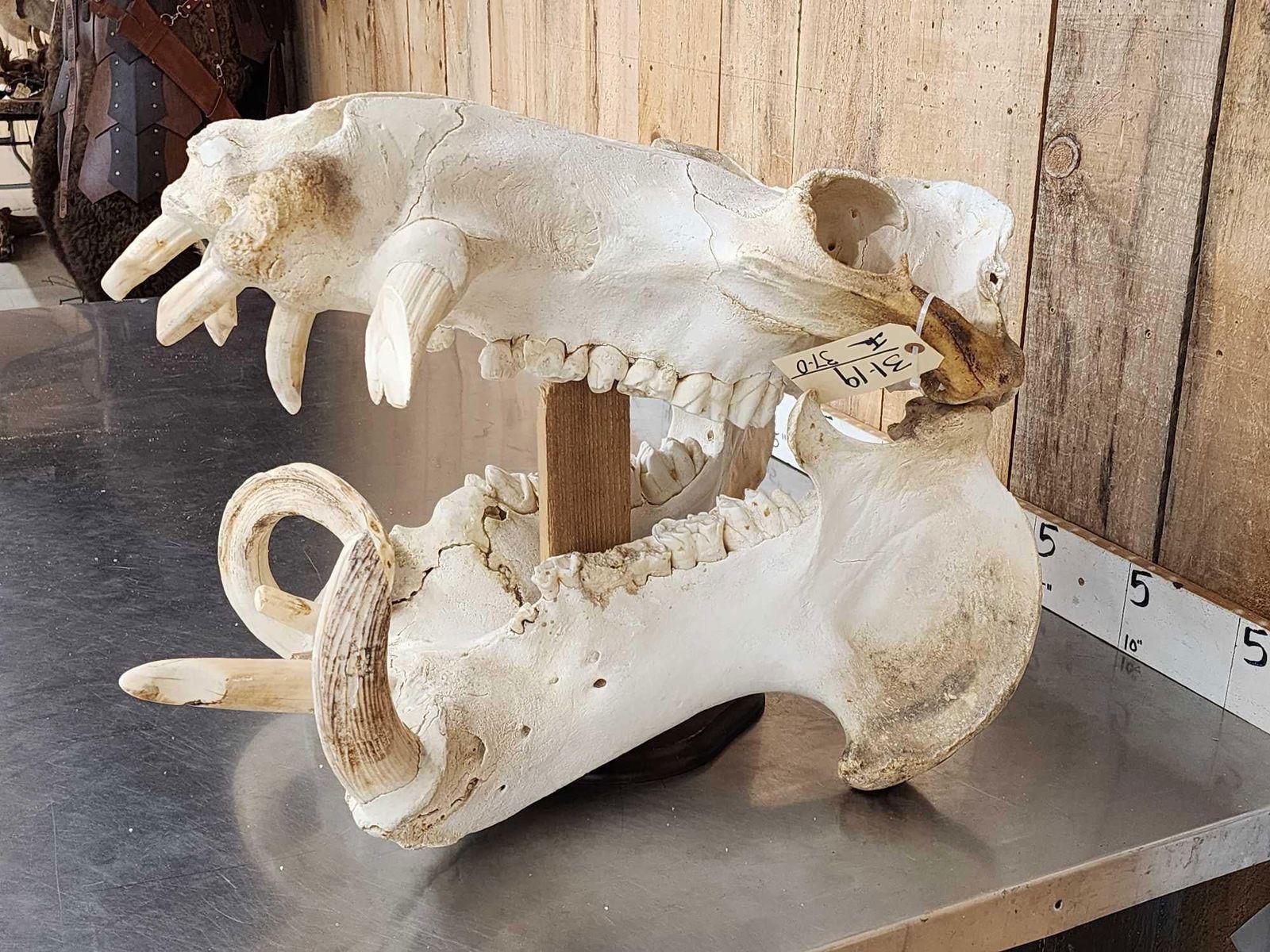 31.19 Huge tusks note its right front tusk curved inward abscessed molar. Lower jaw repaired awesome look great Oddities Curiosity piece