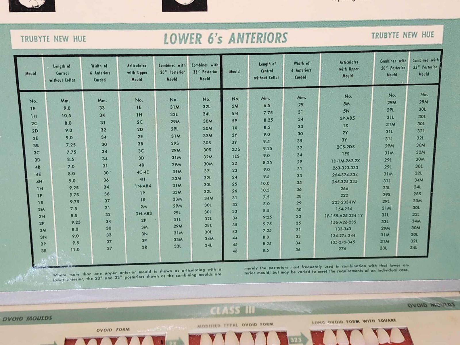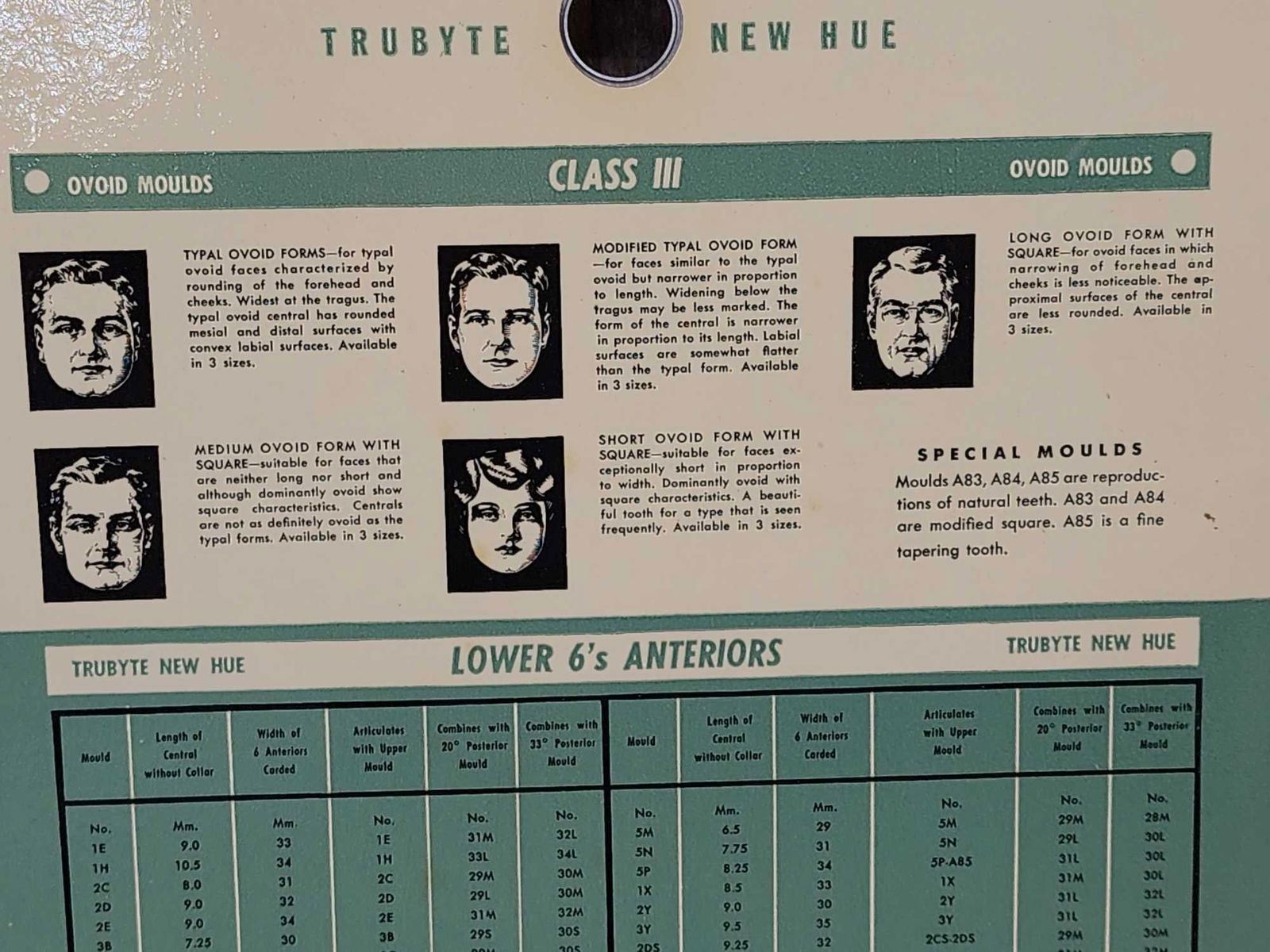 Lot 45C Vintage Vintage Trubyte New Hue Dental Prosthetic Teeth Display
