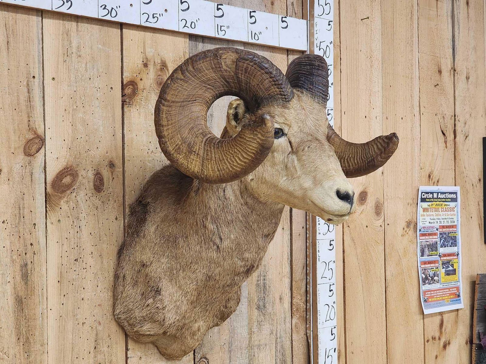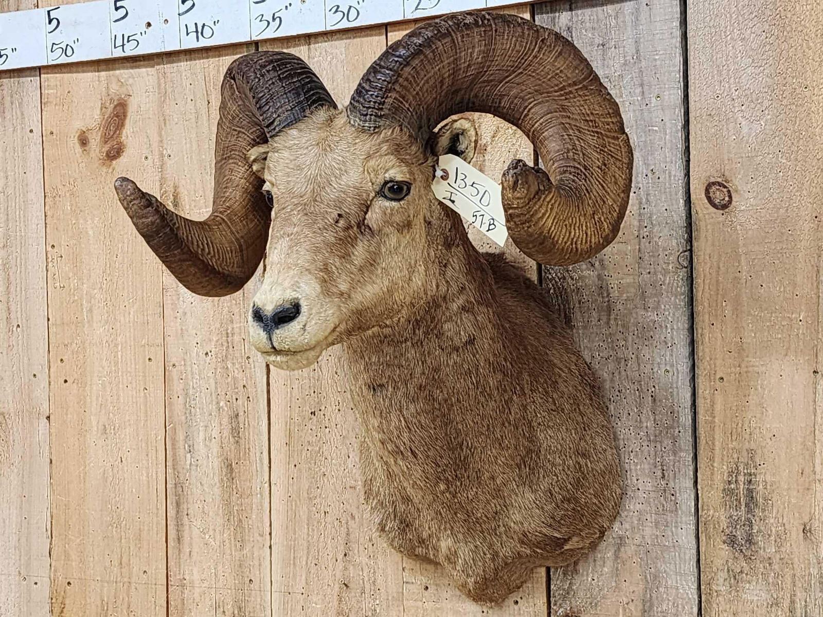 Lot 57B Vintage 177 7/8" B&C Rocky Mountain Bighorn Sheep Shoulder Mount Taxidermy