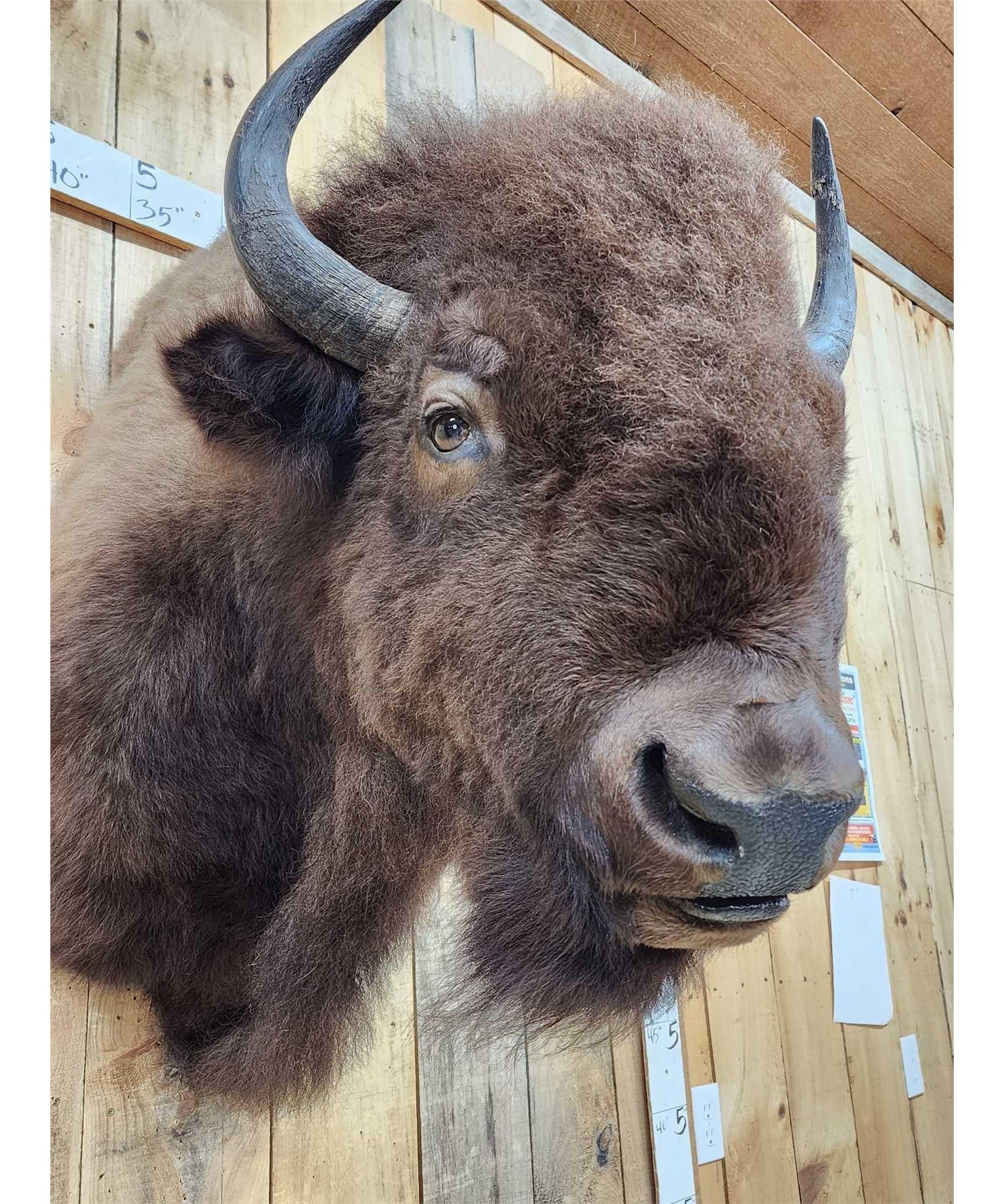 15.40 Thick shaggy hair great colors Nicely done mount good Taxidermy Artwork about 38" out from the wall slight right turn pose