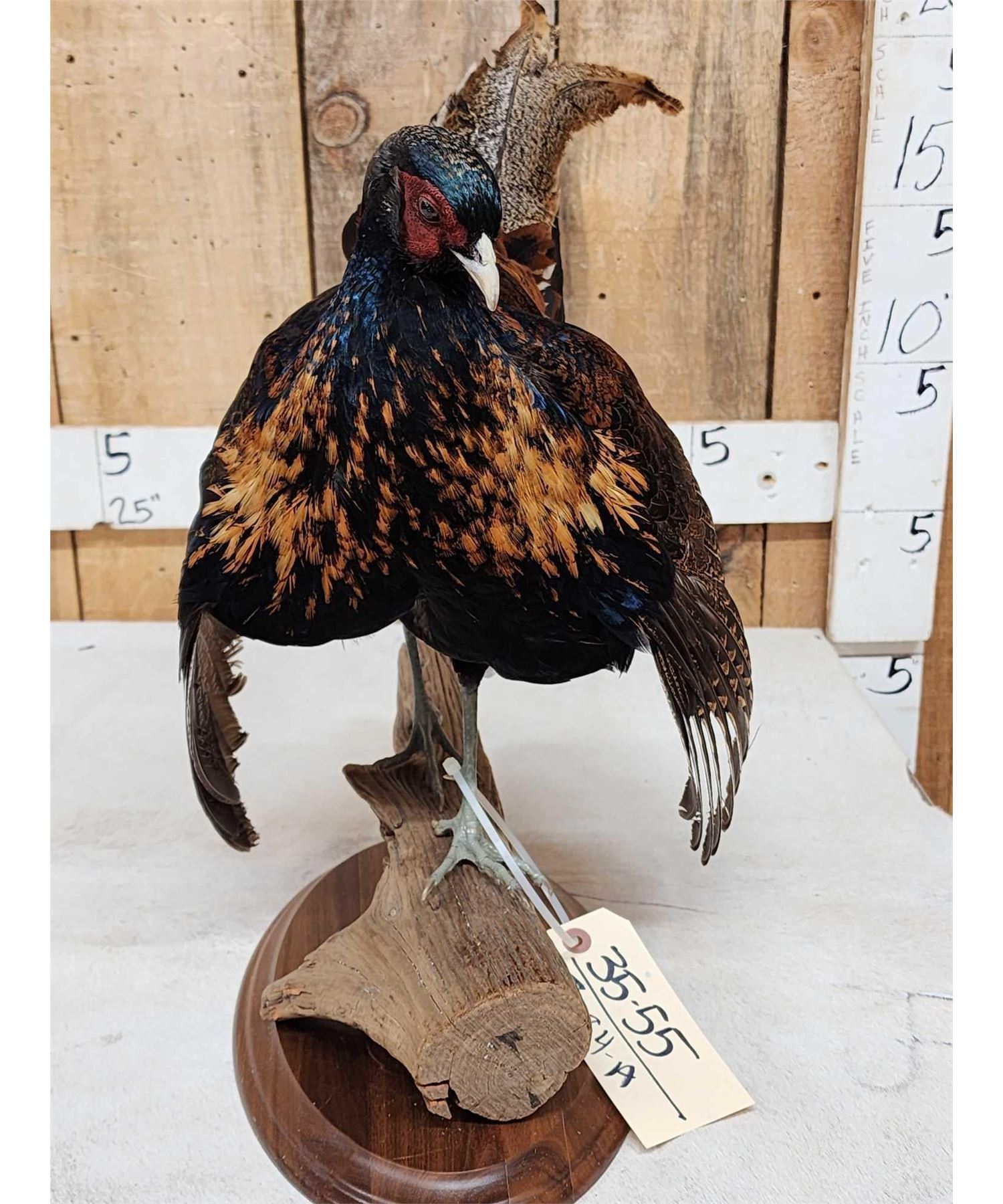 35.55 This gorgeous bird is a result of selective breeding crossed between Silver , Swinhoe , Golden , Lady Amherst Pheasants resulting in a rare unique feather pattern as individual as a fingerprint! Spectacular colors Nicely done Taxidermy Artwork on this trully one of a kind bird !