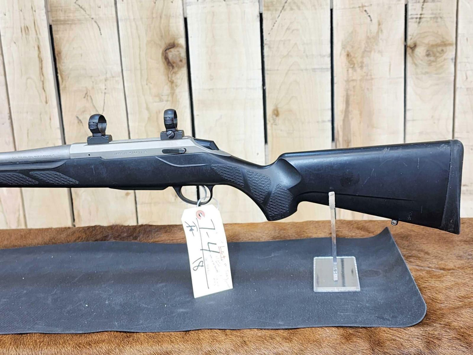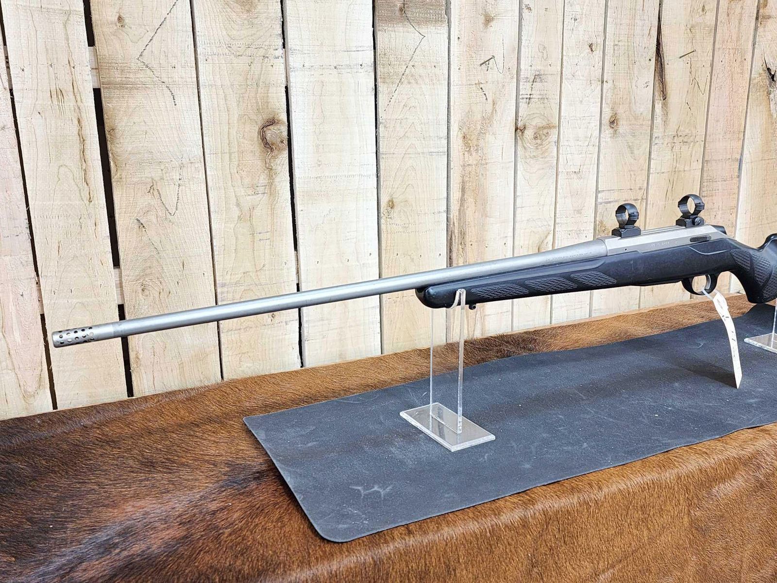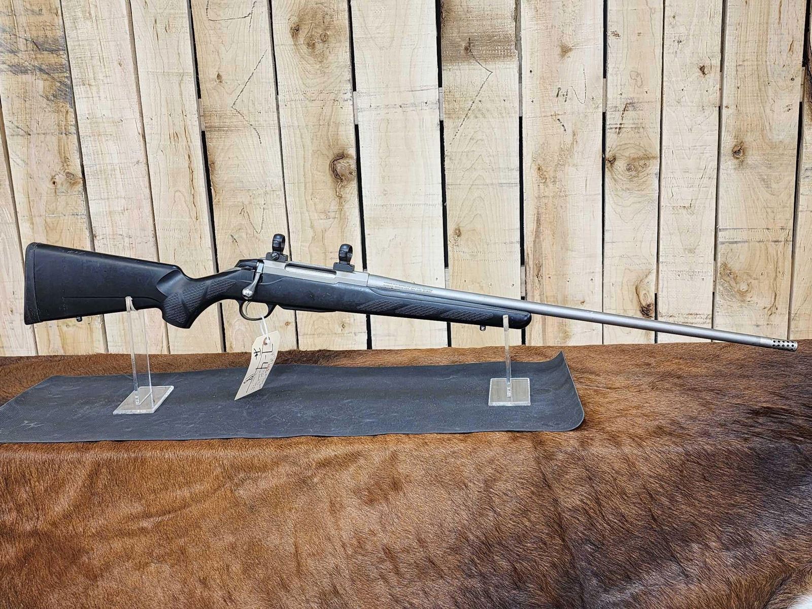 7.4 Stainless 27" barrel Shiny bore good rifling appears to be threaded barrel with scope rings SN 474411