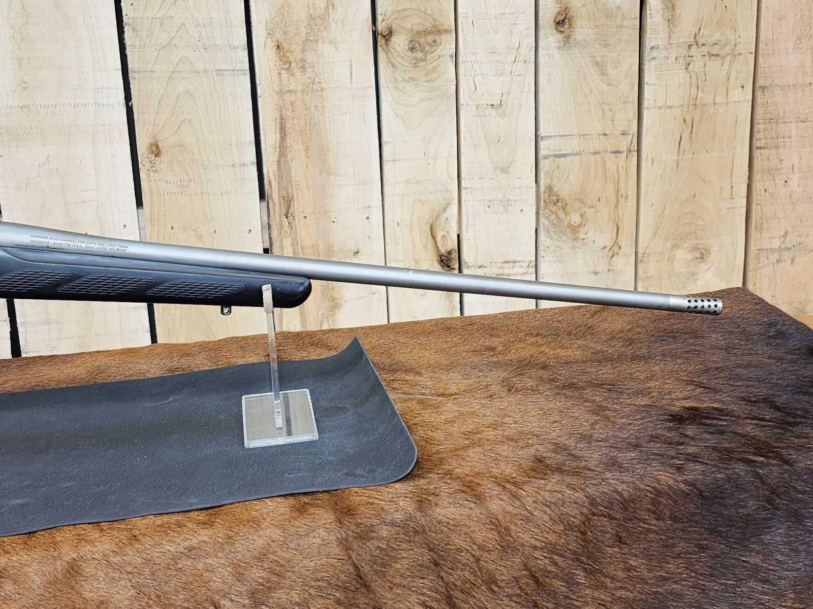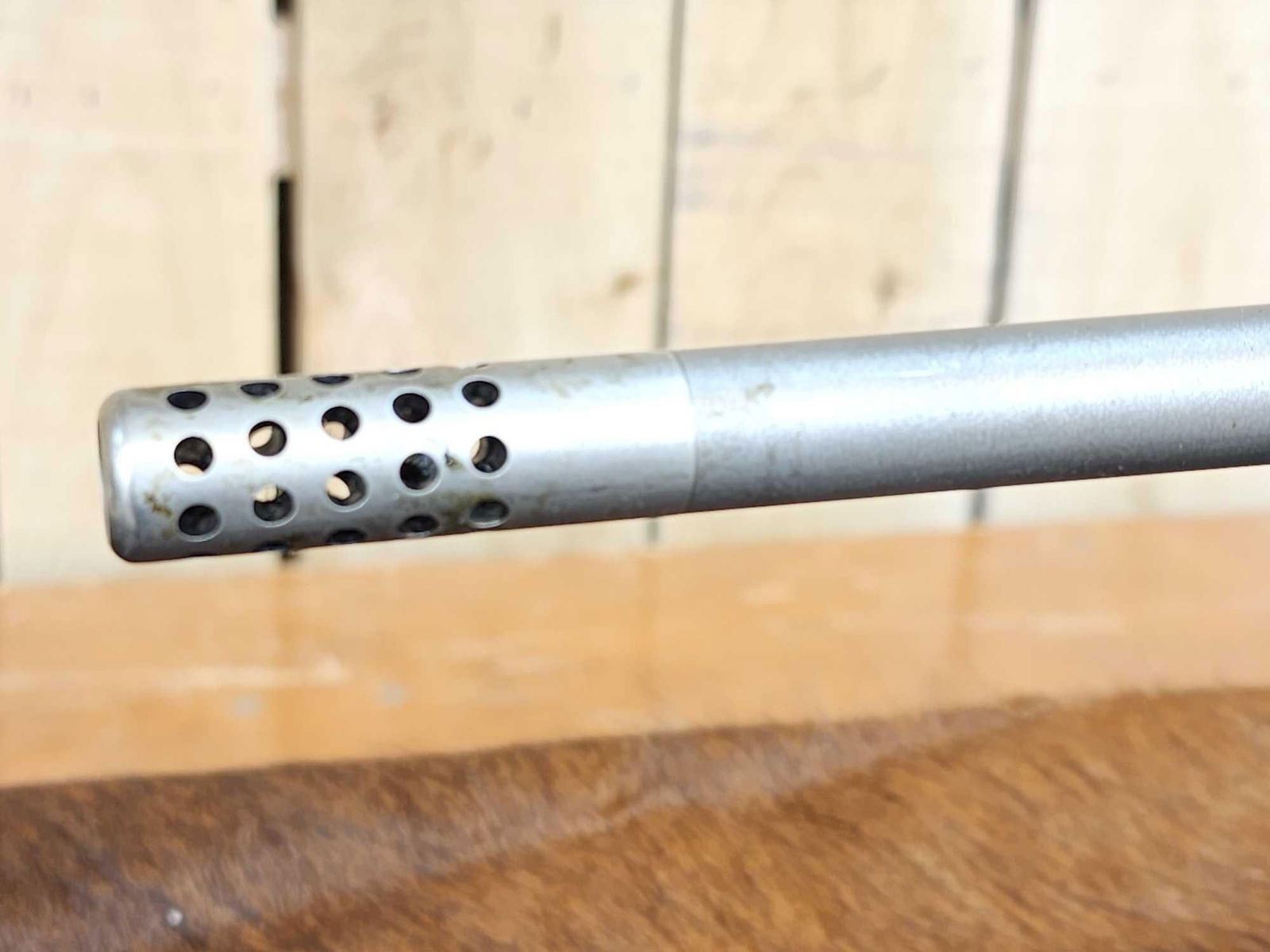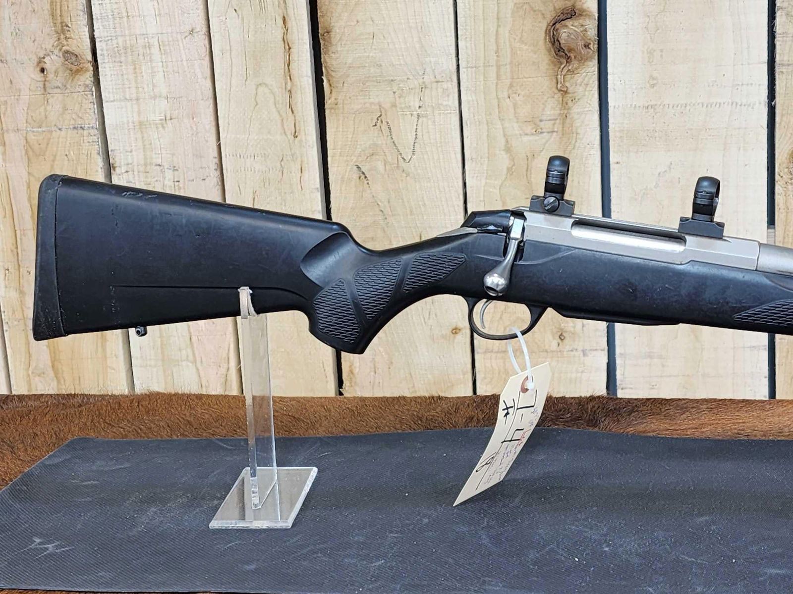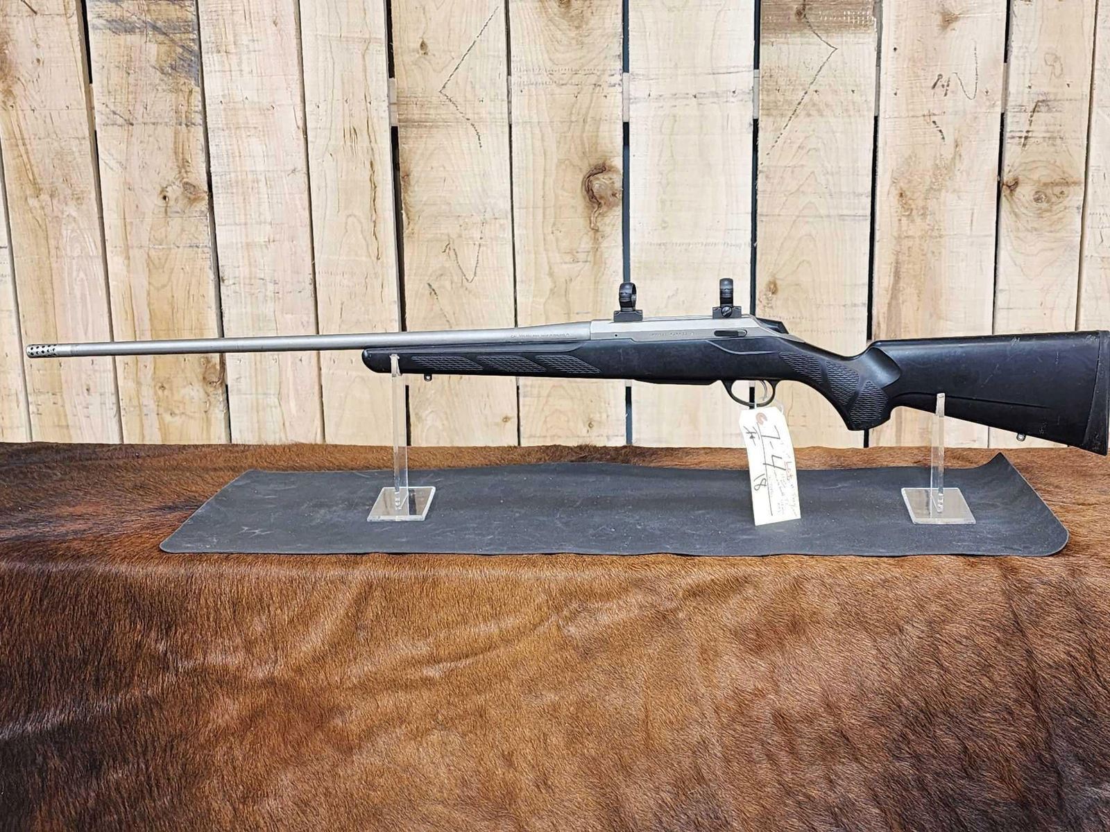 7.4 Stainless 27" barrel Shiny bore good rifling appears to be threaded barrel with scope rings SN 474411