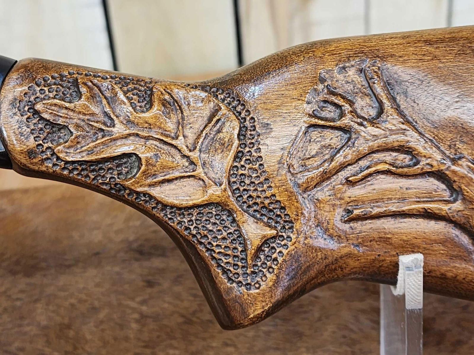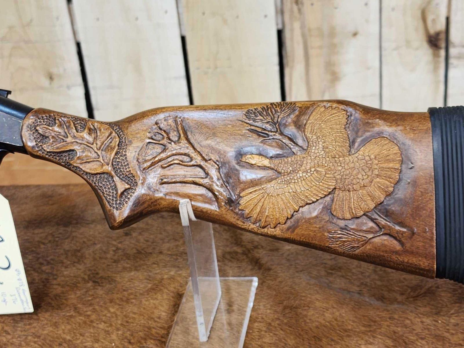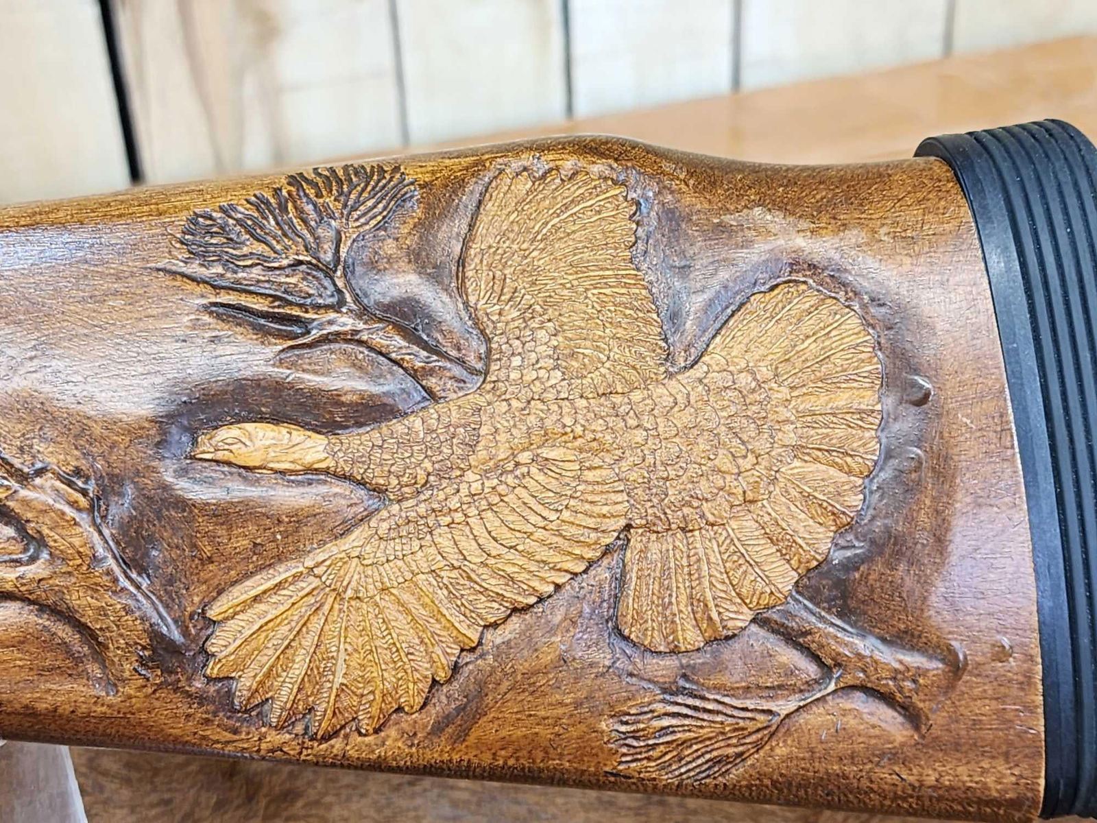 49.2 Unique gun 3 1/2" mag full choke 36" barrel Shiny bore locks up tight awesome hand Carved stock great detail featuring turkey gees SN AS269533