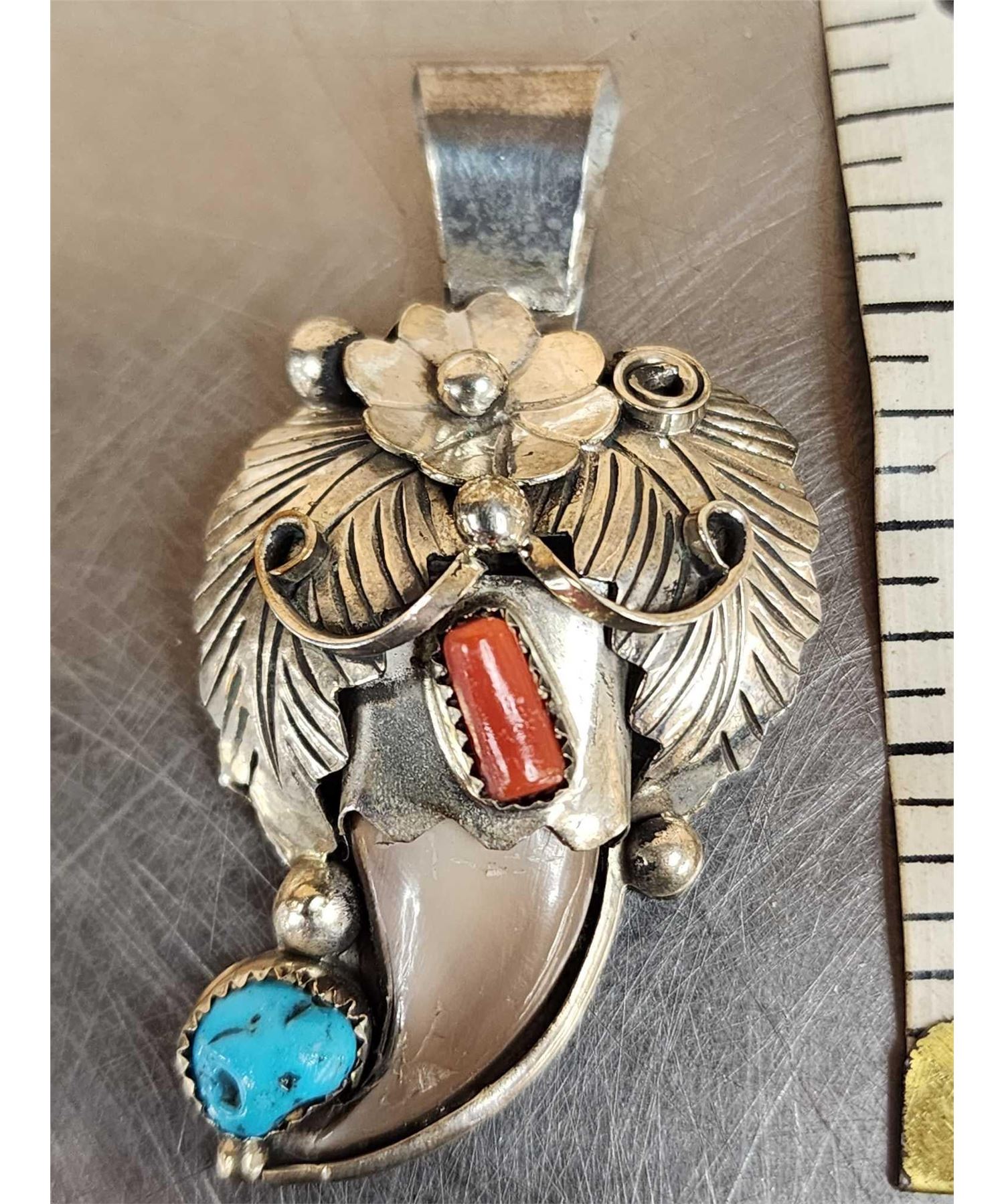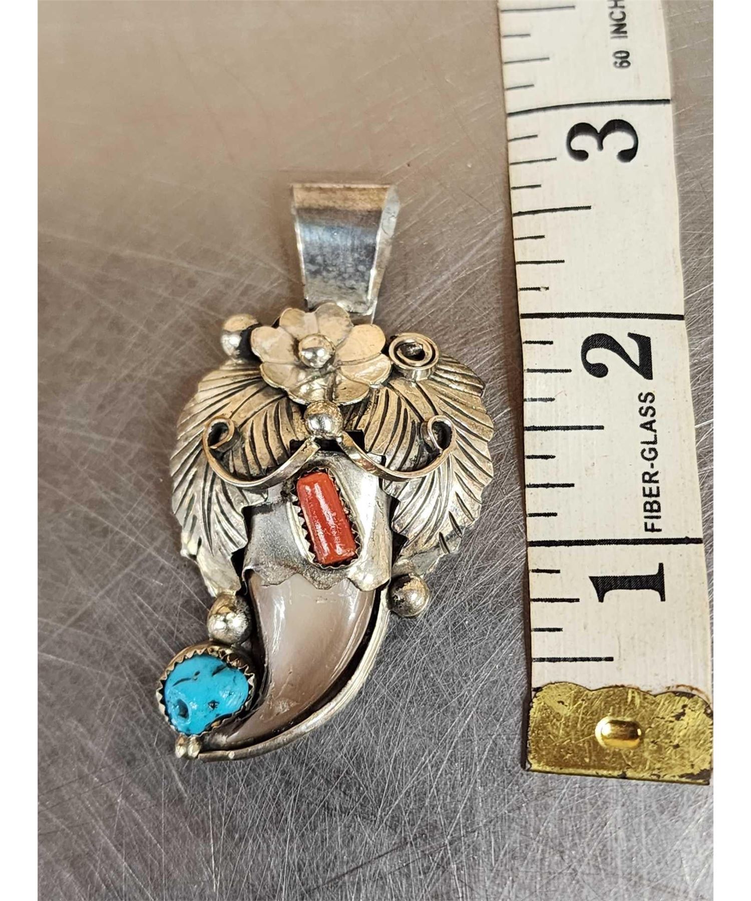 Lot 113 Navajo Sterling Silver Black Bear Claw Necklace Pendant