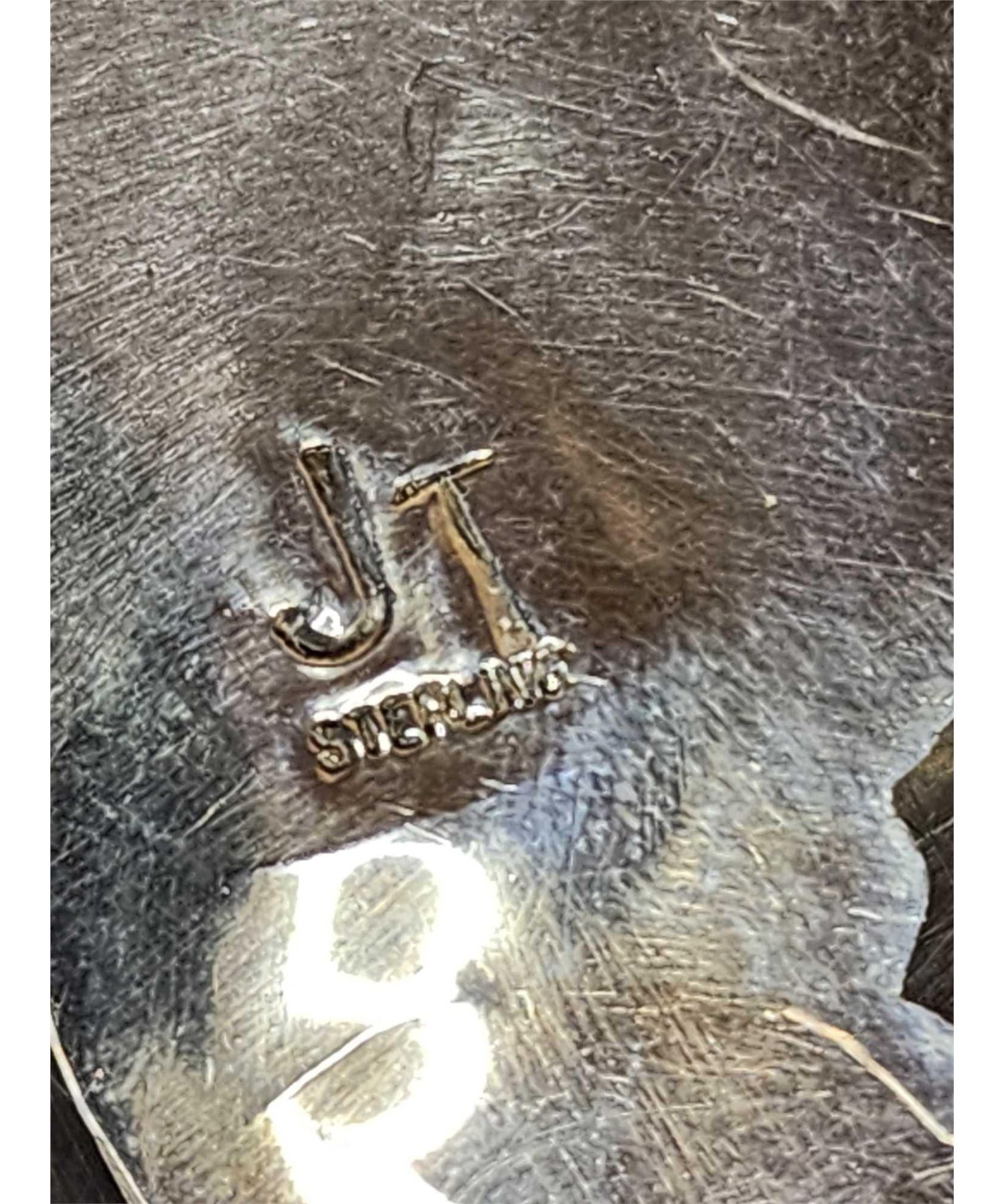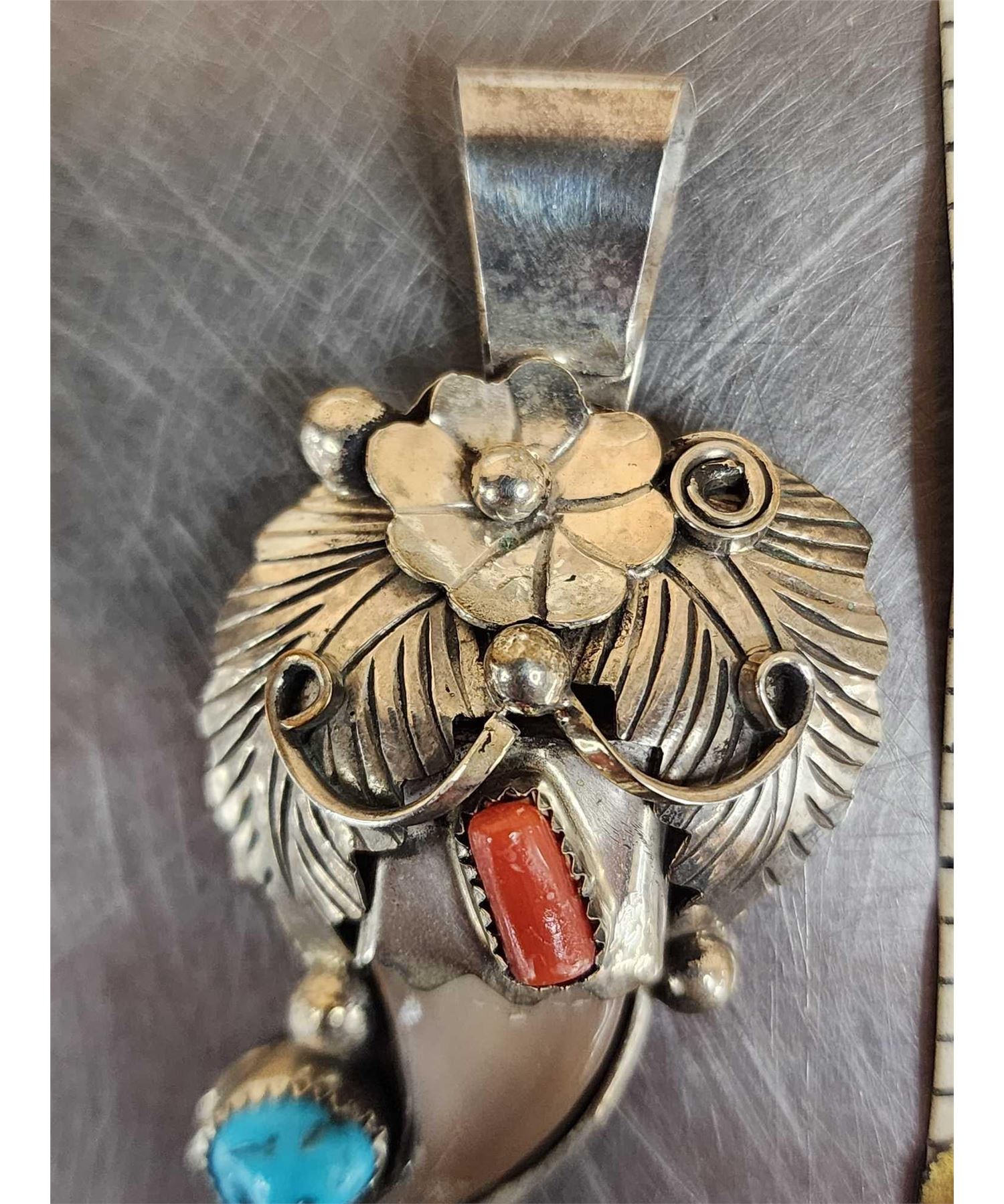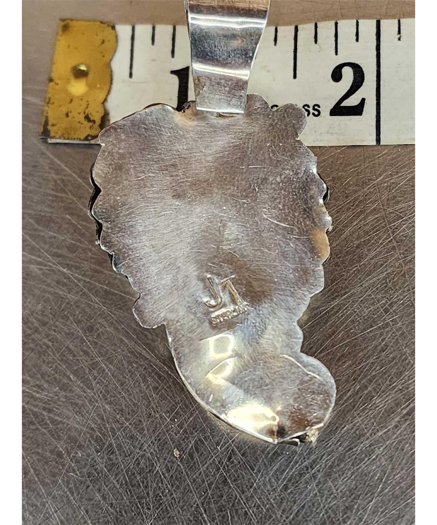 33.10 Finely tooled silver with turquoise and coral signed by the artist JT