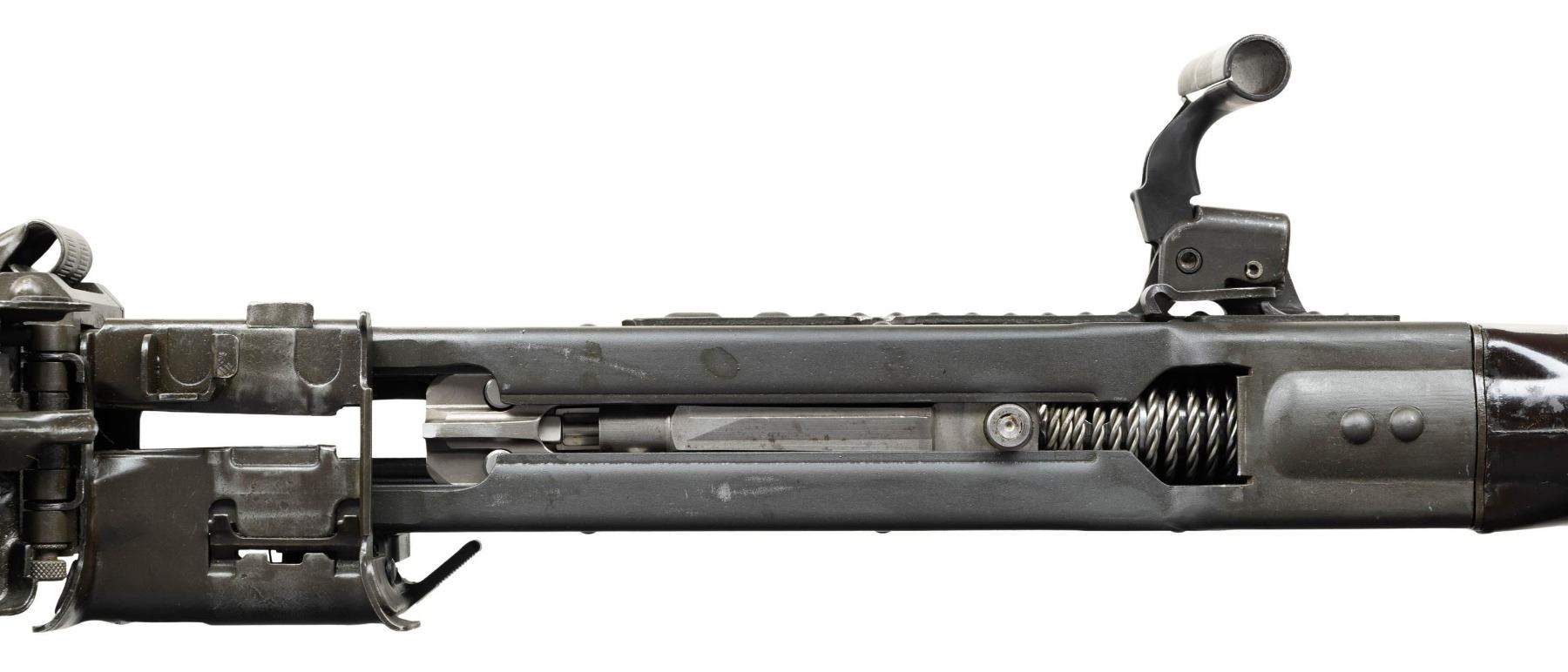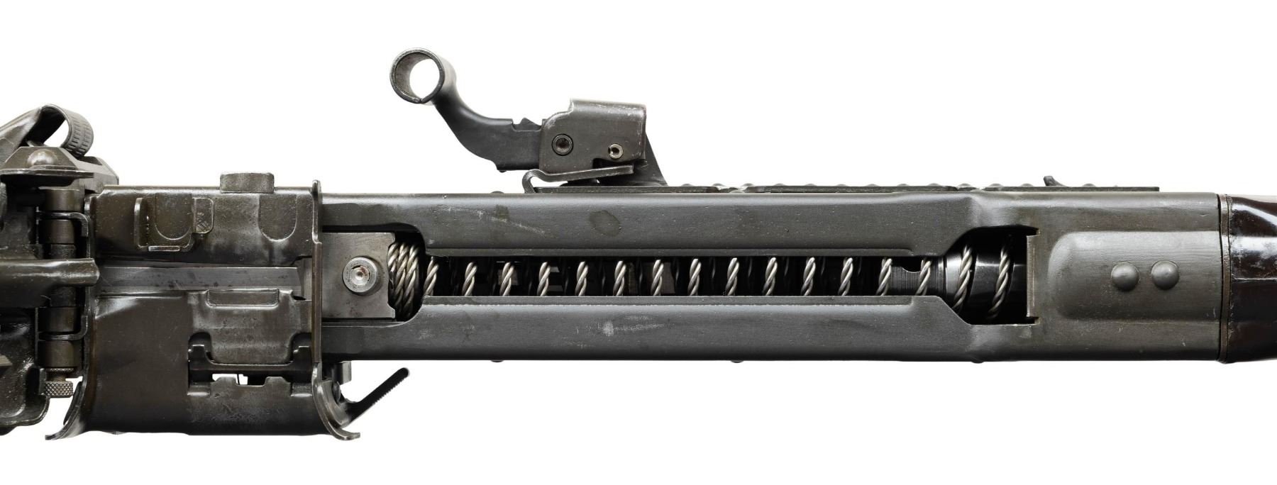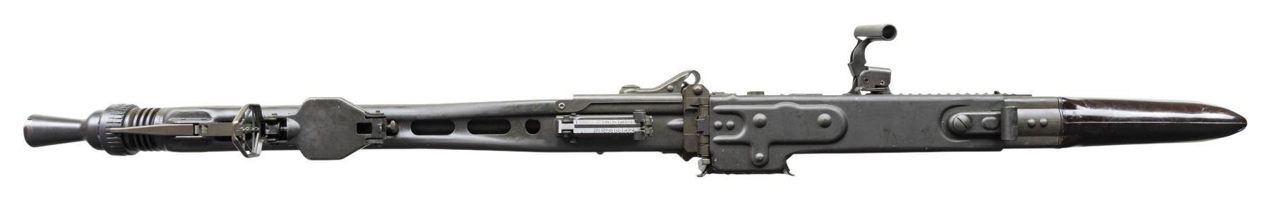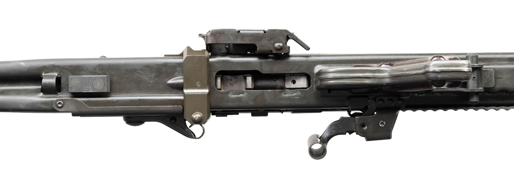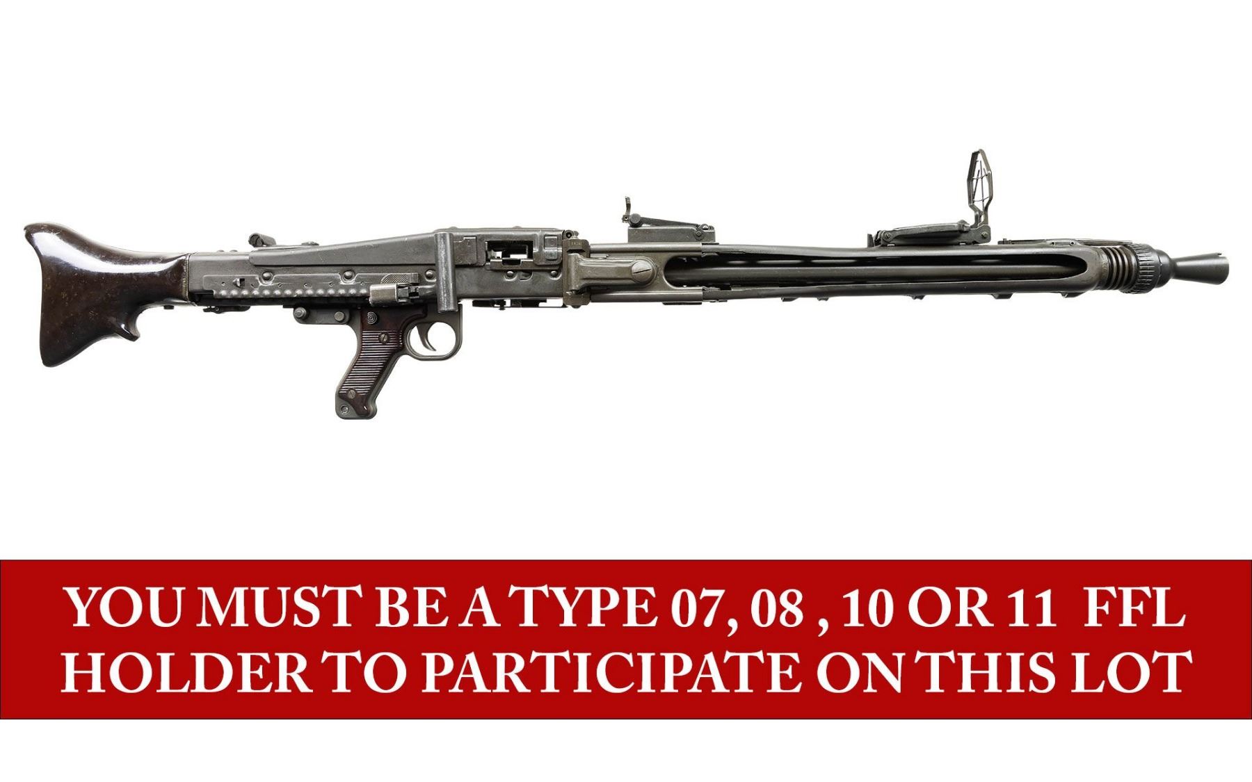 FULL AUTO BELT FED MACHINE GUN. ***BIDDERS INTERESTED IN THIS LOT MUST CURRENTLY HOLD A TYPE 07, 08, 10, OR 11 FFL.*** Cal 7.62mm (7.62x51). S# 125443. Bbl 26" over flash hider. Left side of receiver is engraved with the Ohio Ordinance Works markings. Serial number/Cal marking. MG74/1981 manufacture date. Rear sight is graduated through 1200 meters. Forward sight is a foldable anti-aircraft sight with protective cover. Bakelite butt stock and grip. CONDITION: overall very fine with only few minor blemishes and handling marks. Buttstock is very good with some minor chipping where it attaches to the receiver. Mechanically sound when cycled by hand. Overall very good bright shiny bore with good rifling. POST 1986 DEALER SAMPLE MACHINE GUN WITH NO LAW (DEMO) LETTER REQUIRED TO TRANSFER. RESTRICTED REGISTRATION POSSESSION LIMITED TO CONTINUED COMPLIANCE WITH PROVISIONS OF PUBLIC LAW 99-308. IF YOU ARE AN 07, 08, 10, or 11 FFL/SOT YOU MAY TAKE TRANSFER OF THIS FIREARM UPON APPROVAL OF TRANSFER. PROVENANCE: Military Museum Collection of Shooters Outpost, Hooksett NH. THIS ITEM WILL BE AVAILABLE FOR PREVIEW BY APPOINTMENT AT THE SHOOTERS OUTPOST MUSEUM IN HOOKSETT, NH. TO SET UP AN APPOINTMENT, PLEASE CALL 207-453-2114. (50-1918/ZAL). MODERN CLASS III. $12,000-18,000.