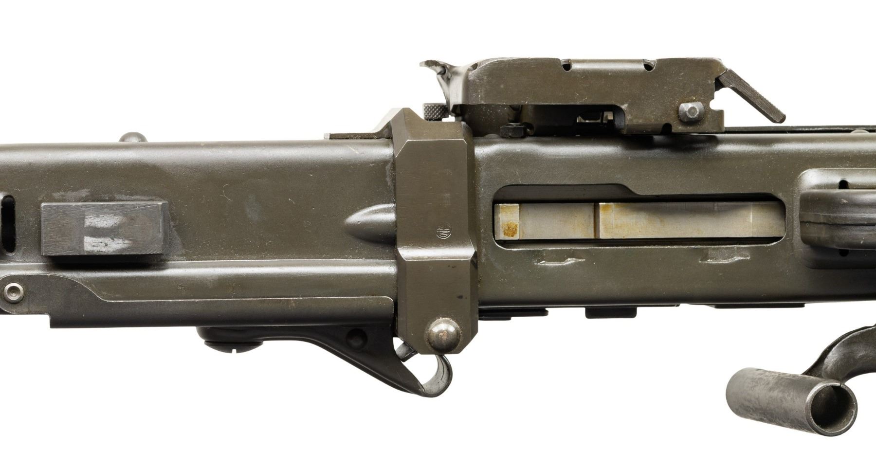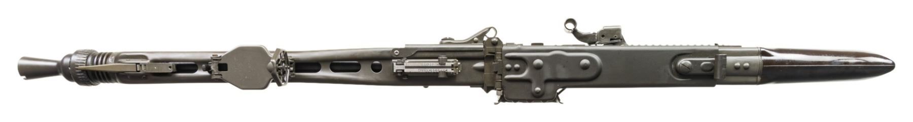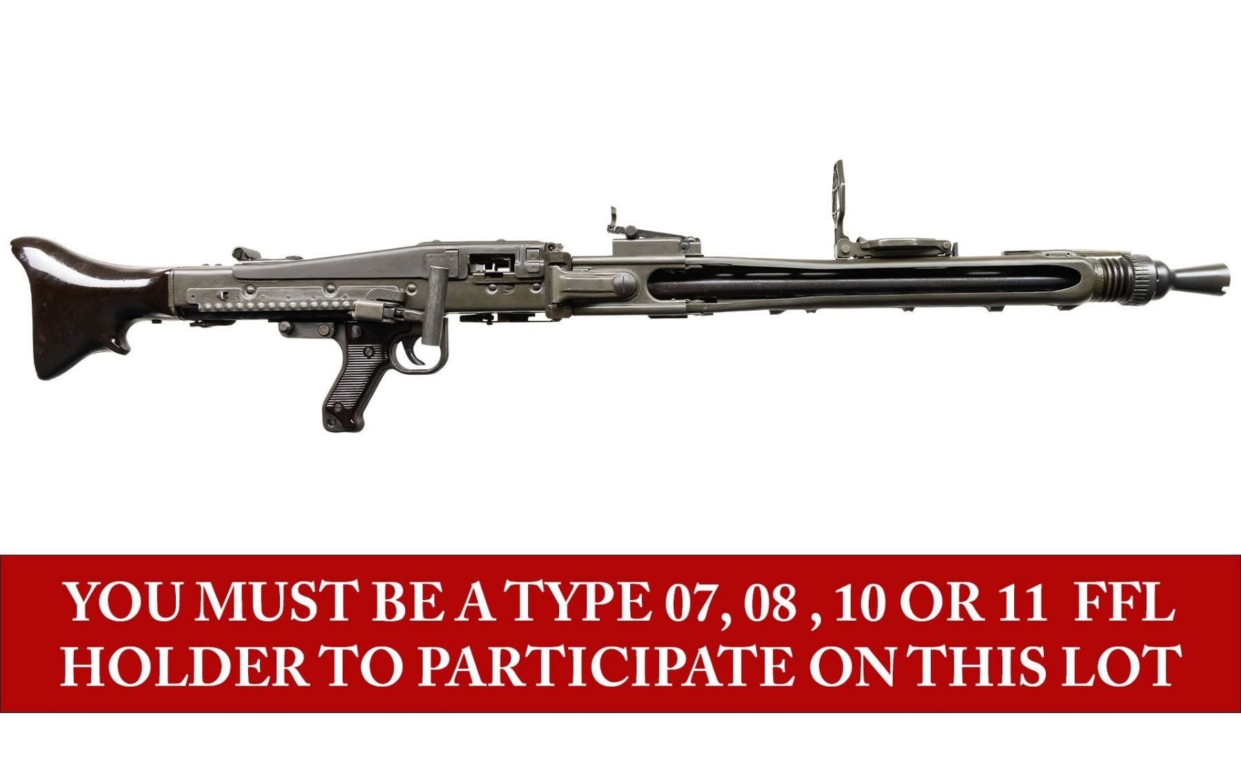 BELT FED MACHINE GUN. ***BIDDERS INTERESTED IN THIS LOT MUST CURRENTLY HOLD A TYPE 07, 08, 10, OR 11 FFL.*** Cal. 7.62x51. S# 1224. Bbl 26" over flash hider. Folding front sight, aircraft sight, & rear sight graduated to 1200m. Left side of receiver is marked "Ohio Ordnance Works. Chardon, OH. / Kal. 7.62mm MG74 / 1981". Brown composite stock and grips. CONDITION: overall very fine with only light signs of use. Minty bore. POST 1986 DEALER SAMPLE MACHINE GUN WITH NO LAW (DEMO) LETTER REQUIRED TO TRANSFER. RESTRICTED REGISTRATION POSSESSION LIMITED TO CONTINUED COMPLIANCE WITH PROVISIONS OF PUBLIC LAW 99-308. IF YOU ARE AN 07, 08, 10, or 11 FFL/SOT YOU MAY TAKE TRANSFER OF THIS FIREARM UPON APPROVAL OF TRANSFER. PROVENANCE: Military Museum Collection of Shooters Outpost, Hooksett NH. THIS ITEM WILL BE AVAILABLE FOR PREVIEW BY APPOINTMENT AT THE SHOOTERS OUTPOST MUSEUM IN HOOKSETT, NH. TO SET UP AN APPOINTMENT, PLEASE CALL 207-453-2114. (50-1936/ZAL). MODERN CLASS III. $12,000-18,000.