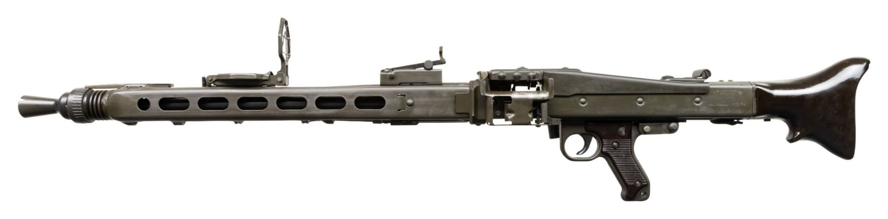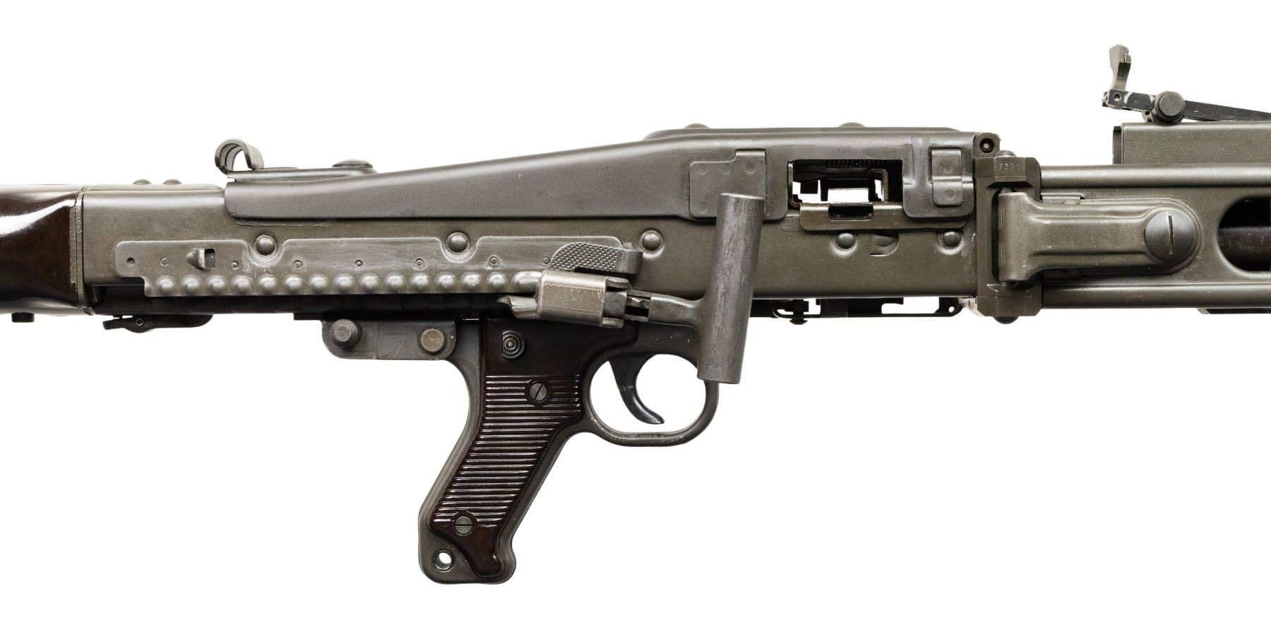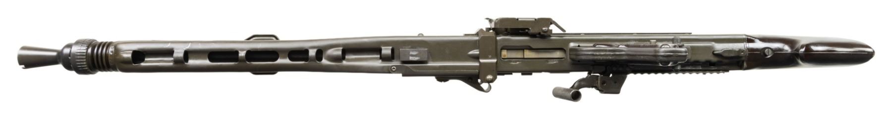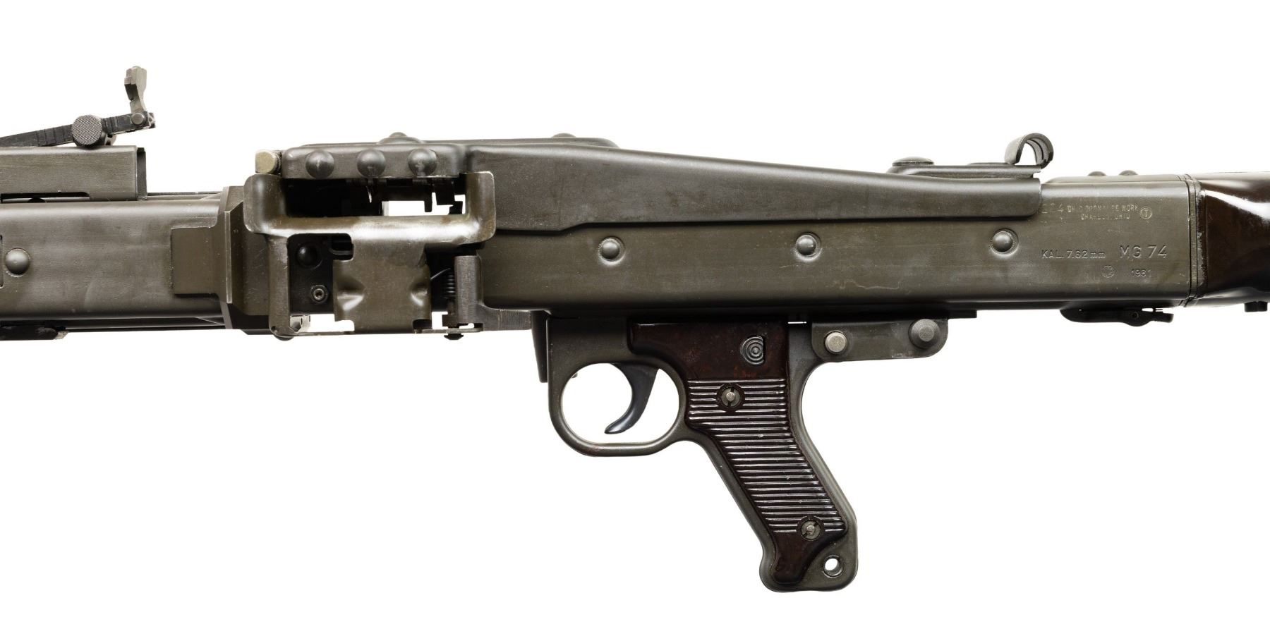 BELT FED MACHINE GUN. ***BIDDERS INTERESTED IN THIS LOT MUST CURRENTLY HOLD A TYPE 07, 08, 10, OR 11 FFL.*** Cal. 7.62x51. S# 1224. Bbl 26" over flash hider. Folding front sight, aircraft sight, & rear sight graduated to 1200m. Left side of receiver is marked "Ohio Ordnance Works. Chardon, OH. / Kal. 7.62mm MG74 / 1981". Brown composite stock and grips. CONDITION: overall very fine with only light signs of use. Minty bore. POST 1986 DEALER SAMPLE MACHINE GUN WITH NO LAW (DEMO) LETTER REQUIRED TO TRANSFER. RESTRICTED REGISTRATION POSSESSION LIMITED TO CONTINUED COMPLIANCE WITH PROVISIONS OF PUBLIC LAW 99-308. IF YOU ARE AN 07, 08, 10, or 11 FFL/SOT YOU MAY TAKE TRANSFER OF THIS FIREARM UPON APPROVAL OF TRANSFER. PROVENANCE: Military Museum Collection of Shooters Outpost, Hooksett NH. THIS ITEM WILL BE AVAILABLE FOR PREVIEW BY APPOINTMENT AT THE SHOOTERS OUTPOST MUSEUM IN HOOKSETT, NH. TO SET UP AN APPOINTMENT, PLEASE CALL 207-453-2114. (50-1936/ZAL). MODERN CLASS III. $12,000-18,000.