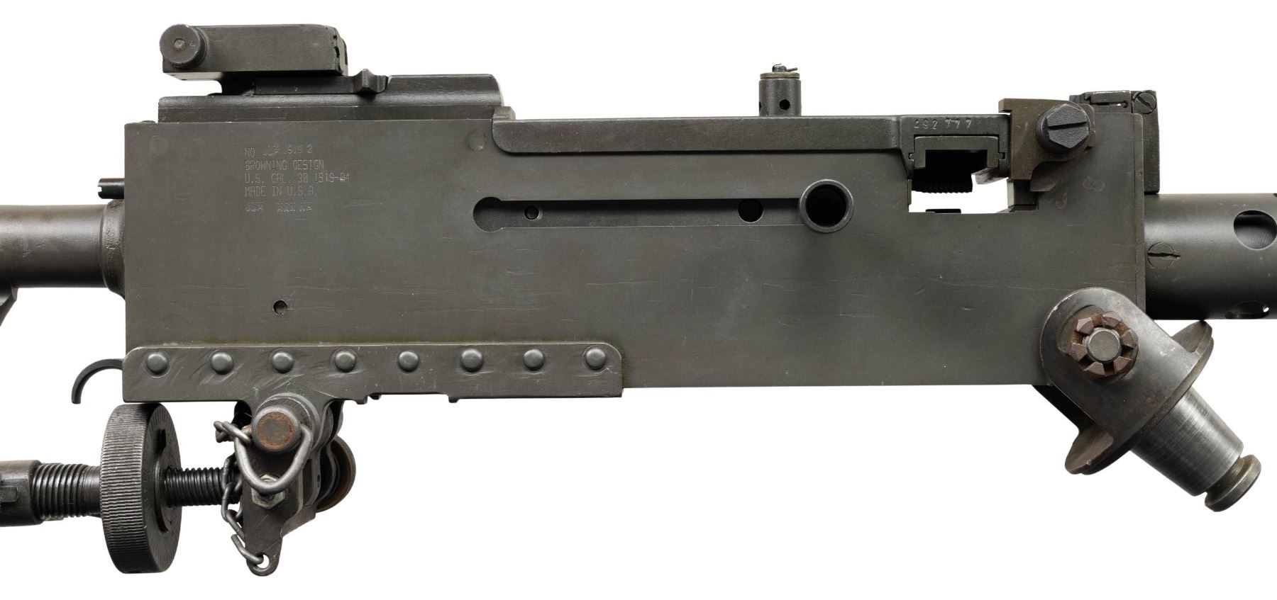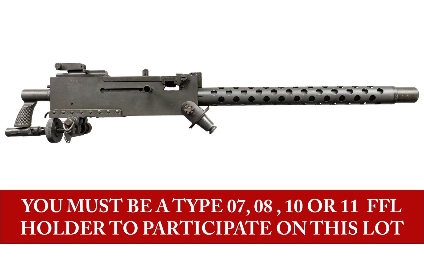 GUN. ***BIDDERS INTERESTED IN THIS LOT MUST CURRENTLY HOLD A TYPE 07, 08, 10, OR 11 FFL.*** Cal. 7.62x51. S# JLM19192. Bbl 25". The 1919 is one of the most iconic ground & vehicle mounted machine guns in U.S. Military history w/such a long range of service, from the early 1920s through Vietnam. Right side plate marked "No. JLM 19192/Browning design/U.S.Cal.30 1919-a4/made in U.S.A./JLM Man NH". Left side plate marked "7.62n". Cover is marked "492777". Includes spindle and elevator, rear sight marked for 7.62 and graduated to 1800 yards. Flip up blade front sight. CONDITION: overall very fine, reparkerized finish. Consignor states unfired after manufactured. Bore is bright with nice rifling. POST 1986 DEALER SAMPLE MACHINE GUN WITH NO LAW (DEMO) LETTER REQUIRED TO TRANSFER. RESTRICTED REGISTRATION POSSESSION LIMITED TO CONTINUED COMPLIANCE WITH PROVISIONS OF PUBLIC LAW 99-308. IF YOU ARE AN 07, 08, 10, or 11 FFL/SOT YOU MAY TAKE TRANSFER OF THIS FIREARM UPON APPROVAL OF TRANSFER. PROVENANCE: Military Museum Collection of Shooters Outpost, Hooksett NH. THIS ITEM WILL BE AVAILABLE FOR PREVIEW BY APPOINTMENT AT THE SHOOTERS OUTPOST MUSEUM IN HOOKSETT, NH. TO SET UP AN APPOINTMENT, PLEASE CALL 207-453-2114. (50-1862/ZAL). MODERN CLASS III. $3,000-5,000.
