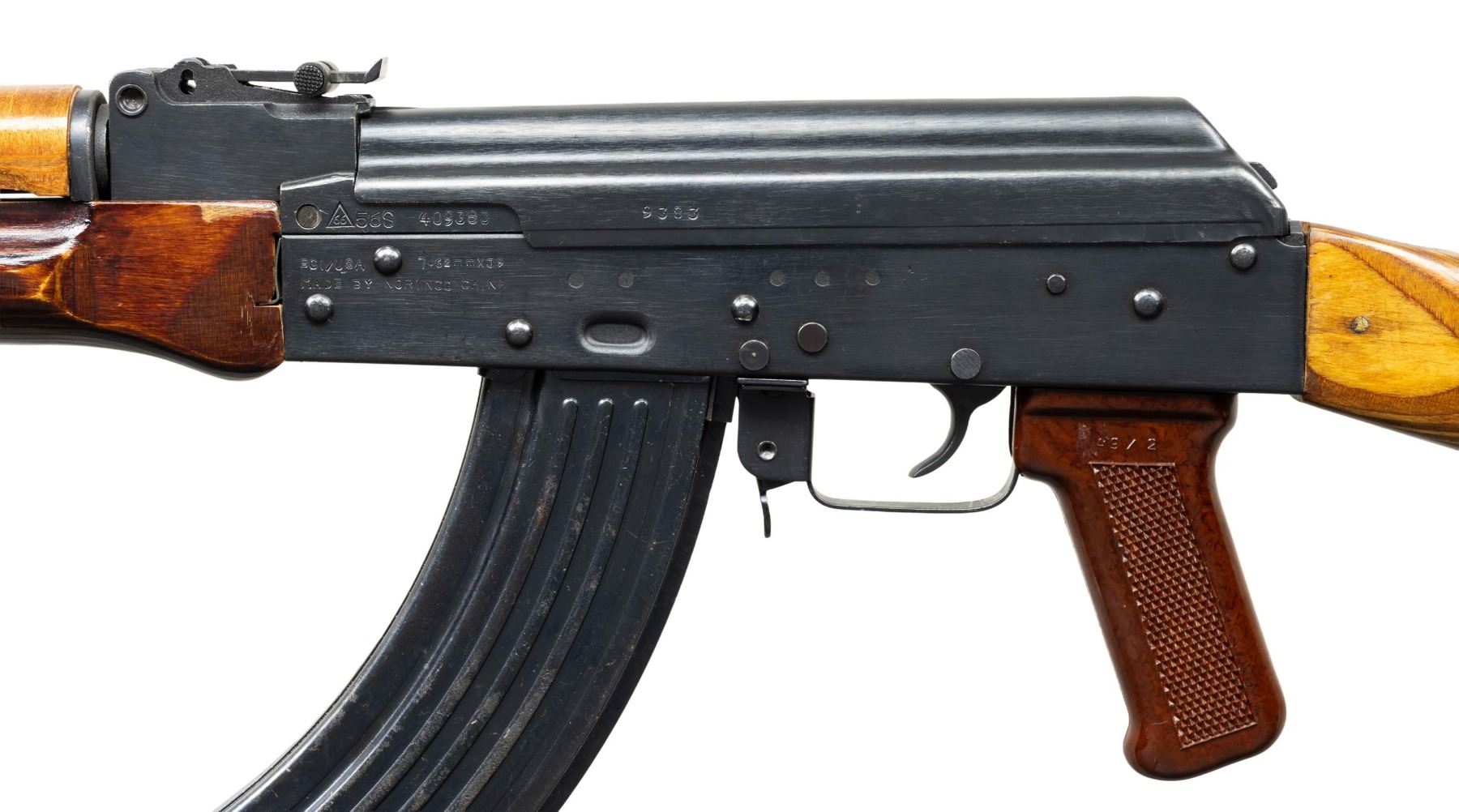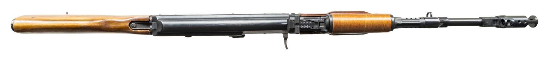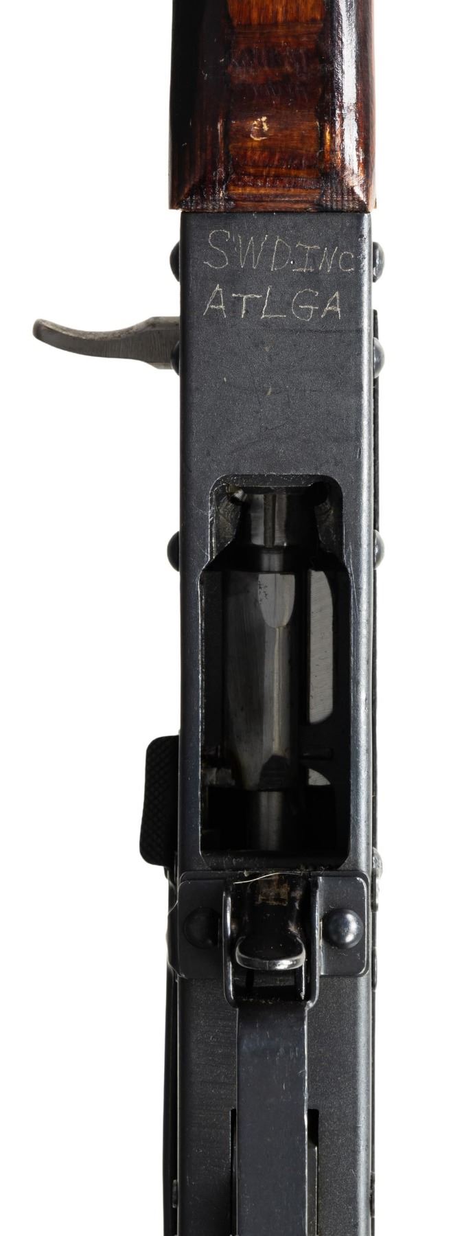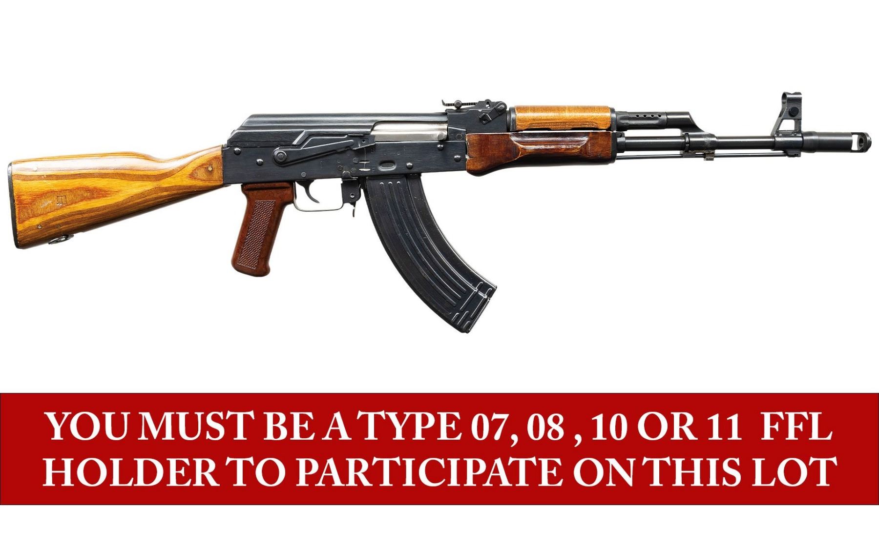 FIRE RIFLE. ***BIDDERS INTERESTED IN THIS LOT MUST CURRENTLY HOLD A TYPE 07, 08, 10, OR 11 FFL.*** Cal 7.62x39. S# 409383. Bbl 18.5" over brake. Rear sight graduated to 800 meters. Left side of the receiver is marked "Triangle 66 56s Serial number/BCI/USA 7.62mm-39/Made by Norinco China". Belly of receiver have electro-penciled "SWD Inc/ ACL GA". Laminated stock set. Bakelite pistol grip. MAGS: 1-30 rd. CONDITION: overall very good with scattered mild handling marks and light scratches. Matching external numbers. Very nice bright bore with sharp rifling. POST 1986 DEALER SAMPLE MACHINE GUN WITH NO LAW (DEMO) LETTER REQUIRED TO TRANSFER. RESTRICTED REGISTRATION POSSESSION LIMITED TO CONTINUED COMPLIANCE WITH PROVISIONS OF PUBLIC LAW 99-308. IF YOU ARE AN 07, 08, 10, or 11 FFL/SOT YOU MAY TAKE TRANSFER OF THIS FIREARM UPON APPROVAL OF TRANSFER. PROVENANCE: Military Museum Collection of Shooters Outpost, Hooksett NH. THIS ITEM WILL BE AVAILABLE FOR PREVIEW BY APPOINTMENT AT THE SHOOTERS OUTPOST MUSEUM IN HOOKSETT, NH. TO SET UP AN APPOINTMENT, PLEASE CALL 207-453-2114. (50-1933/ZAL). MODERN CLASS III. $1,000-1,500.