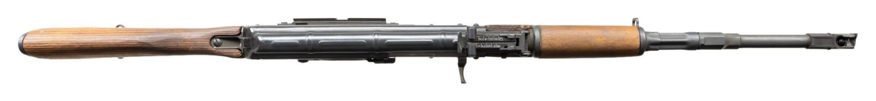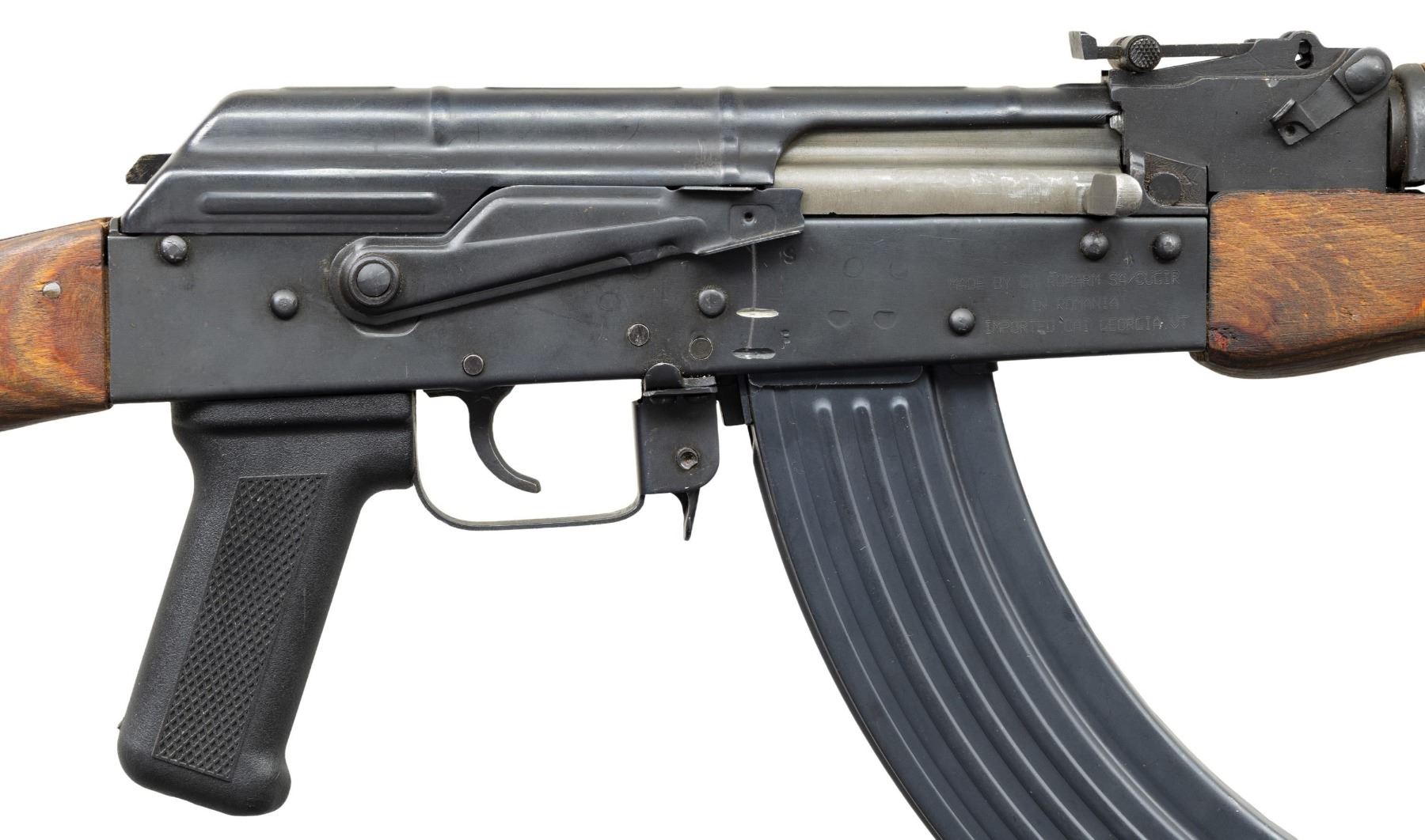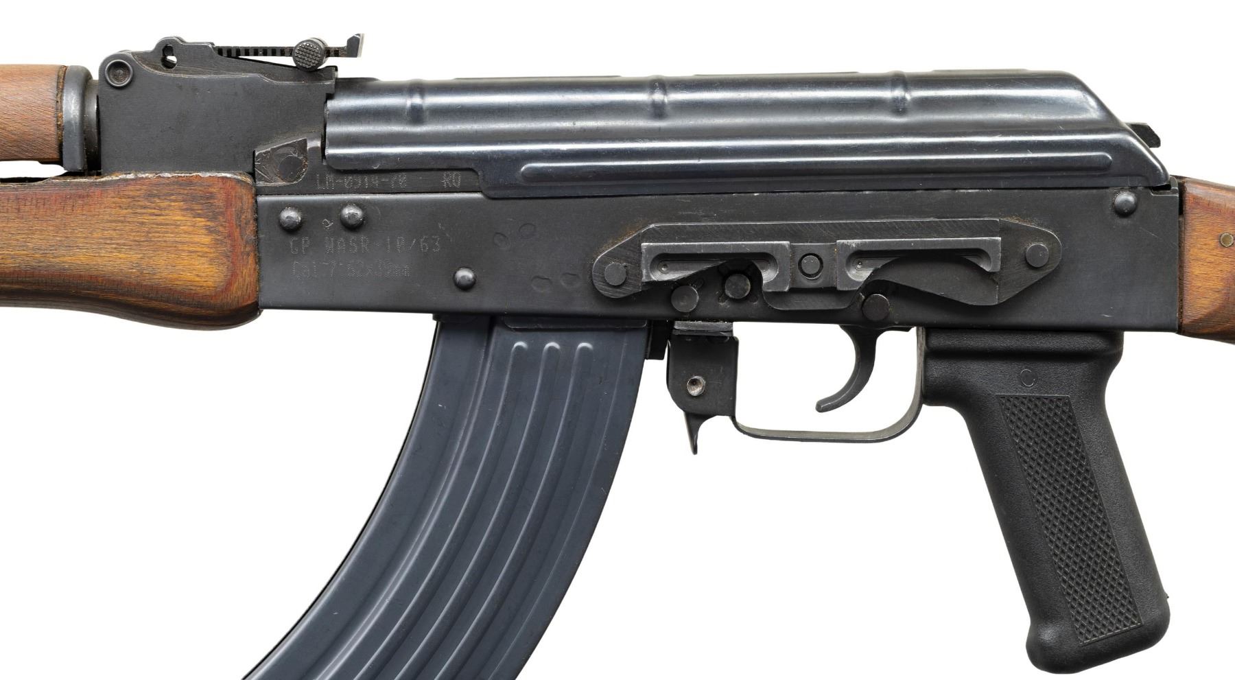 63 FULL AUTO MACHINE GUN. ***BIDDERS INTERESTED IN THIS LOT MUST CURRENTLY HOLD A TYPE 07, 08, 10, OR 11 FFL.*** Cal 7.62x39. S# LM-0914-70. Bbl 17". Rear sight graduated to 1000 meters. Left side of receiver is marked "GPWASR-10/63/CAL.7.62-39mm". Right side of receiver is marked "Made by CM ROARM SA/CUGIR/in Romania/Imported CAI Georgia, VP". Receiver belly is marked "JLM & Sons/Manchester/NH". Sight rail on the left side of receiver. Laminated forearm, hand guard and butt. Checkered hard plastic pistol grip. CONDITION: overall fair to good with arsenal type refinished metal surfaces showing some light scratches and handling marks and moderate wear. Stock has numerous handling marks and light scratches. Bright shiny bore with sharp rifling. POST 1986 DEALER SAMPLE MACHINE GUN WITH NO LAW (DEMO) LETTER REQUIRED TO TRANSFER. RESTRICTED REGISTRATION POSSESSION LIMITED TO CONTINUED COMPLIANCE WITH PROVISIONS OF PUBLIC LAW 99-308. IF YOU ARE AN 07, 08, 10, or 11 FFL/SOT YOU MAY TAKE TRANSFER OF THIS FIREARM UPON APPROVAL OF TRANSFER. PROVENANCE: Military Museum Collection of Shooters Outpost, Hooksett NH. THIS ITEM WILL BE AVAILABLE FOR PREVIEW BY APPOINTMENT AT THE SHOOTERS OUTPOST MUSEUM IN HOOKSETT, NH. TO SET UP AN APPOINTMENT, PLEASE CALL 207-453-2114. (50-1864/ZAL). MODERN CLASS III. $1,000-1,500.