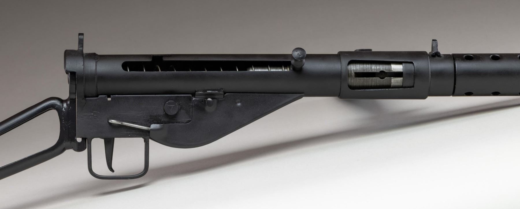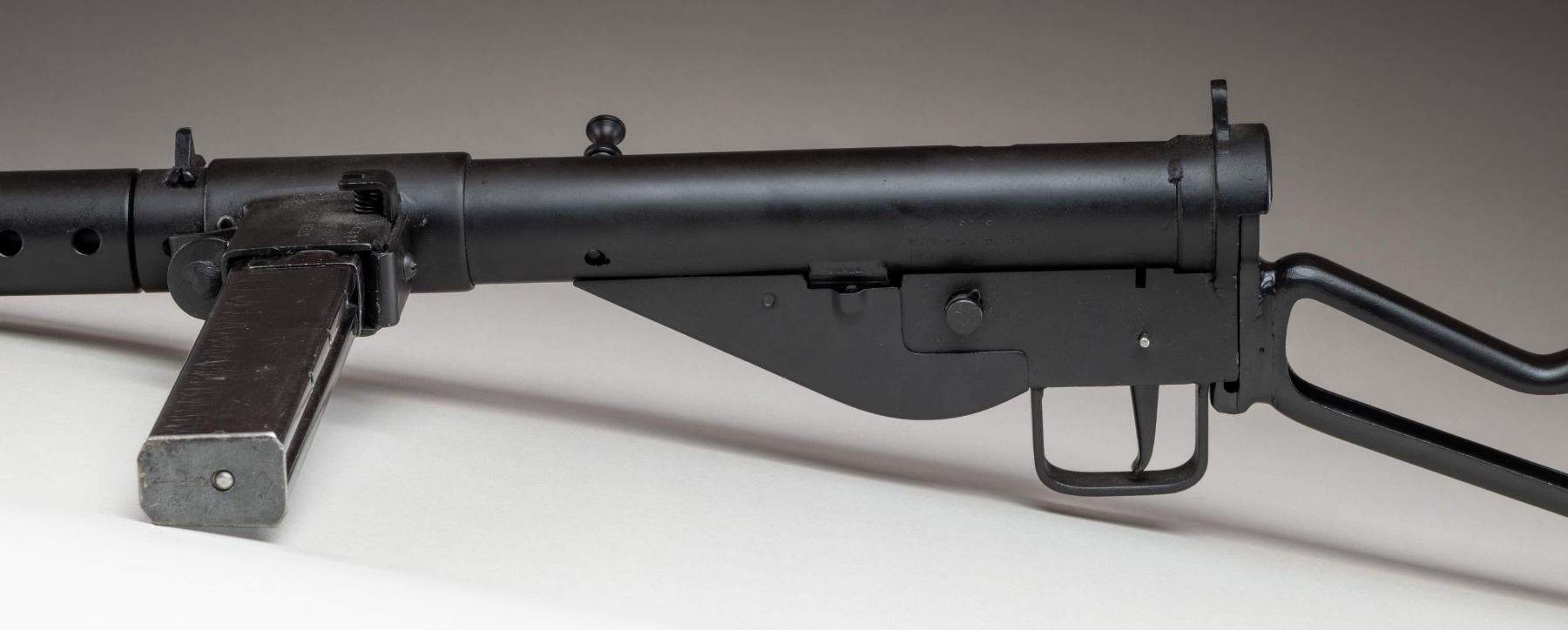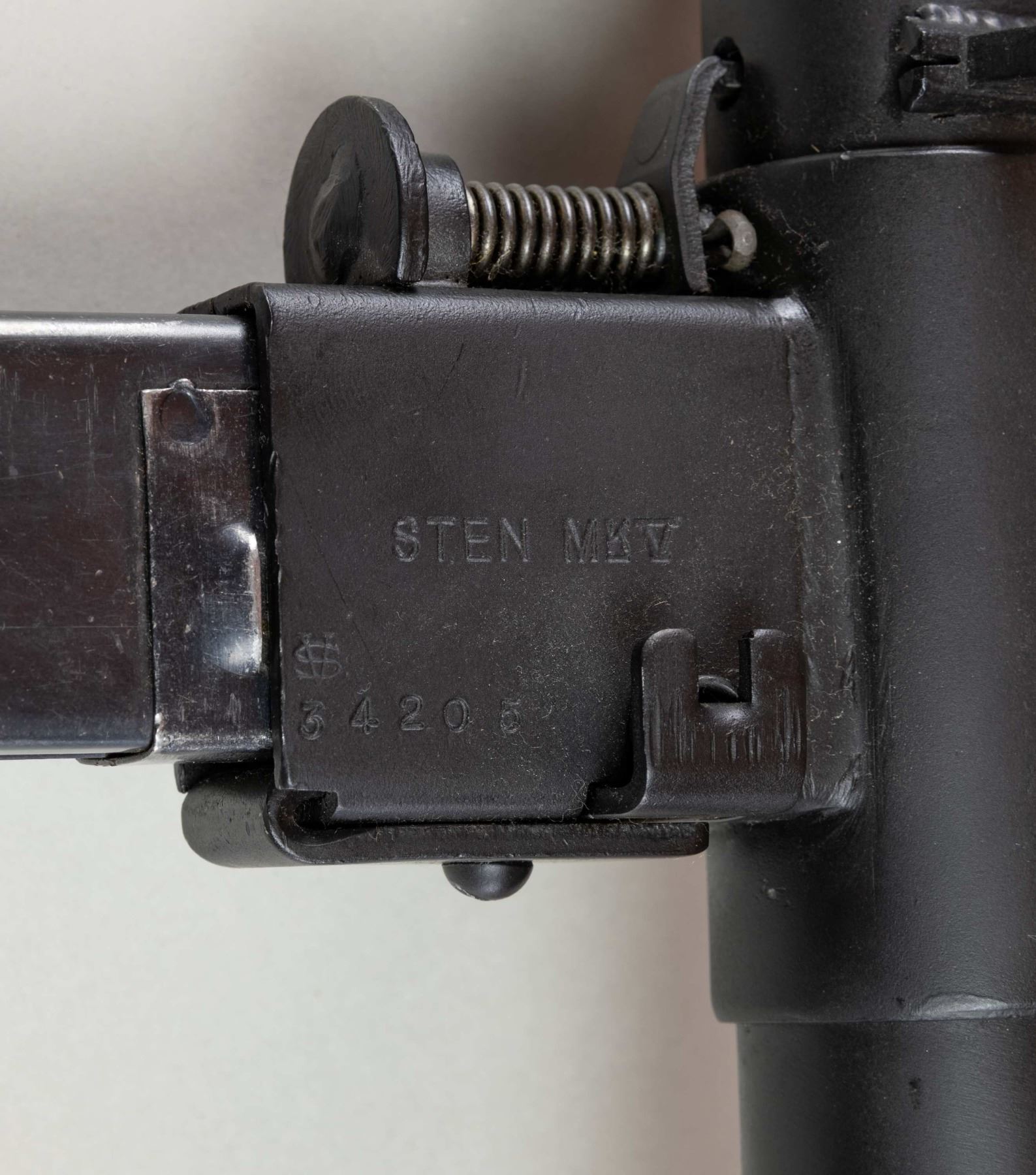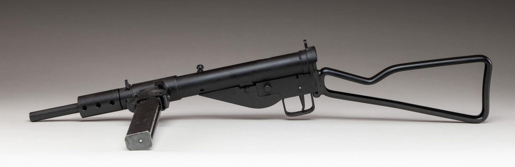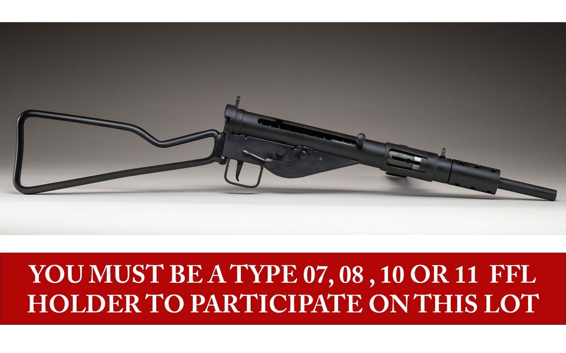 10KV SUBMACHINE GUN. ***BIDDERS INTERESTED IN THIS LOT MUST CURRENTLY HOLD A TYPE 07, 08, 10, OR 11 FFL.*** Cal 9mm Para. S# JLM0411SP. Bbl 8". Magazine well is marked with the original Sten "MKV" marking with an intertwined "SV/34205". Left side of the tube is marked "JLM & Sons/ Manchester NH/MKII JLM-0411SP". CONDITION: overall very finely well restored metal finish with some scattered handling marks. Lightly frosted bore with mild rifling wear. Mechanically fine when cycled by hand. POST 1986 DEALER SAMPLE MACHINE GUN WITH NO LAW (DEMO) LETTER REQUIRED TO TRANSFER. RESTRICTED REGISTRATION POSSESSION LIMITED TO CONTINUED COMPLIANCE WITH PROVISIONS OF PUBLIC LAW 99-308. IF YOU ARE AN 07, 08, 10, or 11 FFL/SOT YOU MAY TAKE TRANSFER OF THIS FIREARM UPON APPROVAL OF TRANSFER. PROVENANCE: Military Museum Collection of Shooters Outpost, Hooksett NH. THIS ITEM WILL BE AVAILABLE FOR PREVIEW BY APPOINTMENT AT THE SHOOTERS OUTPOST MUSEUM IN HOOKSETT, NH. TO SET UP AN APPOINTMENT, PLEASE CALL 207-453-2114. (50-1916/ZAL). MODERN CLASS III. $800-1,200.