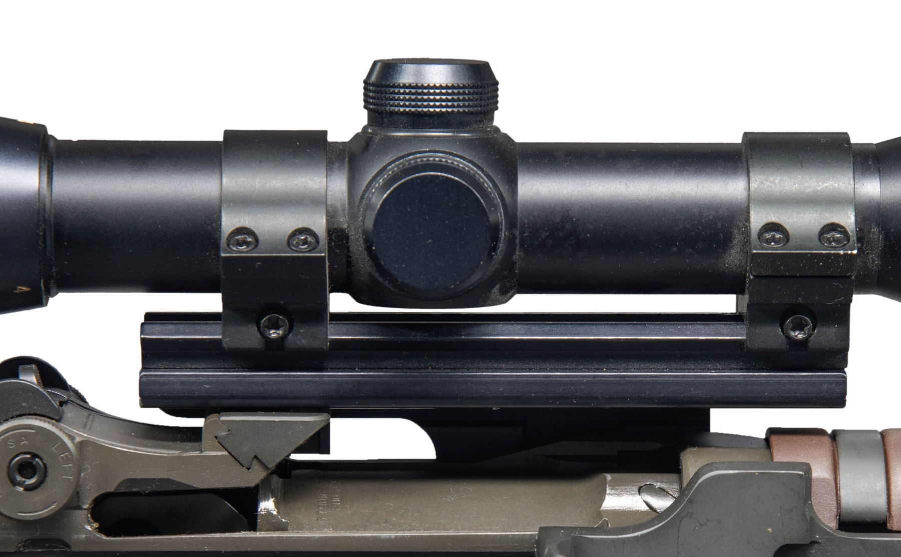RIFLE. Cal. 308 Win. S# 420885. Bbl. 25" including flash suppressor. Standard weight barrel. Flash suppressor fitted with bayonet lug. T105E1 rear sight. Blade front sight with protective ears marked "NM062". Bolt and operating rod marked "SA". Gas shutoff is functional. Walnut stock marked "BOYDS SA" in barrel channel. Standard flip-up buttplate. Green web GI sling. Brown synthetic handguard. Trigger group is unmarked. MAGS: one detachable 20 round GI. Rifle fitted with two point scope mount which attaches to the clip guide dovetail. Mount with Weaver base carries a Springfield Armory government model 4x14x56 matte black telescopic sight. Scope is marked "JAPAN". Capped finger adjustable turrets. Range finding crosshair reticle. UNATTACHED ACCESSORIES: unmarked black plastic scope caps. CONDITION: rifle is in near excellent overall condition, showing very little careful use. Scope mount has tiny semicircular scratch near attaching knob. Very good shiny bore with sharp lands. (25-6520/RW). CURIO. $1,200-1,800.