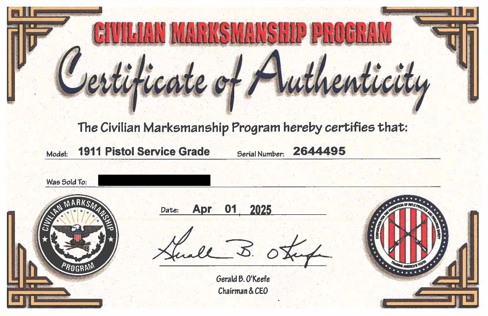 Lot 1397 CMP SERVICE GRADE ARSENAL REBUILT 1911A1 SEMI AUTO