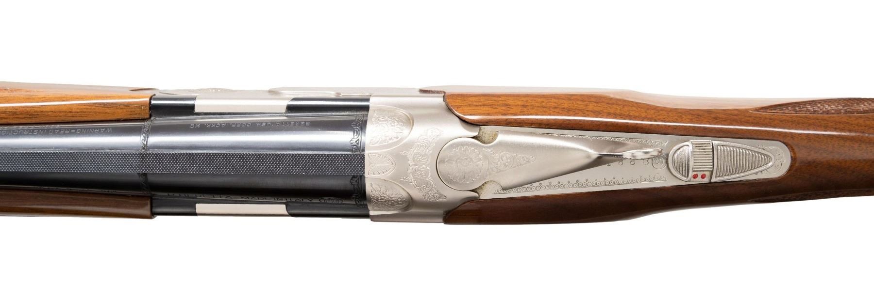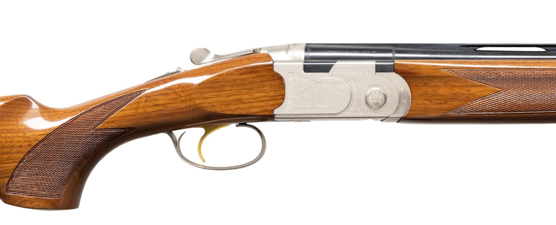 Cal. 28 Ga., 2 3/4". S# M17188B. Mfg. 1996. VR 26" bbls. w/ steel bead; Skeet choke tubes installed. Silver finished action w/ scroll engraving, gold plated SST & ejectors. Gloss finished checkered walnut stock set. LOP: 14" to black Beretta pad. UNATTACHED ACCESSORIES: sale paperwork. CONDITION: all aspects near excellent with light dings in buttstock. Shiny bores with light fouling. (25-5194/MD). MODERN. $2,000-4,000.
