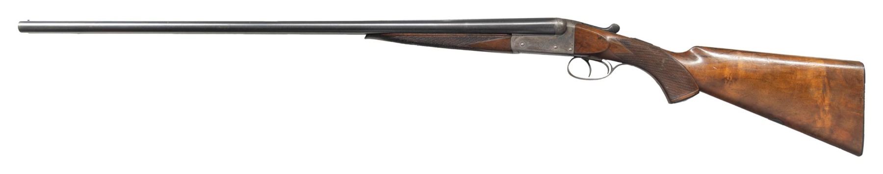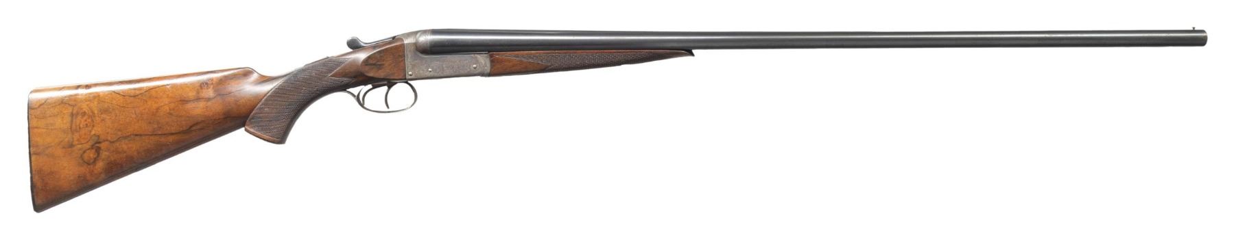 Cal. 28 ga., 2 1/2" chamber. S# 19947. Bbls. 27 3/4" with brass front bead. Case colored boxlock action with 50% coverage of tasteful vine type scroll engraving. Double triggers. Extractors. Ebony capped forearm and ebony capped pistol grip stock walnut stock have point pattern hand checkering with silver oval nameplate on toeline. LOP: 13 5/8". DAC: 1 1/2". DAH: 2 1/4". Stock has approximately 1/8" cast off. Bore diameter: R .555. L .554. Choke constriction: R .025. L .029. (Full and Full). Minimum wall thickness: R .038. L .040. WEIGHT: 5 lbs, 5.2oz. CONDITION: barrels have over 80% lightly faded blue showing carry wear with scattered spots of freckling and handling marks. Receiver has a small amount of visible case colors fading to brown. Stocks have worn finish and checkering with scratches and marks as well as an area of heavier gouges on the forearm. Action is tight and on face. Very good bright bores. PROVENANCE: Estate of Lloyd Robinson. (25-6665/DS). CURIO. $3,500-5,000.
