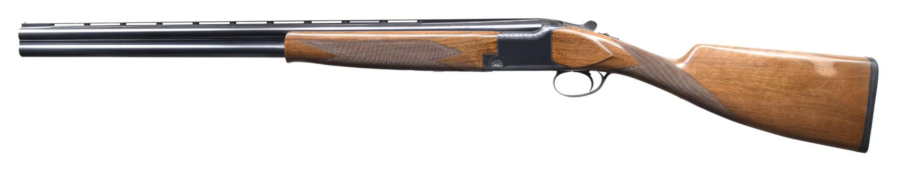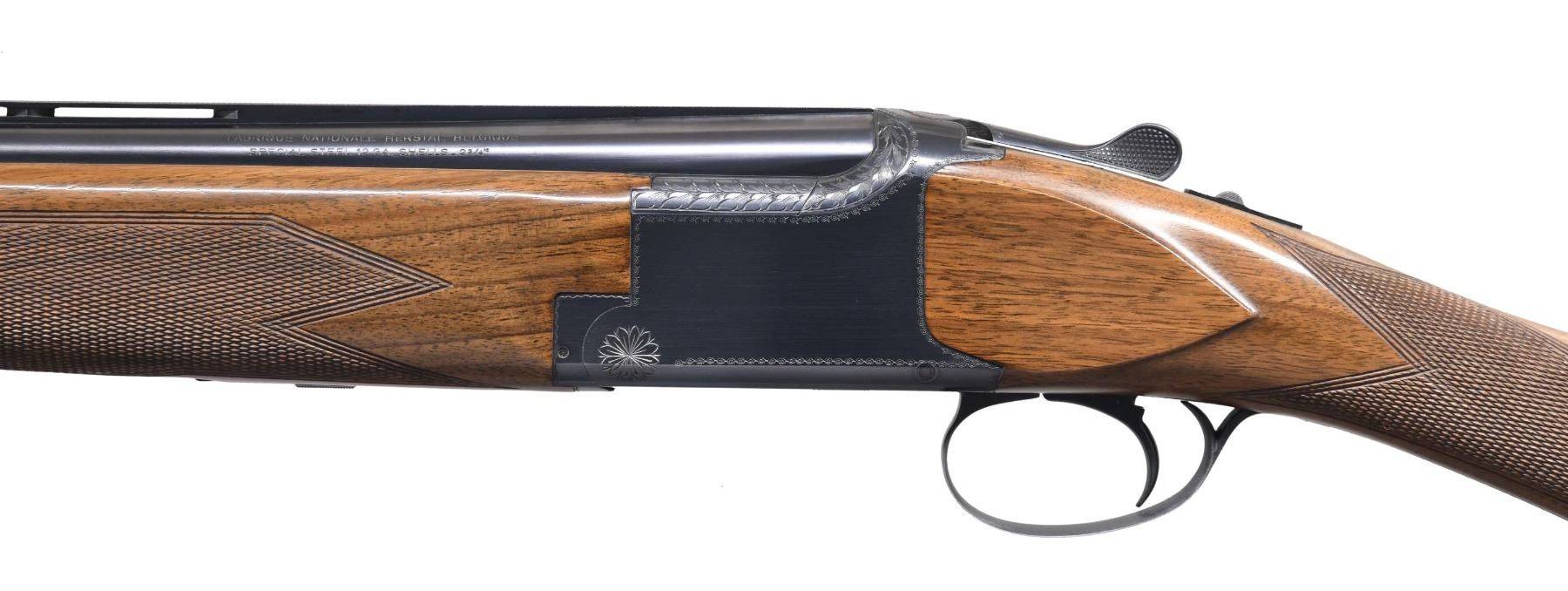 SHOTGUN. Cal. 12 ga. 2 3/4". S# 61207S77. Bbls. 26 1/2" vent rib w/ steel bead. Fixed Full & Full chokes. Blued receiver has borderline engraving. Blued SST. Ejectors. Schnable tipped forearm & swan's neck walnut stock w/ hand checkering. LOP: 14 5/8" over an aftermarket thin black Old English pad (stock has not been shortened). WEIGHT: 6 lbs, 12.4 oz. Mfg. 1977 in Belgium. UNATTACHED ACCESSORIES: non-matching foam-lined Browning box. CONDITION: over 98% original blue showing small marks at bottom of bbl. lugs. Very good original stock finish & checkering having small handling marks & a spot of finish loss at the left side of comb. Action is tight w/ top lever sitting right of center. Bright near excellent bores. (25-903/DS). MODERN. $2,000-3,000.