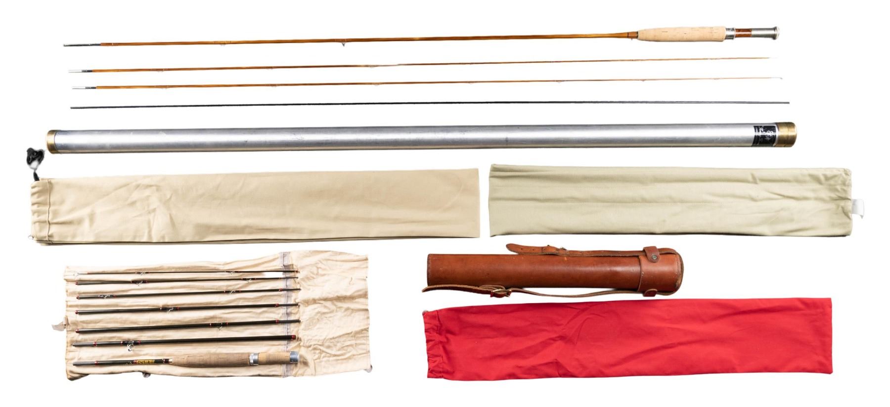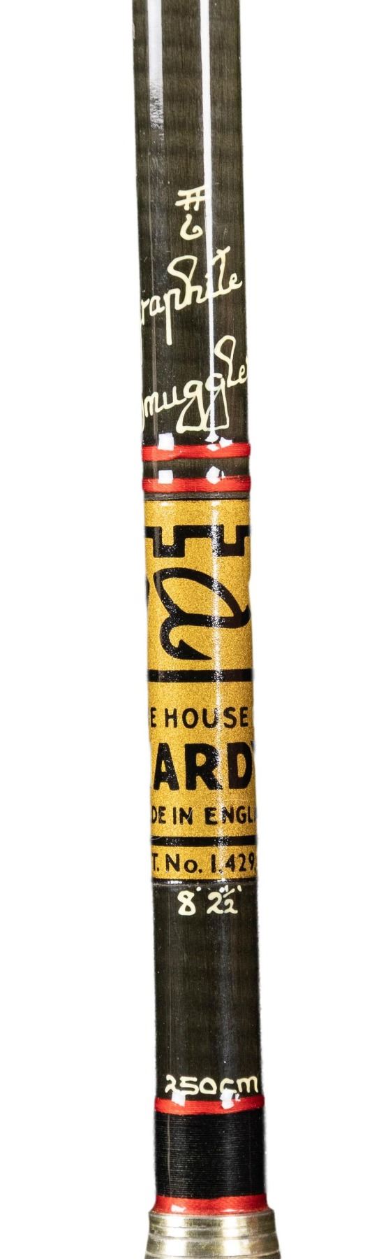 1) Thomas & Thomas "Paradigm" bamboo fly rod. S# 3968. 8', 5 weight, 2 piece, 2 tips, figured walnut reel seat in cloth bag and original tube with label. CONDITION: very fine with evidence of very light use. 2) Hardy Brothers Graphite fly rod. 8'2-1/2", 6 weight, 7 piece "Smuggler" in bag and leather tube. CONDITION: fine; little use. Handle cork darkened. PROVENANCE: From the Private Collection of Berrien Moore III. (02-25866-6/MGM) $1,000-2,000.