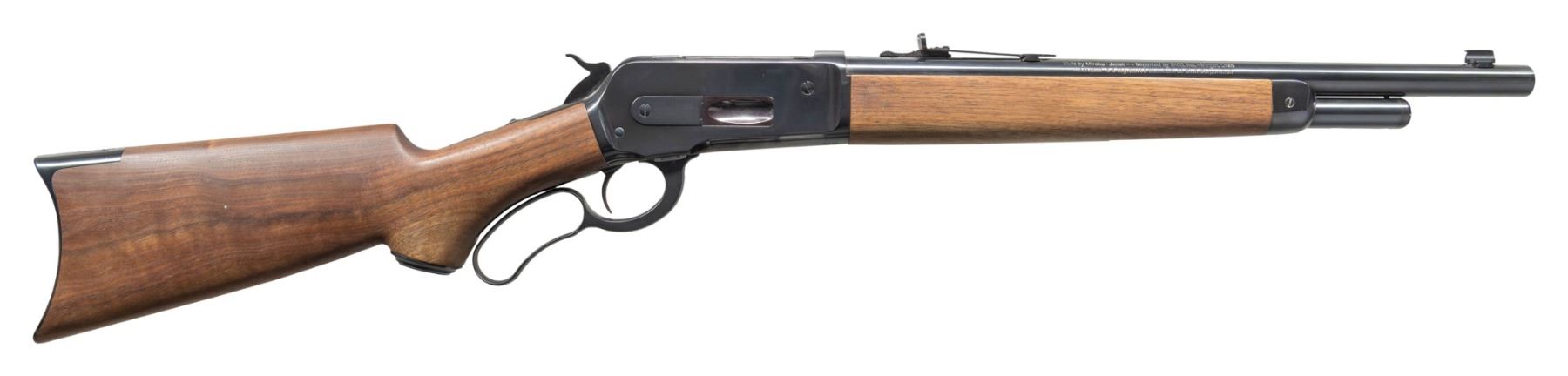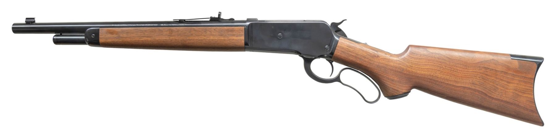 ACTION CARBINE. Cal. 45-70 Govt. S# 00044ZW86B . Bbl. 16". Gold bead front sight. Adjustable sporting style rear sight. One of only 201 Limited Series Trapper carbines made by Miroku for Winchester. Blued finish. Walnut pistol grip stock & plain forend. CONDITION: stock near excellent with a couple light handling marks. Metal retains 97% original blue with a couple spots of oxidation on buttplate. Action functions properly when hand cycled. Bright near excellent bore. (25-5318/MJC). MODERN. $1,000-1,500.