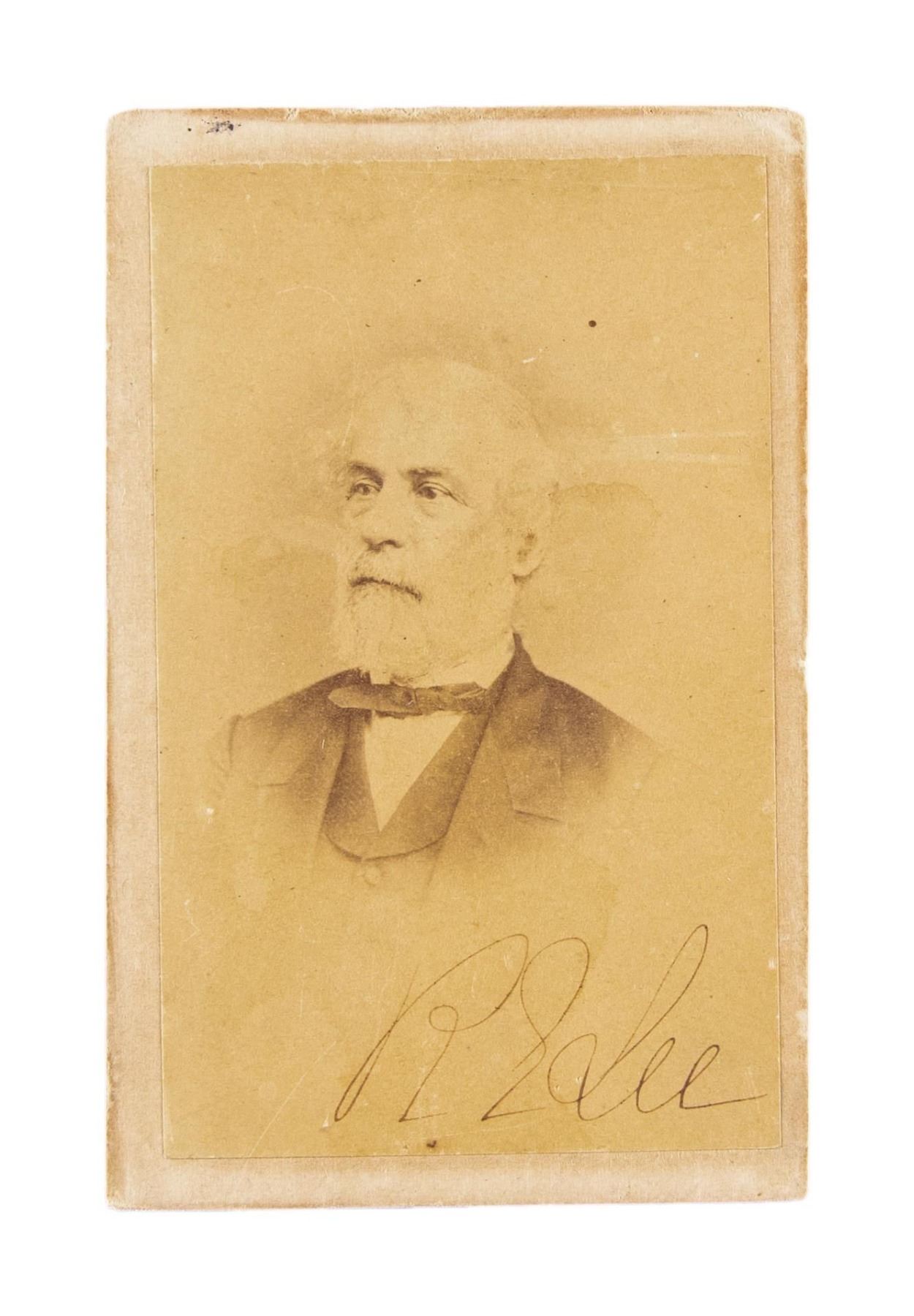 Profile view nicely signed "RE Lee", tax stamp on reverse, no photographer's backmark. CONDITION: very good overall, dark ink signature, toned. (02-25025-33/JS). NON-GUN. $3,000-5,000.