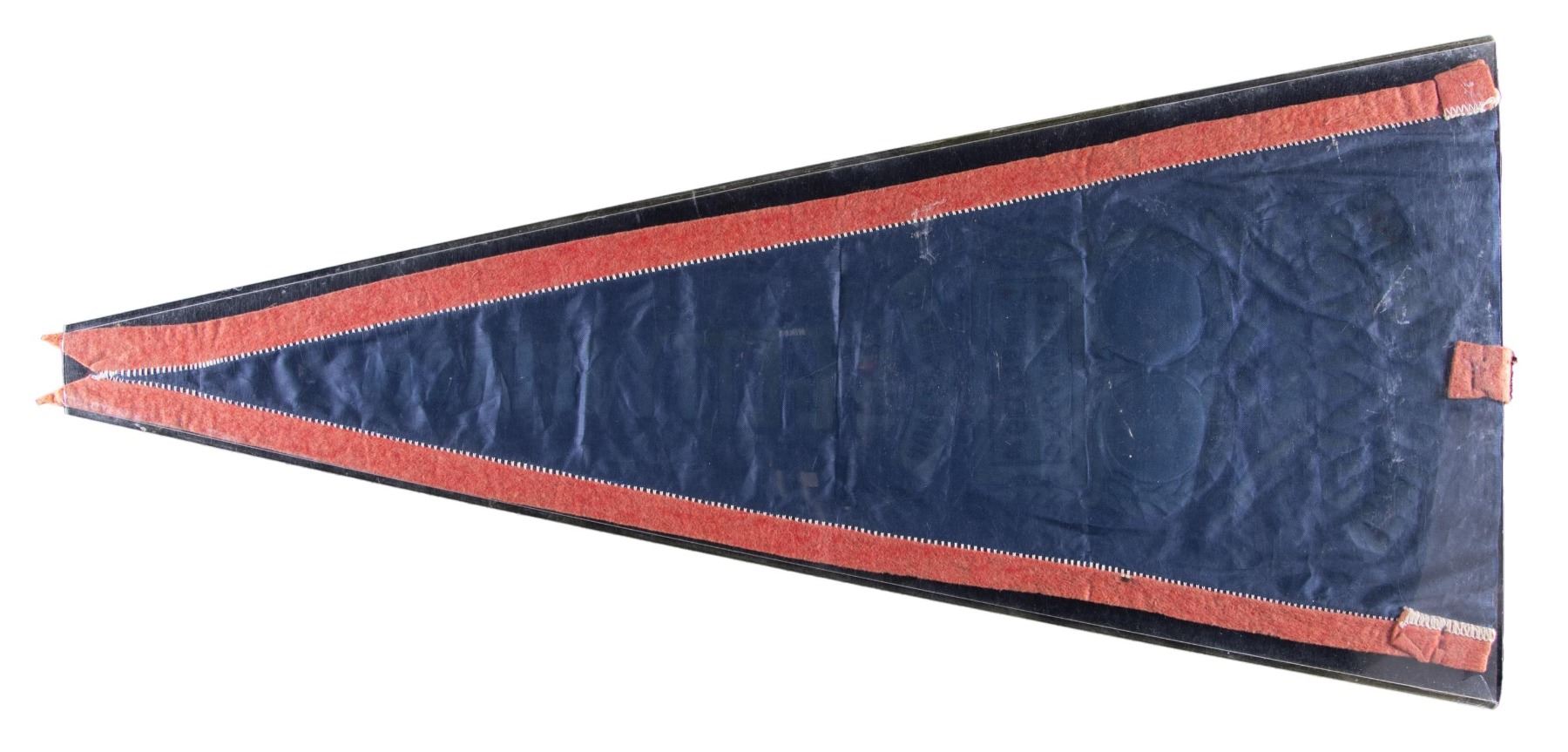 28.5" x 12" polished cotton, sewn felt edged, gold & red painted pennant "SEMI CENTENNIAL CELEBRATION", applied portraits of Lee & Grant, June 29-July 6, 1913. CONDITION: very good overall. (02-25025-77/JS). NON-GUN. $200-400.