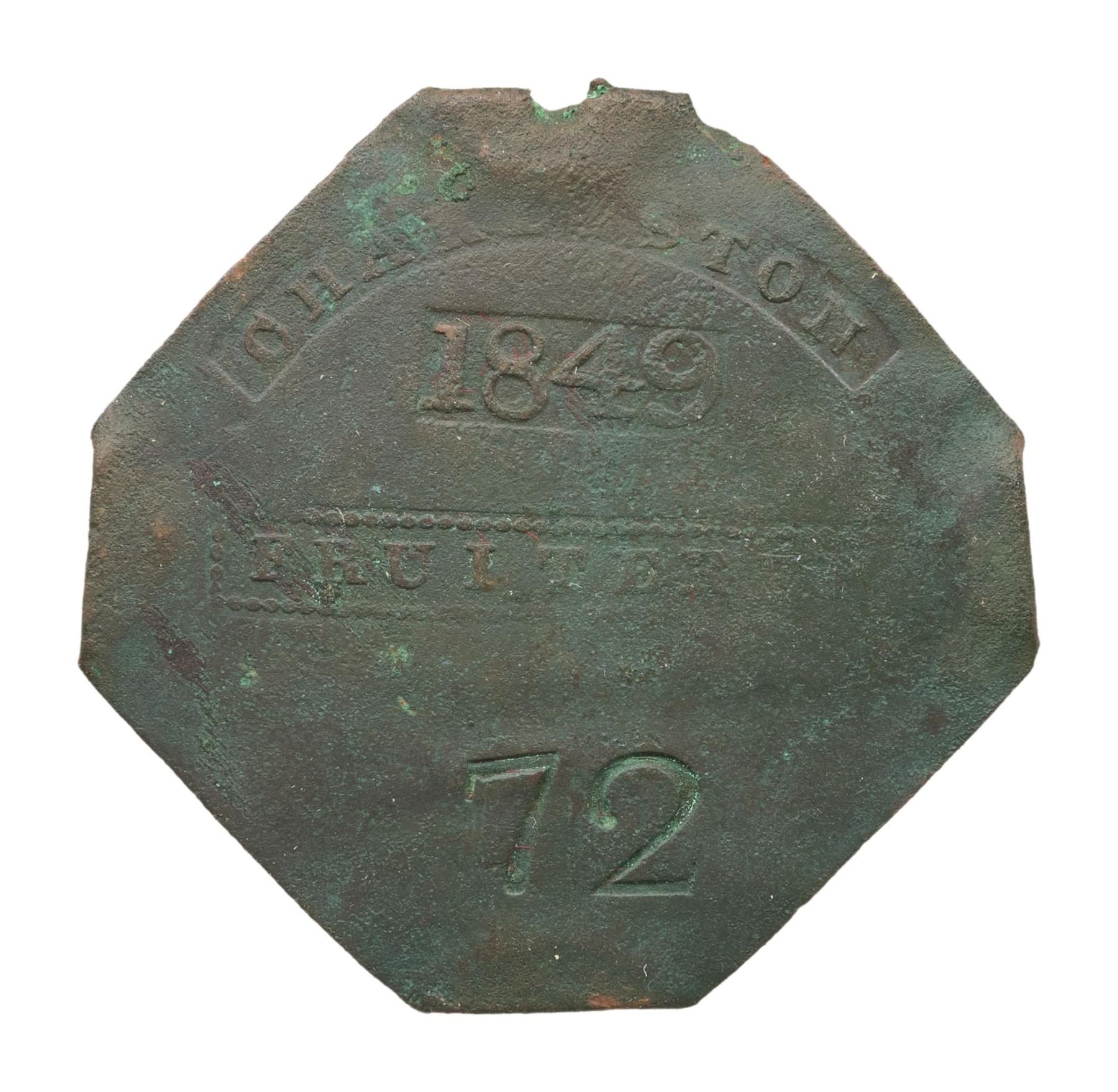 Lot 4256 RARE SLAVE HIRE TAG, FRUITERER, 1849.