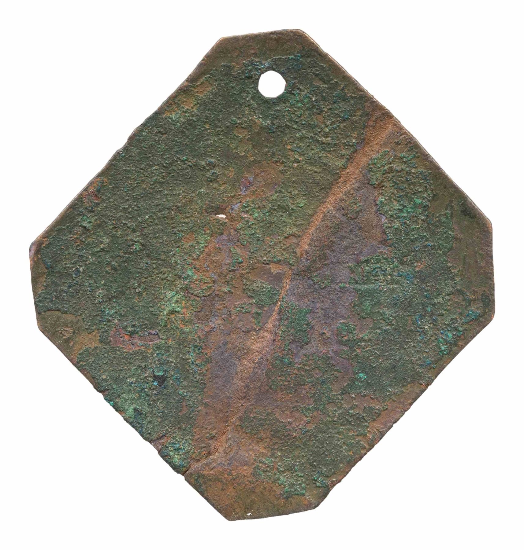 51 x 49mm, large diamond shape with clipped corners, number 552. CONDITION: very good, flattened crease, excavated patina. (02-25497-30/JS). NON-GUN. $2,000-4,000.