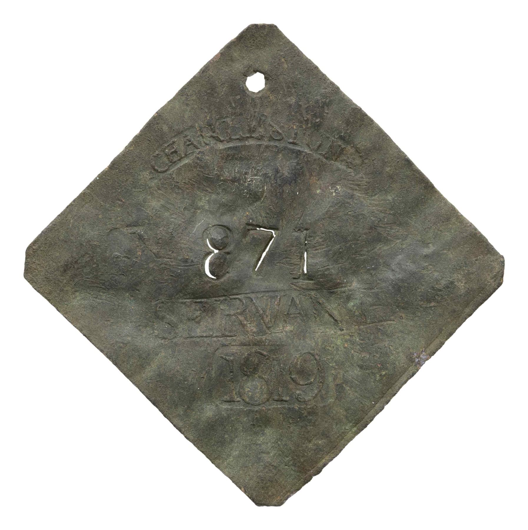 Lot 4268 SLAVE HIRE TAG, CHARLESTON, SERVANT, 1817.