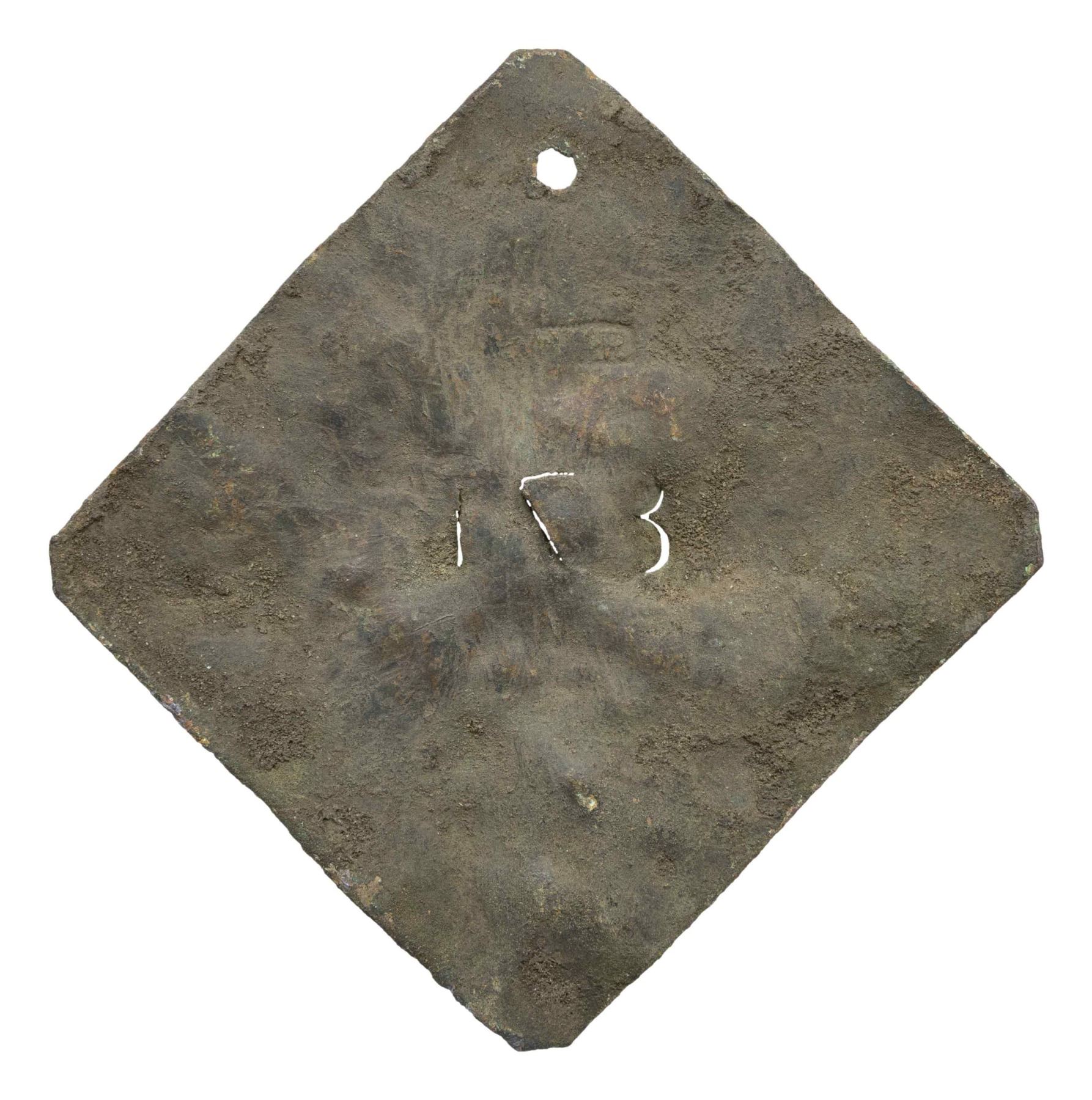 55.5 x 57.5mm, large diamond shape, "LAFAR" maker mark on verso, number 871. CONDITION: restored, repatinaed. (02-25497-32/JS). NON-GUN. $2,000-4,000.