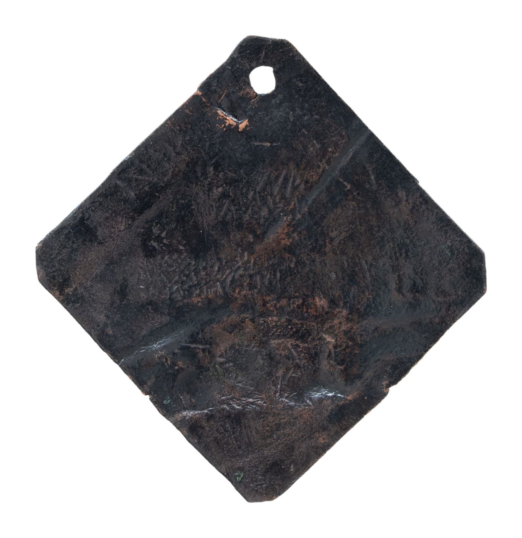 37mm, diamond shape with clipped corners, number 1525. CONDITION: crease/crack flattened and repatinaed, good detail. (02-25497-14/JS). NON-GUN. $2,000-4,000.