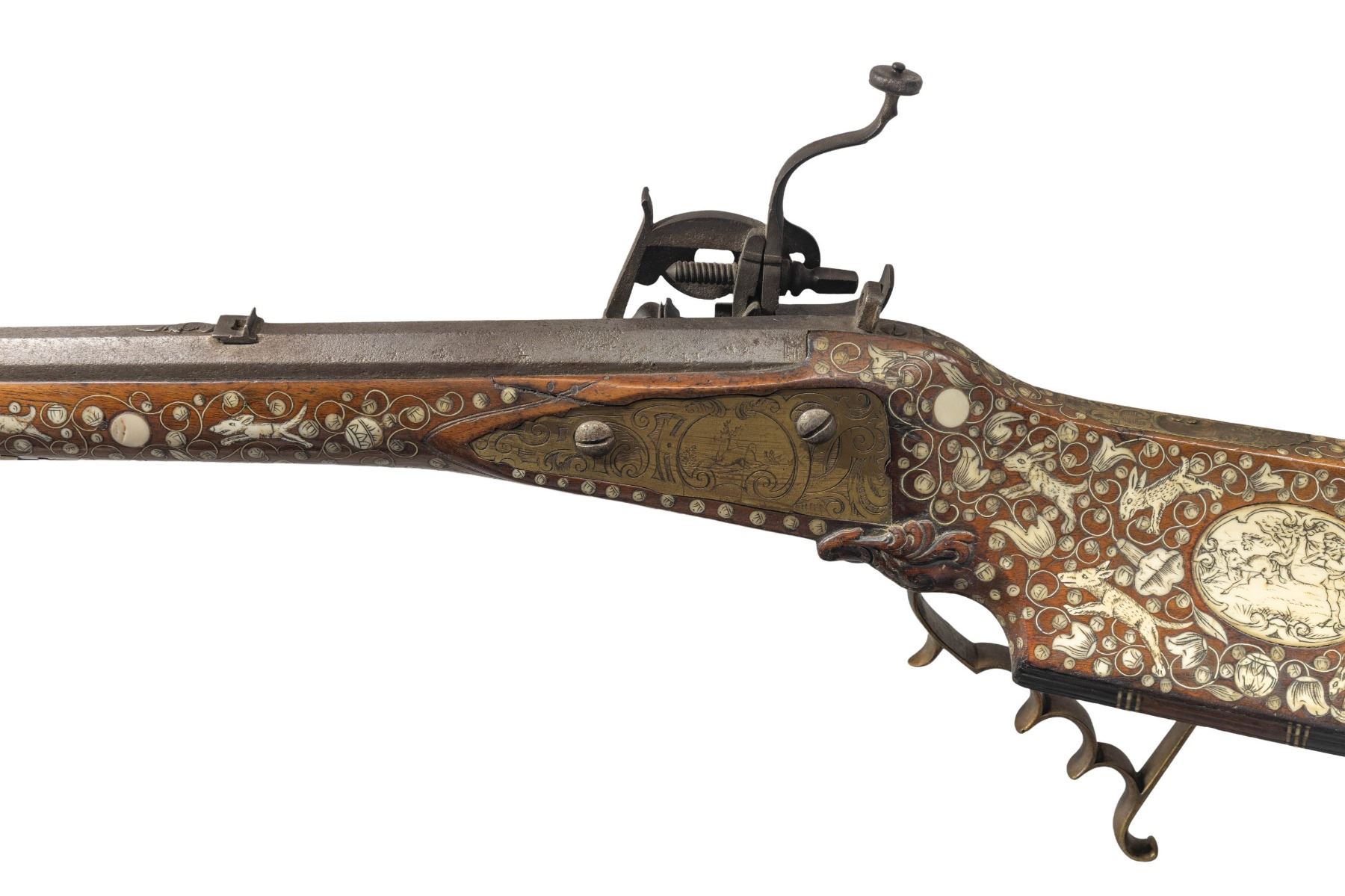 Lot 4311 RICHLY DECORATED GERMANIC WHEELLOCK RIFLE.