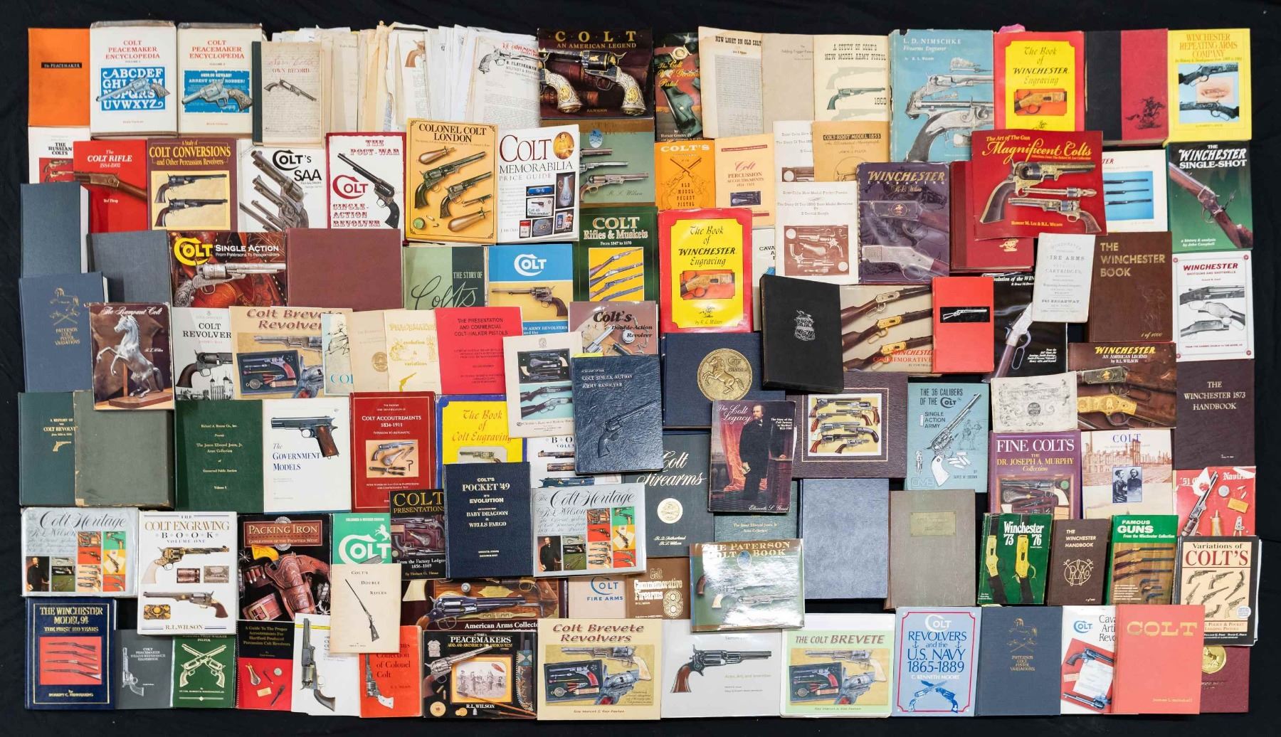 BOOKS. Over 100 of the best illustrated classics texts, also included is about 3" file of correspondence concerning Colts and about 50 Colt factory letters. (02-24521-7/JS). NON-GUN. $3,000-6,000.