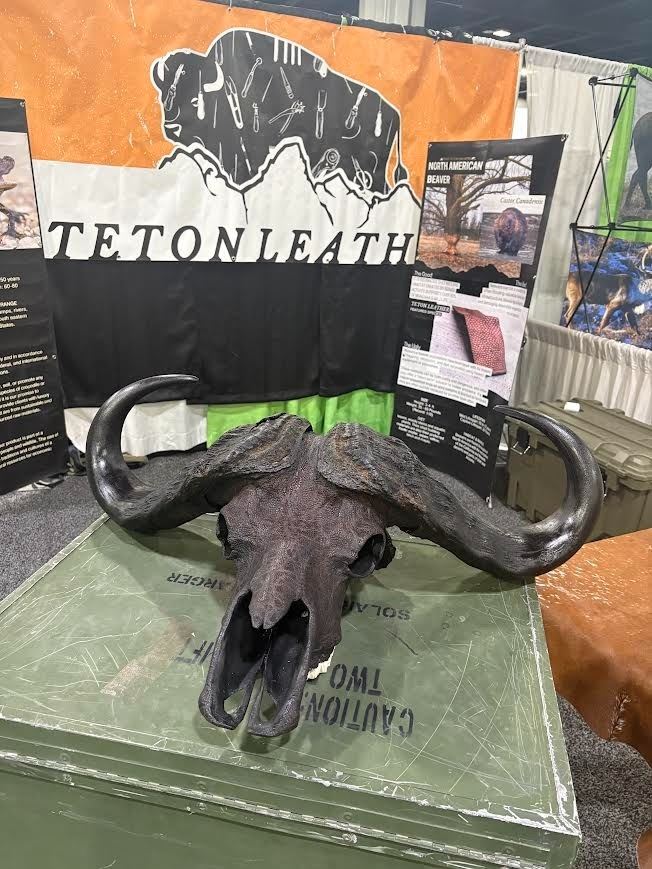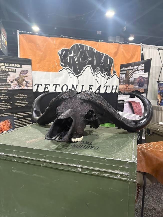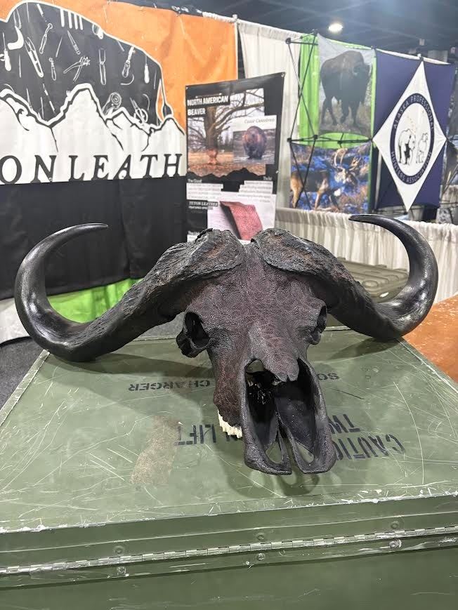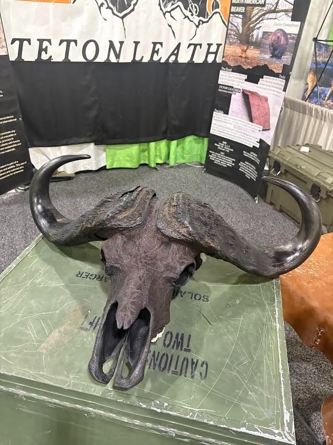 Lot 497 TETON LEATHER: Cape Buffalo Skull Wrapped in Genuine Leather