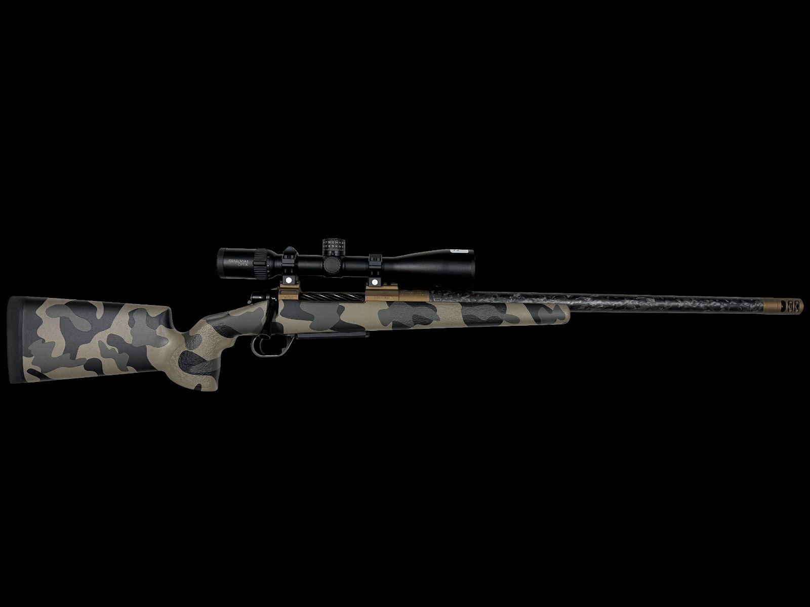 Defiance anti-x receiver, McMillan carbon fiber stock, Carbon fiber wrapped barrel, Trigger Tech trigger, Swarovski Z5 3.5-18x50 scope, Hawkins rings