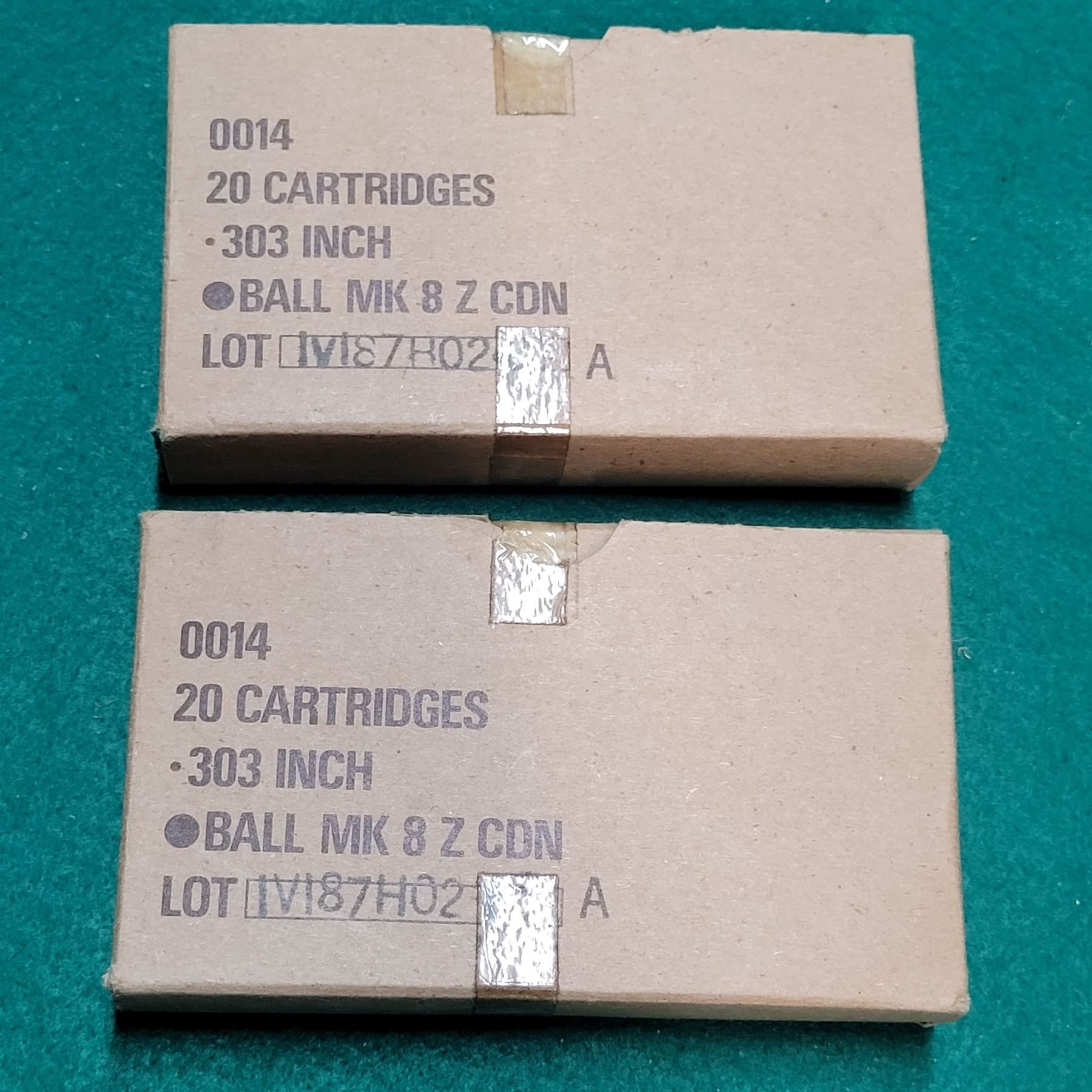 Lot 465 .303 British Ball MK 8 Z CDN Ammo 40 Cartridges
