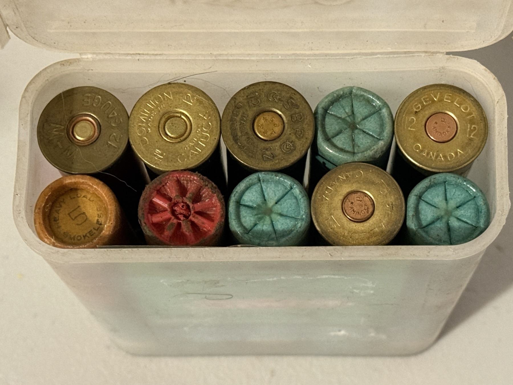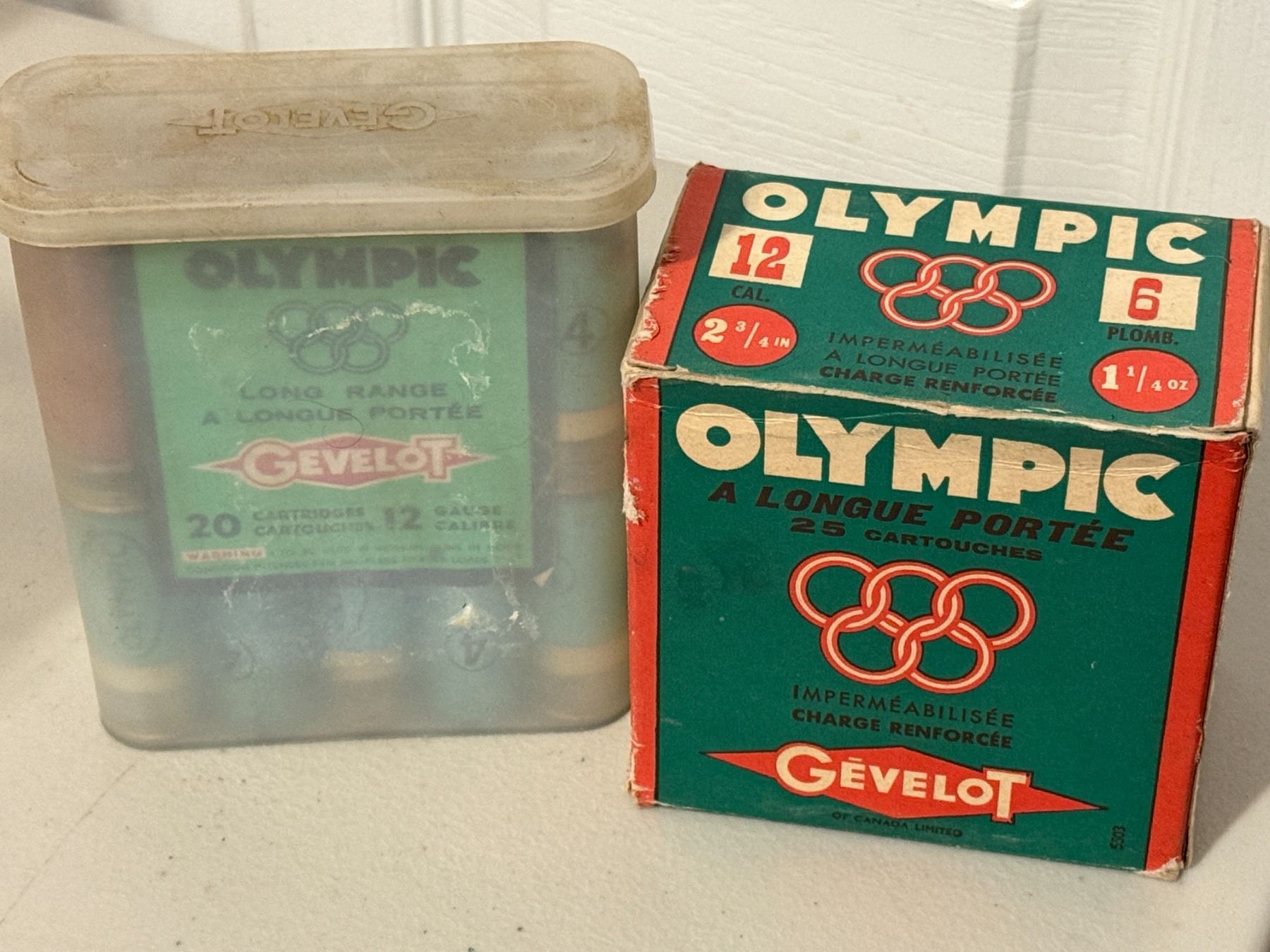 12 Gauge Vintage Mixed Shotshell Collector Lot (Olympic / Gevelot / Western / Remington). Various sizes in collector box and plastic case.