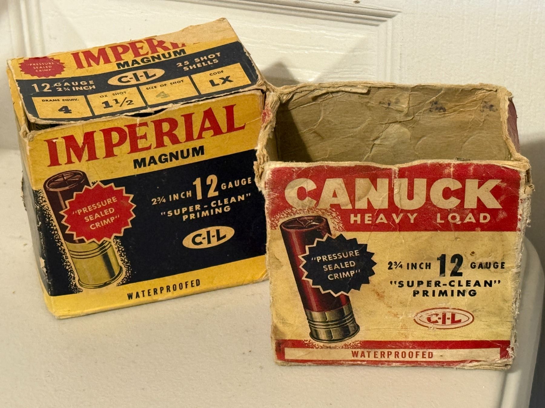 12 GA 2¾" – Vintage C-I-L Imperial Magnum & Canuck Heavy Load (Collector Lot). Boxes are worn/have damage.