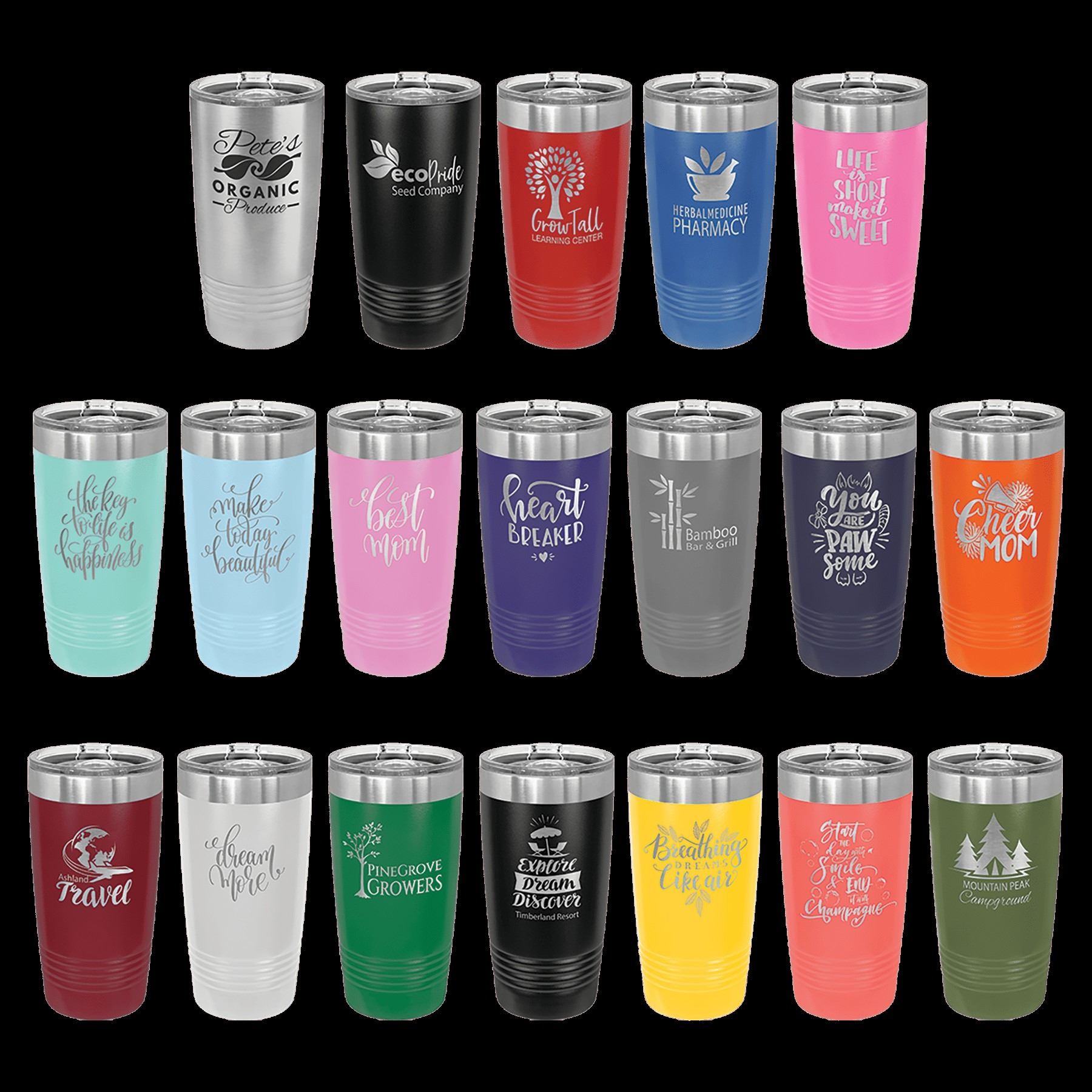 Get five custom laser engraved tumblers with your logo for merchandise or to treat your team! Choose one color provided by MNR Custom Engraving. Shipping not included.