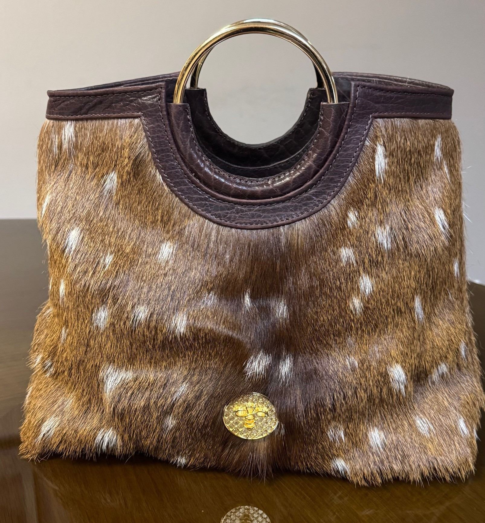 Fedha Nyuki's exquisite round handle axis handbag with leather backing serves as a beautiful reminder of our role in conservation and our connection to the great outdoors. Fedha Nyuki's creations embody the spirit of adventure, making this bag a unique and meaningful accessory for any huntress or nature enthusiast. DALLAS SAFARI CLUB THANKS FEDHA NYUKI / ODIN OUTFITTING CO. FOR THIS 100% DONATION. Leslie Benavides, 361-207-4806, info@fedhanyuki.com, FedhaNyuki.Com, BOOTH #2213.