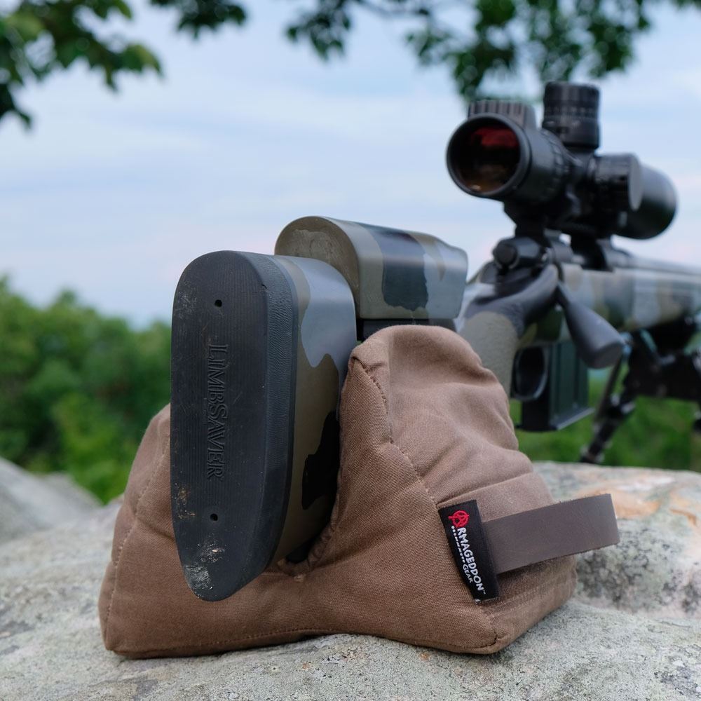 Shmedium Shooting Bag, Bullet Bag and AG logo hat. Shooting bag features heavy sand fill, brown wax canvas and is great for zeroing in your rifle or long-range shooting. Bullet Bag with nylon Cordura holds four 50-round rifle cartridge boxes inside the large, double-dippered center compartment. Bags are 100% made in America and come with a AG logo hat. DALLAS SAFARI CLUB THANKS ARMAGEDDON GEAR FOR THIS 100% DONATION. Sunni McAllister, 229-373-2036, sunni@armageddongear.com, ArmageddonGear.Com, BOOTH #1056.