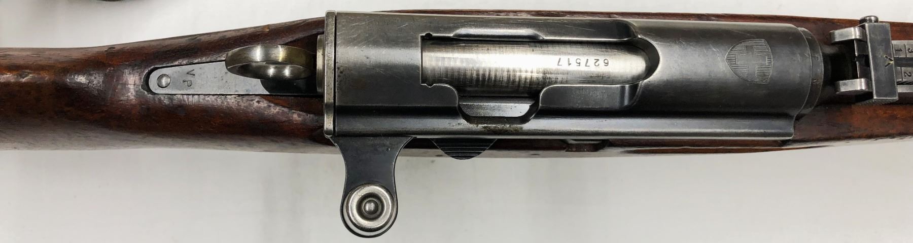 1970s. It has a 6-round removable magazine, and is chambered for the 7.5x55mm Swiss